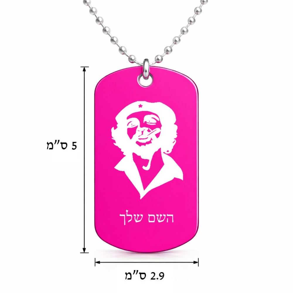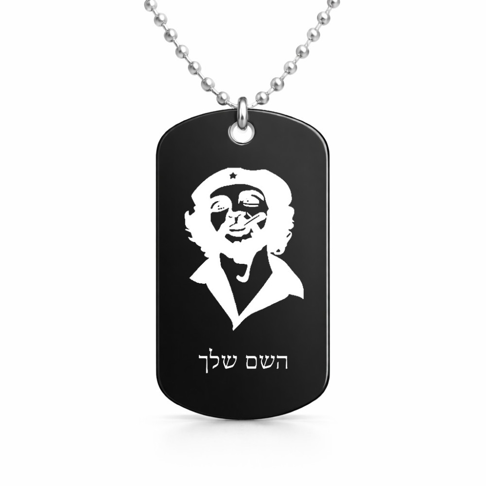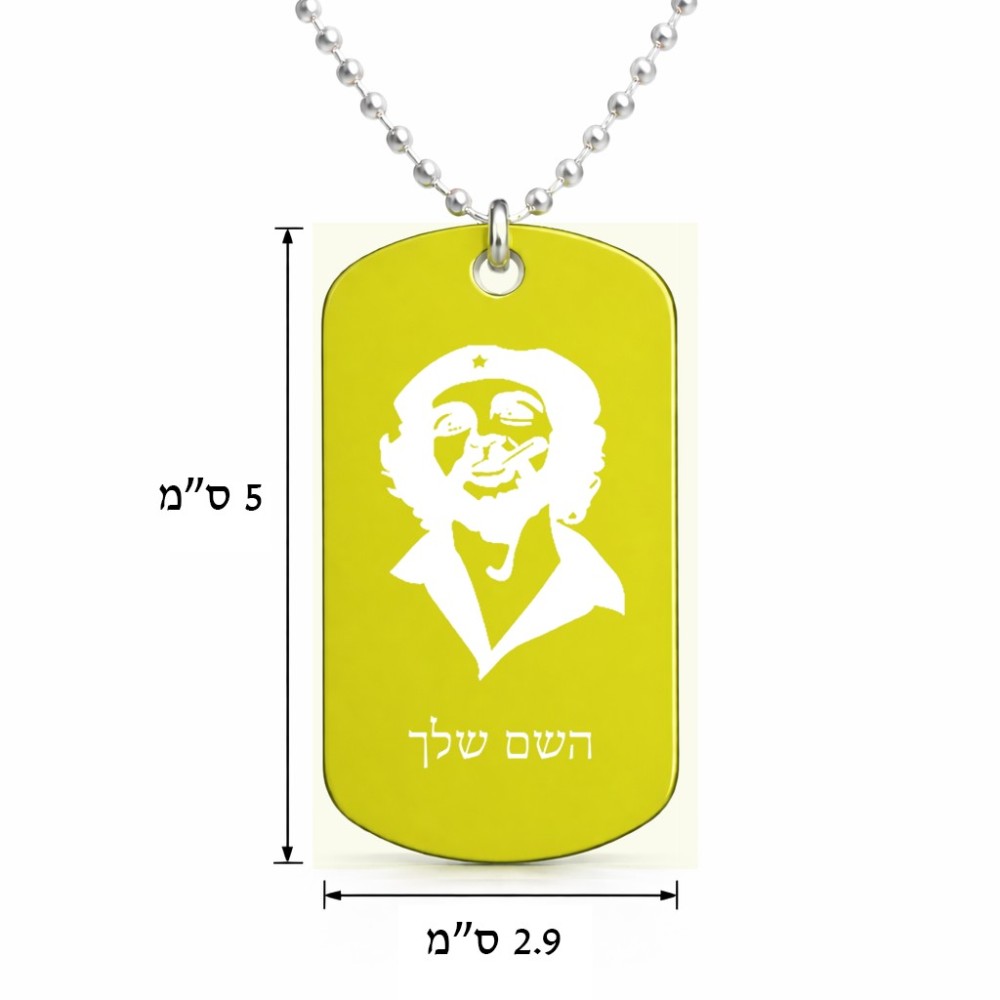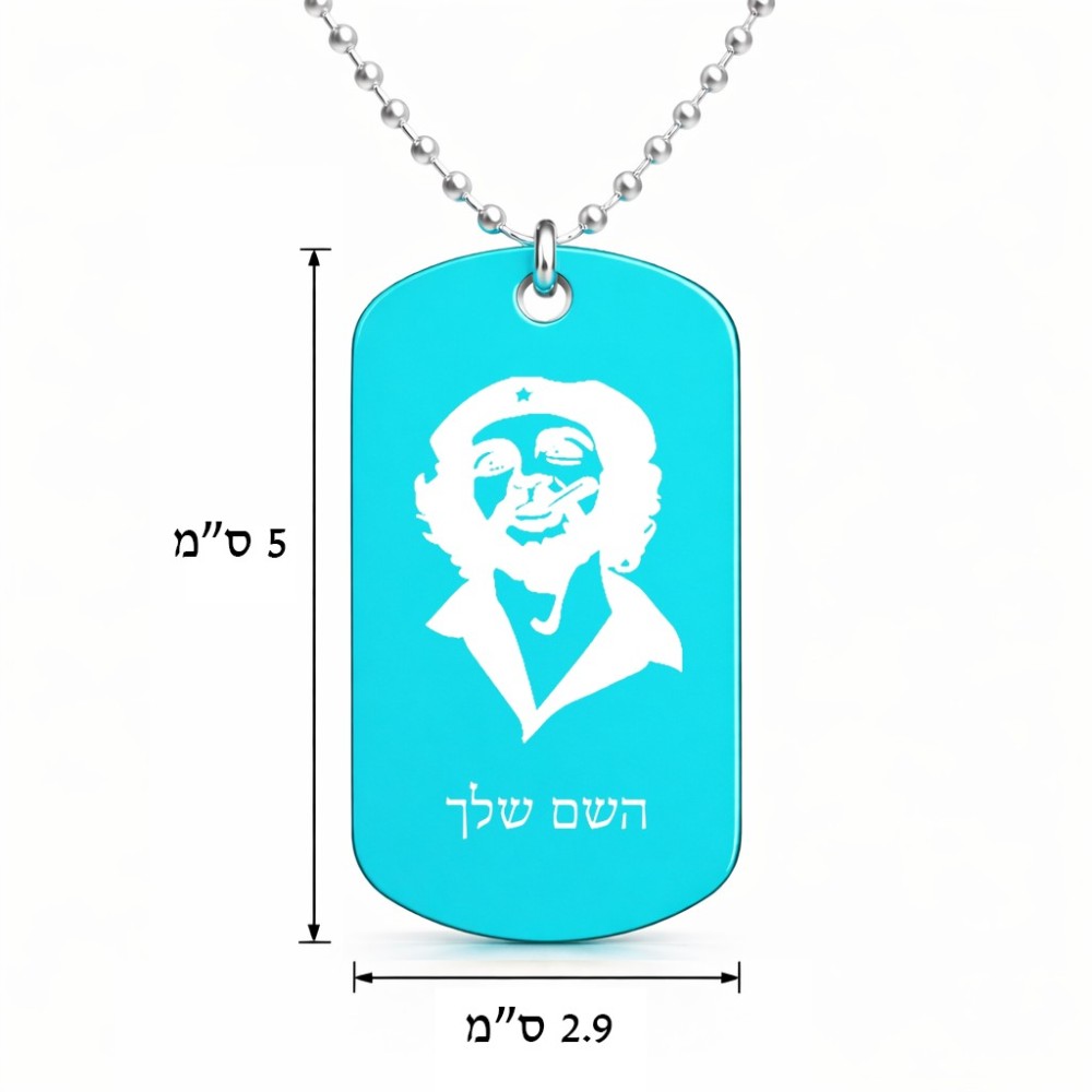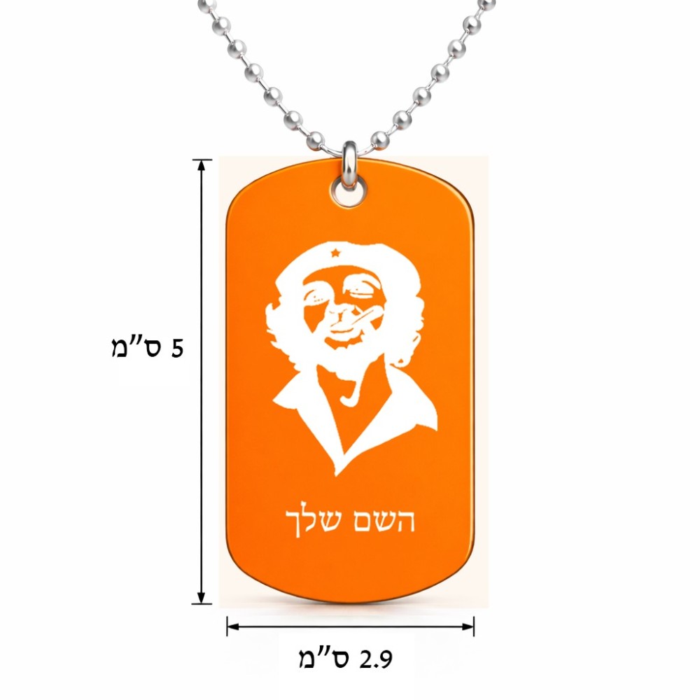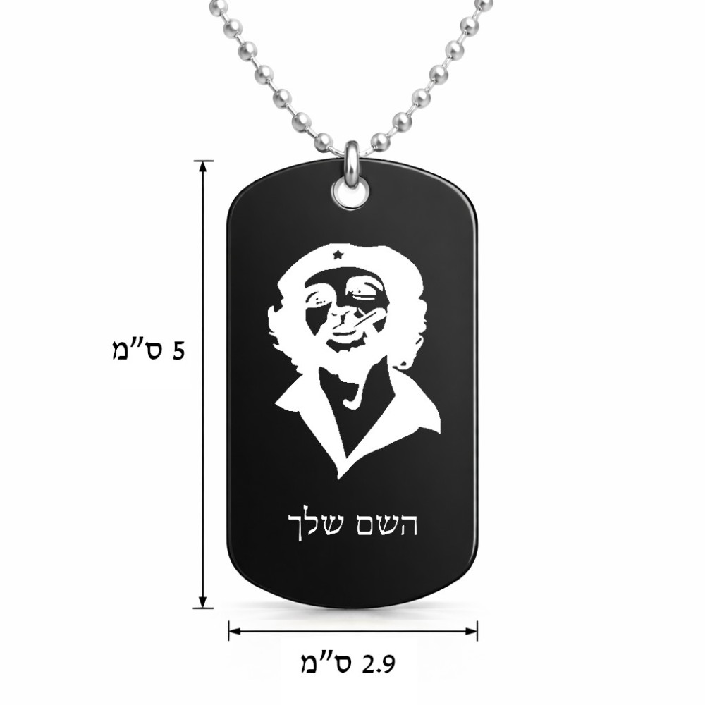 שרשרת דיסקיט מאלומיניום בעיצוב אישי עם השם שלך בעיצוב צ'ה גווארה גודל הדיסקיט 2.9 × 5 ס"מ. את השם המבוקש ניתן לציין בהזמנה, אם לא צויין אנחנו ניצור קשר לבירור.