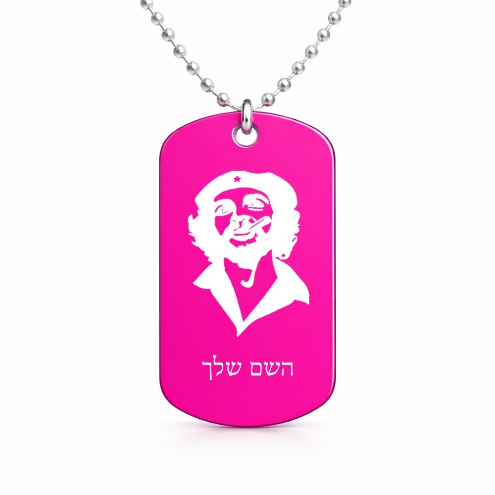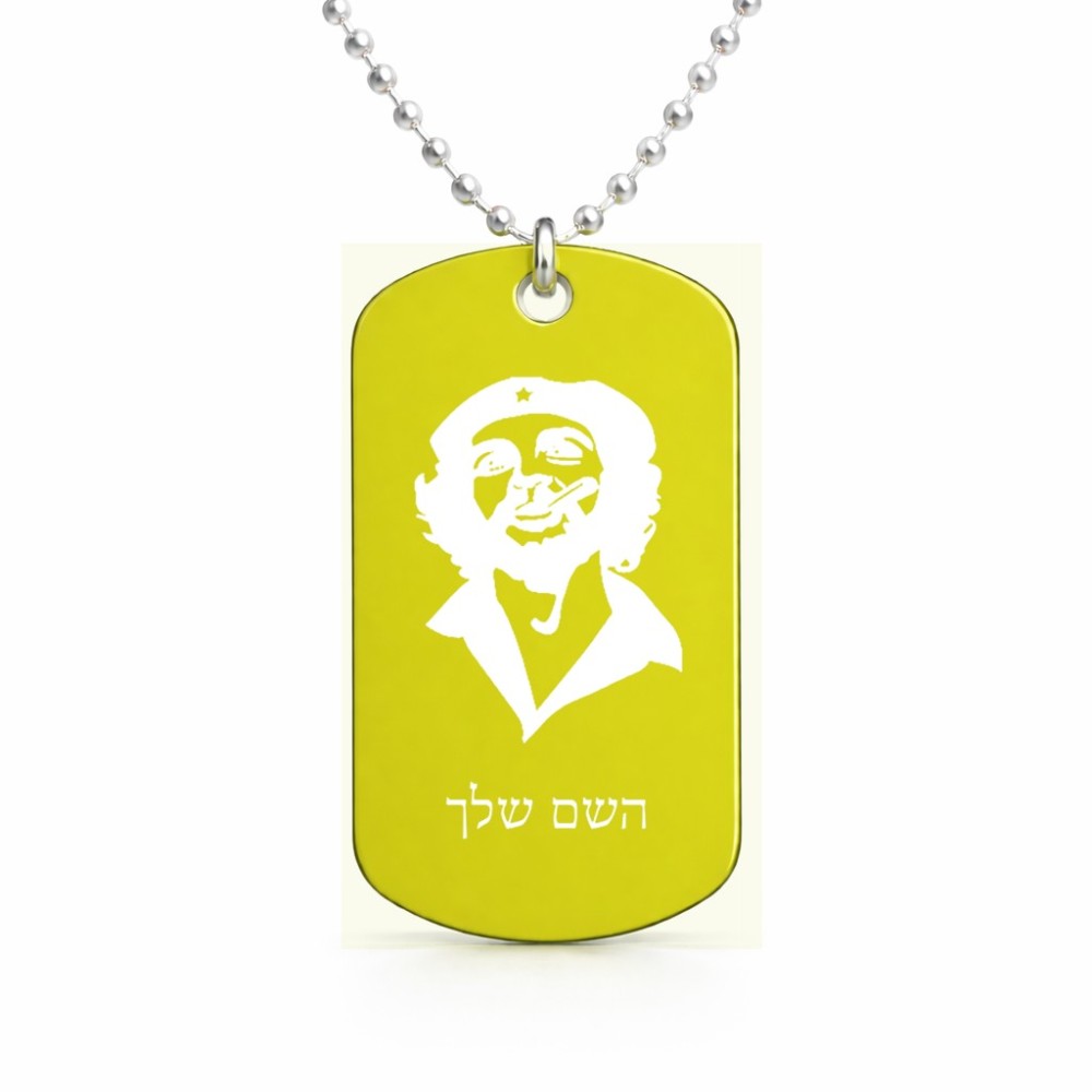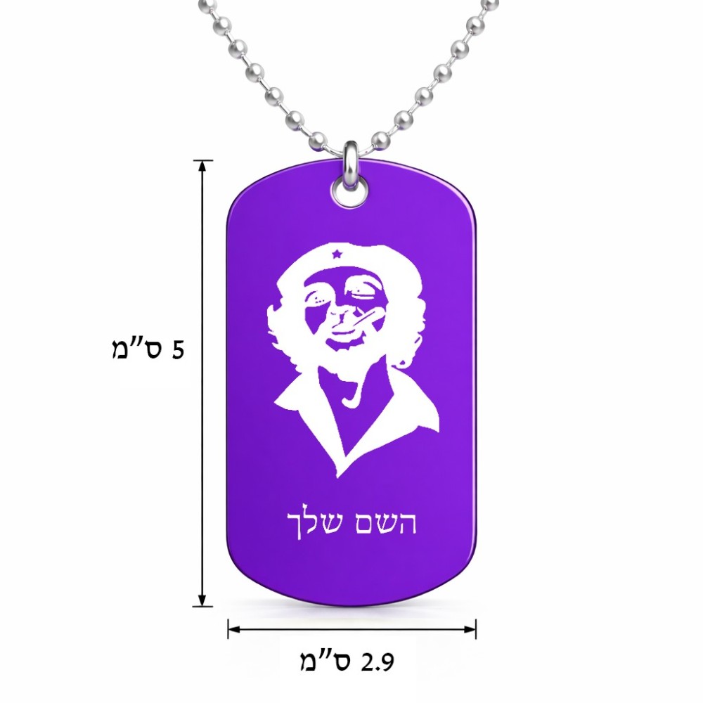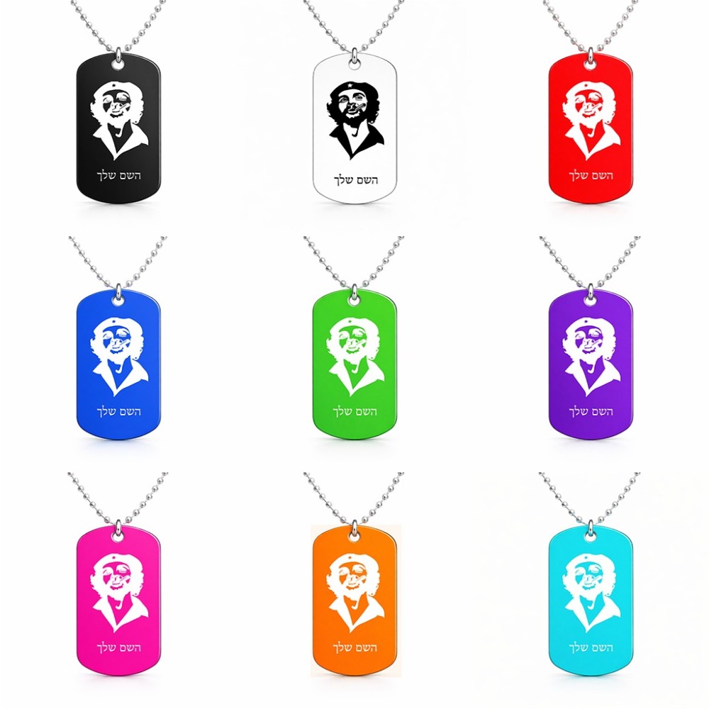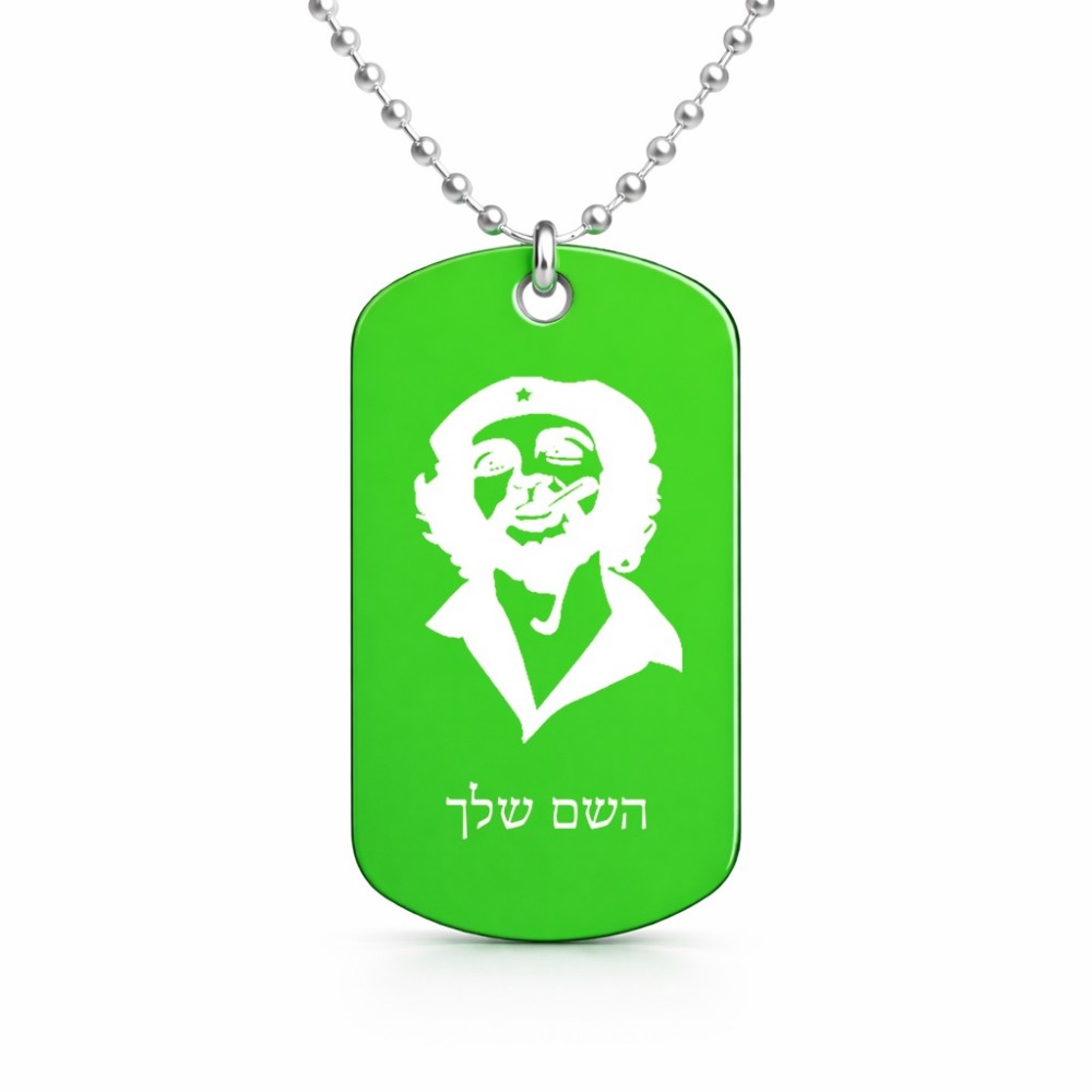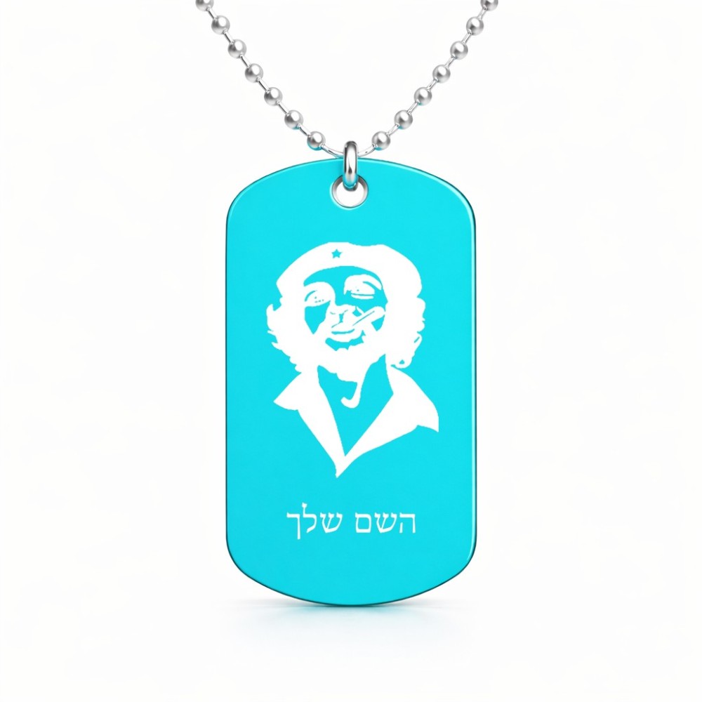 שרשרת דיסקיט מאלומיניום בעיצוב אישי עם השם שלך בעיצוב צ'ה גווארה גודל הדיסקיט 2.9 × 5 ס"מ. את השם המבוקש ניתן לציין בהזמנה, אם לא צויין אנחנו ניצור קשר לבירור.