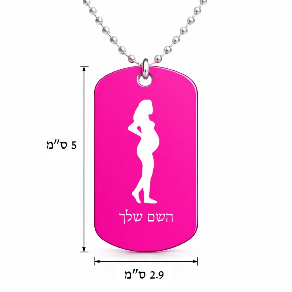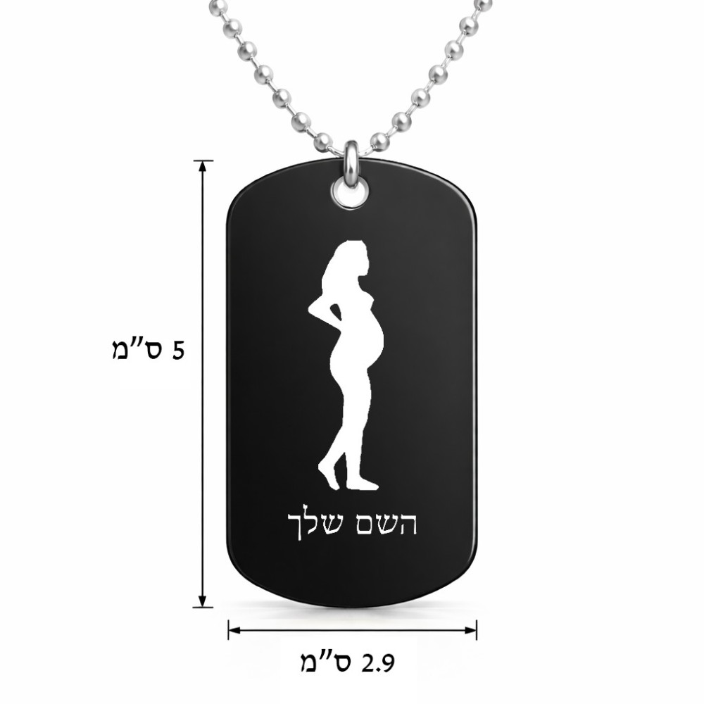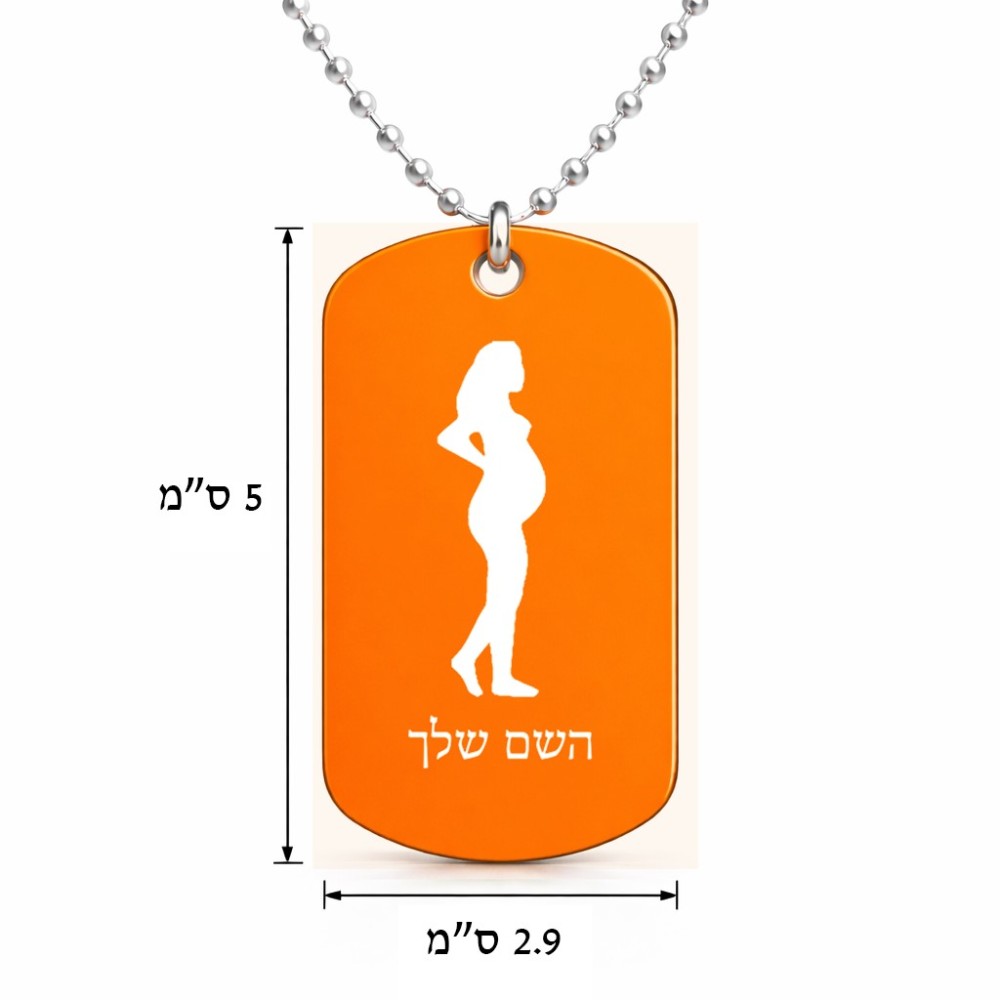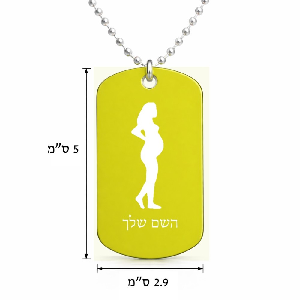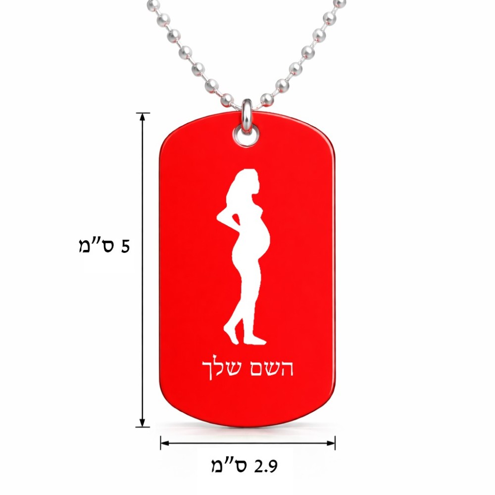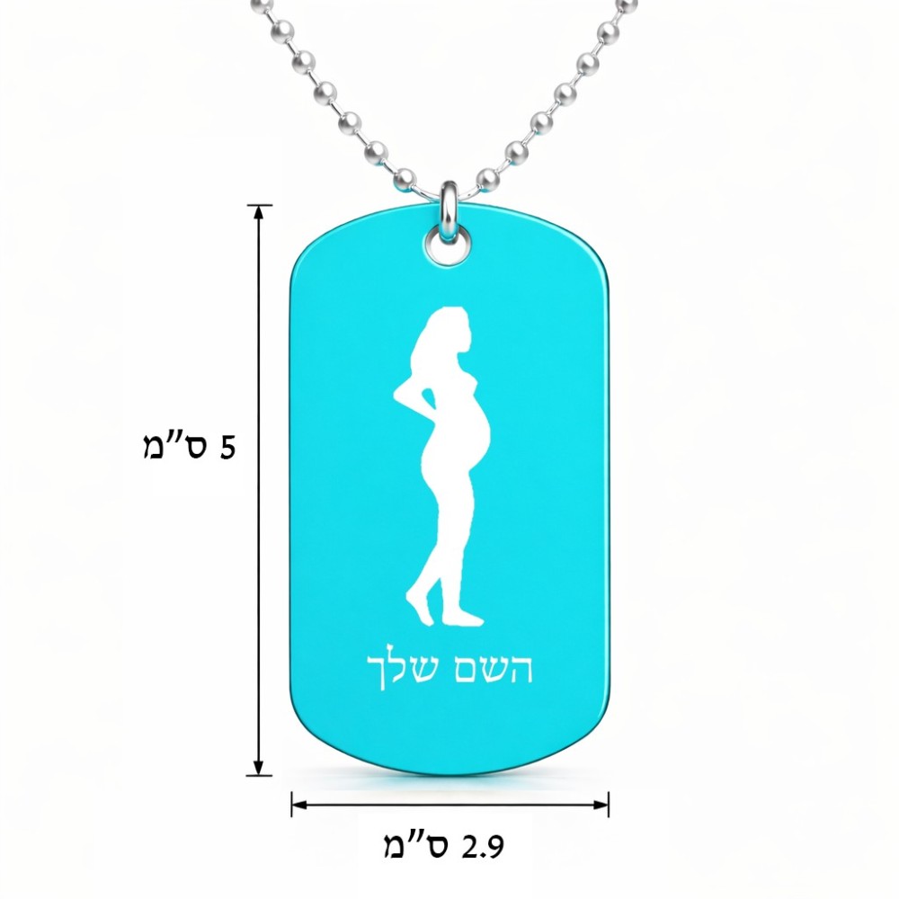 שרשרת דיסקיט מאלומיניום בעיצוב אישי עם השם שלך בעיצוב אישה בהריון גודל הדיסקיט 2.9 × 5 ס"מ. את השם המבוקש ניתן לציין בהזמנה, אם לא צויין אנחנו ניצור קשר לבירור.