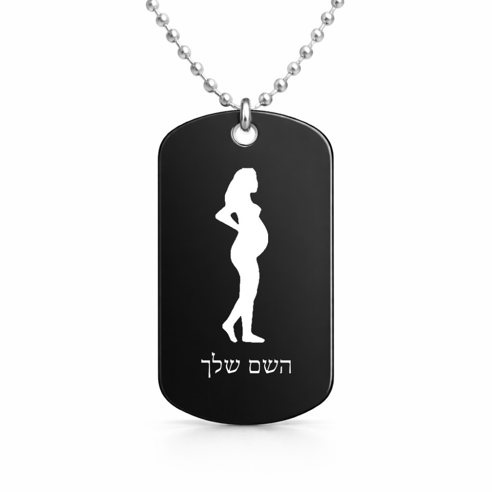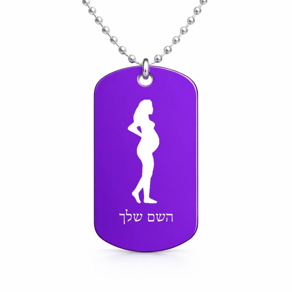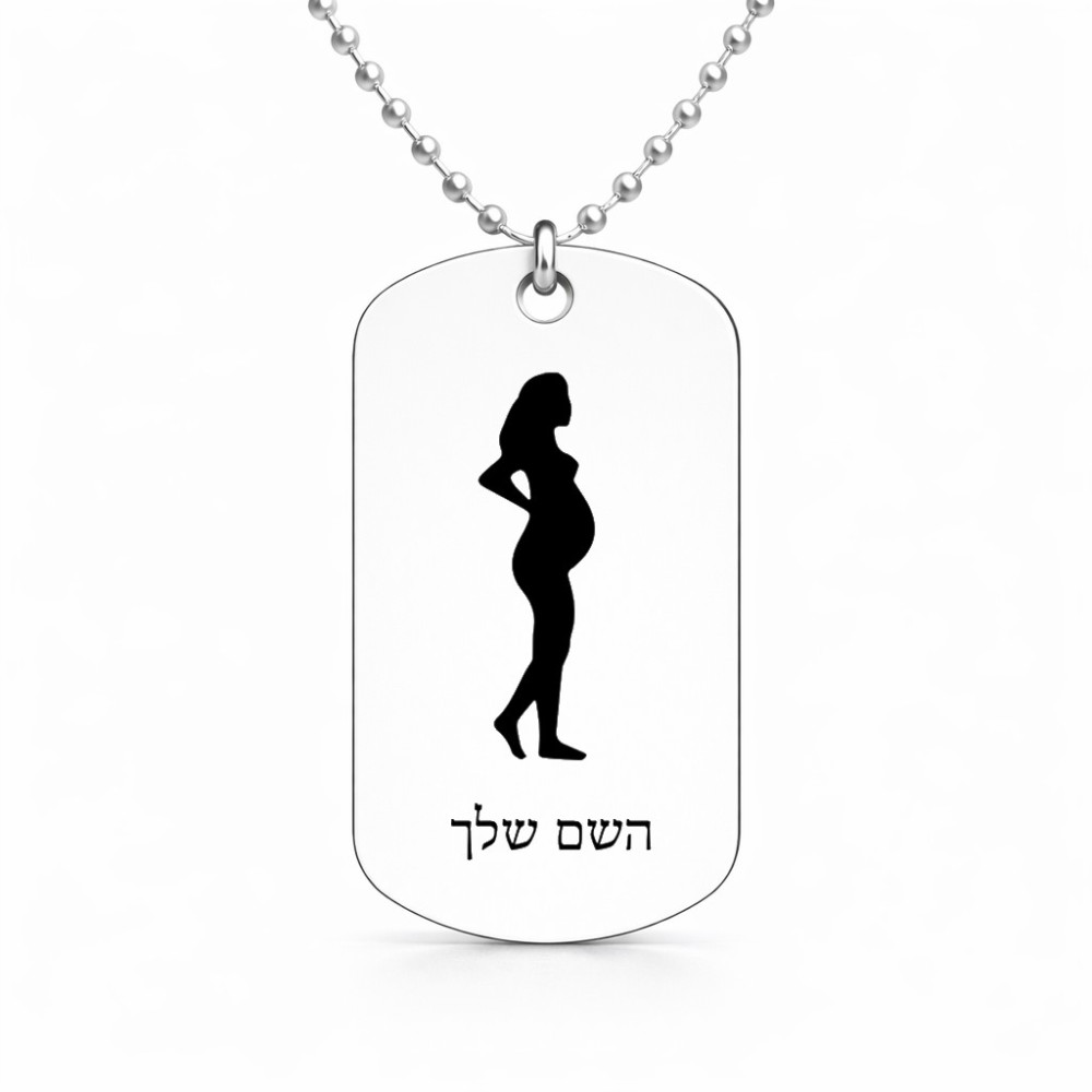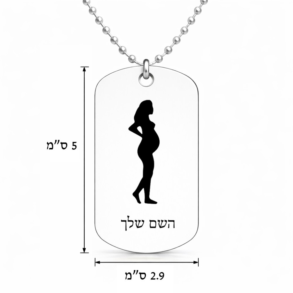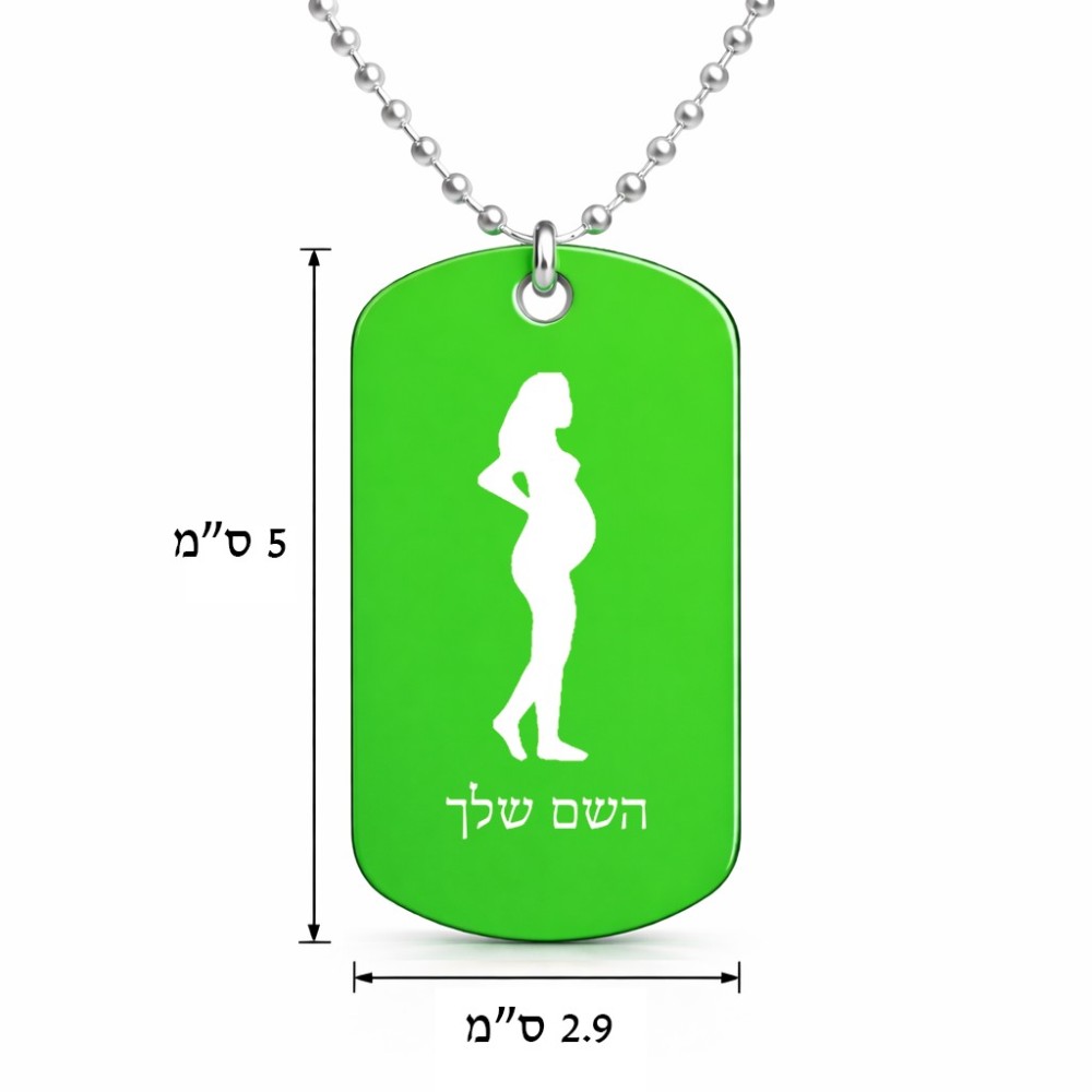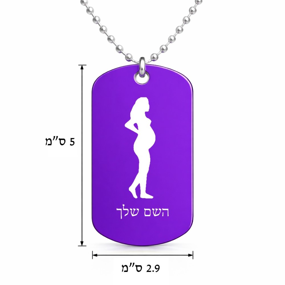 שרשרת דיסקיט מאלומיניום בעיצוב אישי עם השם שלך בעיצוב אישה בהריון גודל הדיסקיט 2.9 × 5 ס"מ. את השם המבוקש ניתן לציין בהזמנה, אם לא צויין אנחנו ניצור קשר לבירור.