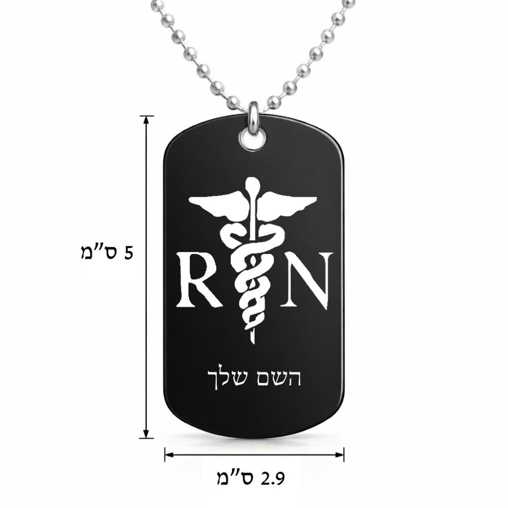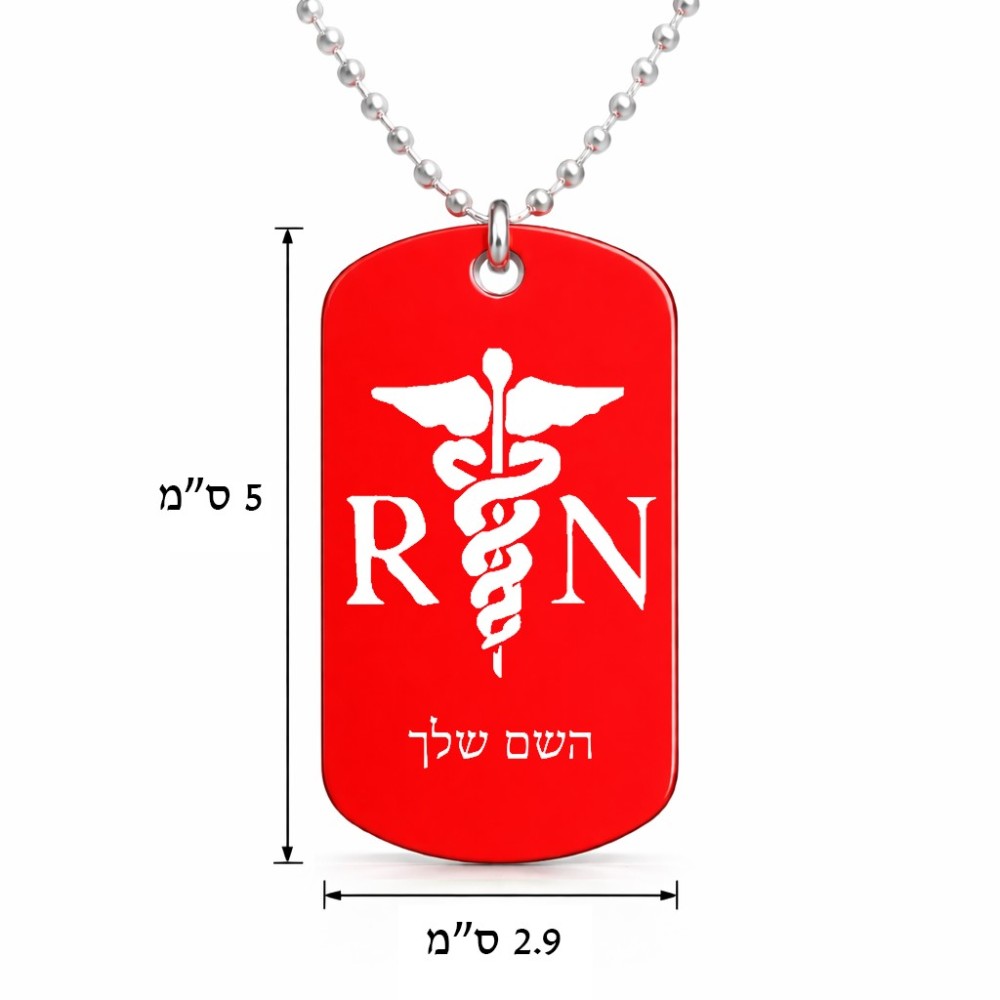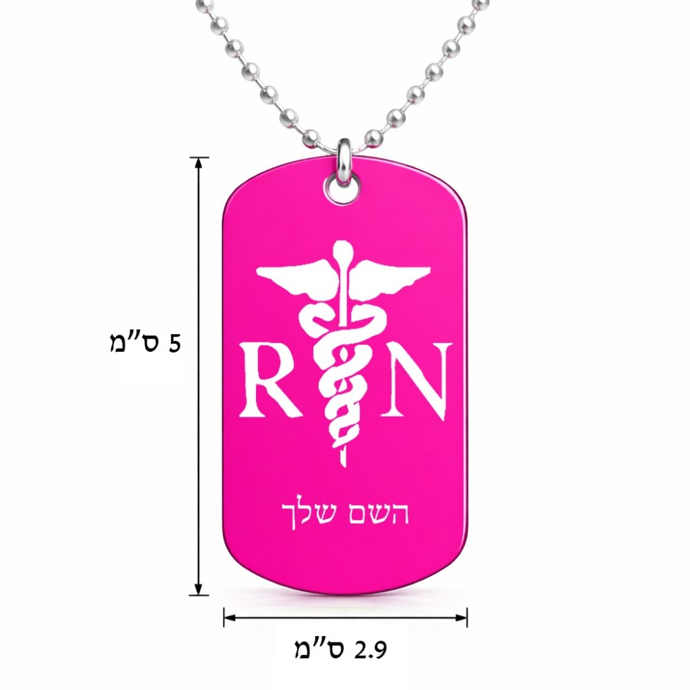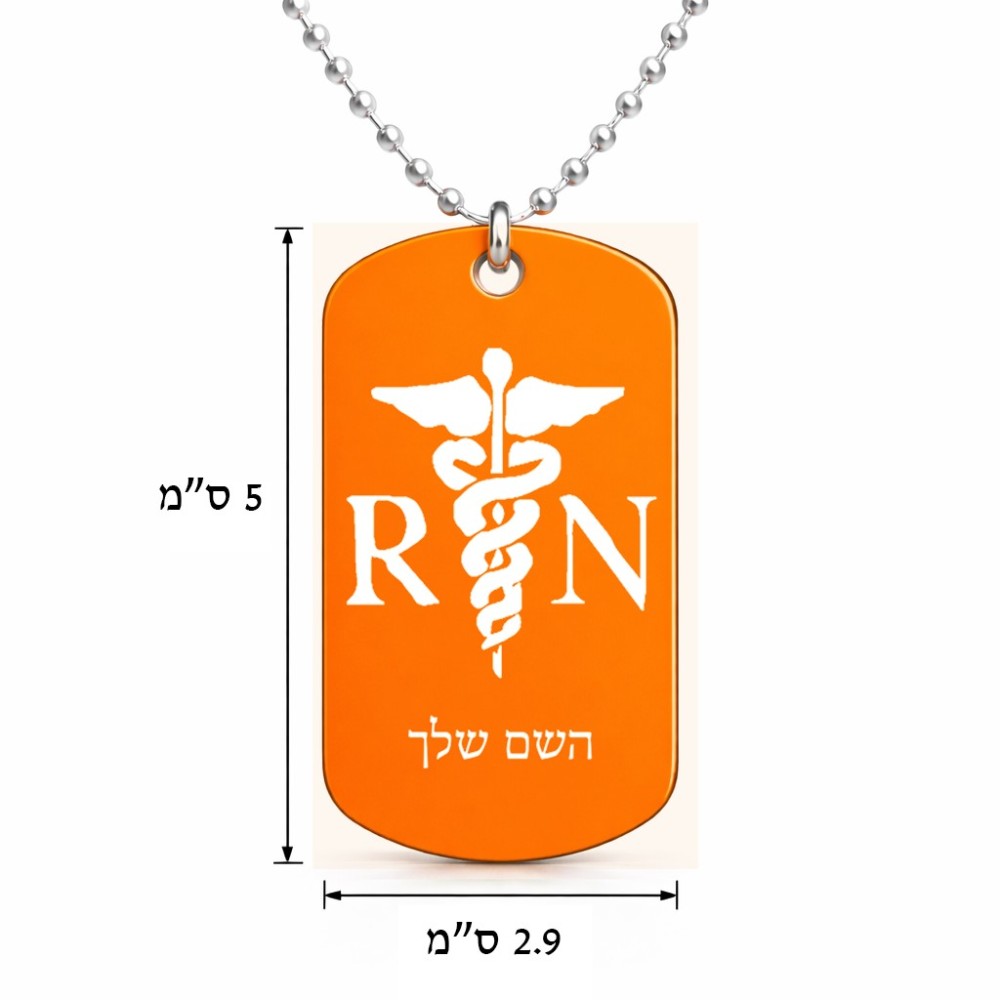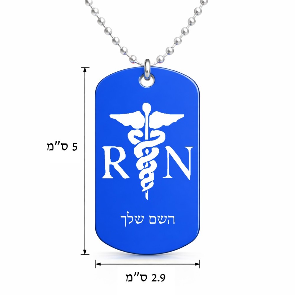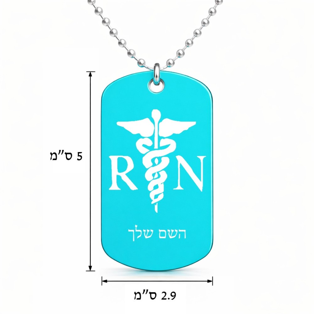 שרשרת דיסקיט מאלומיניום בעיצוב אישי עם השם שלך בעיצוב אחות מוסמכת גודל הדיסקיט 2.9 × 5 ס"מ. את השם המבוקש ניתן לציין בהזמנה, אם לא צויין אנחנו ניצור קשר לבירור.
