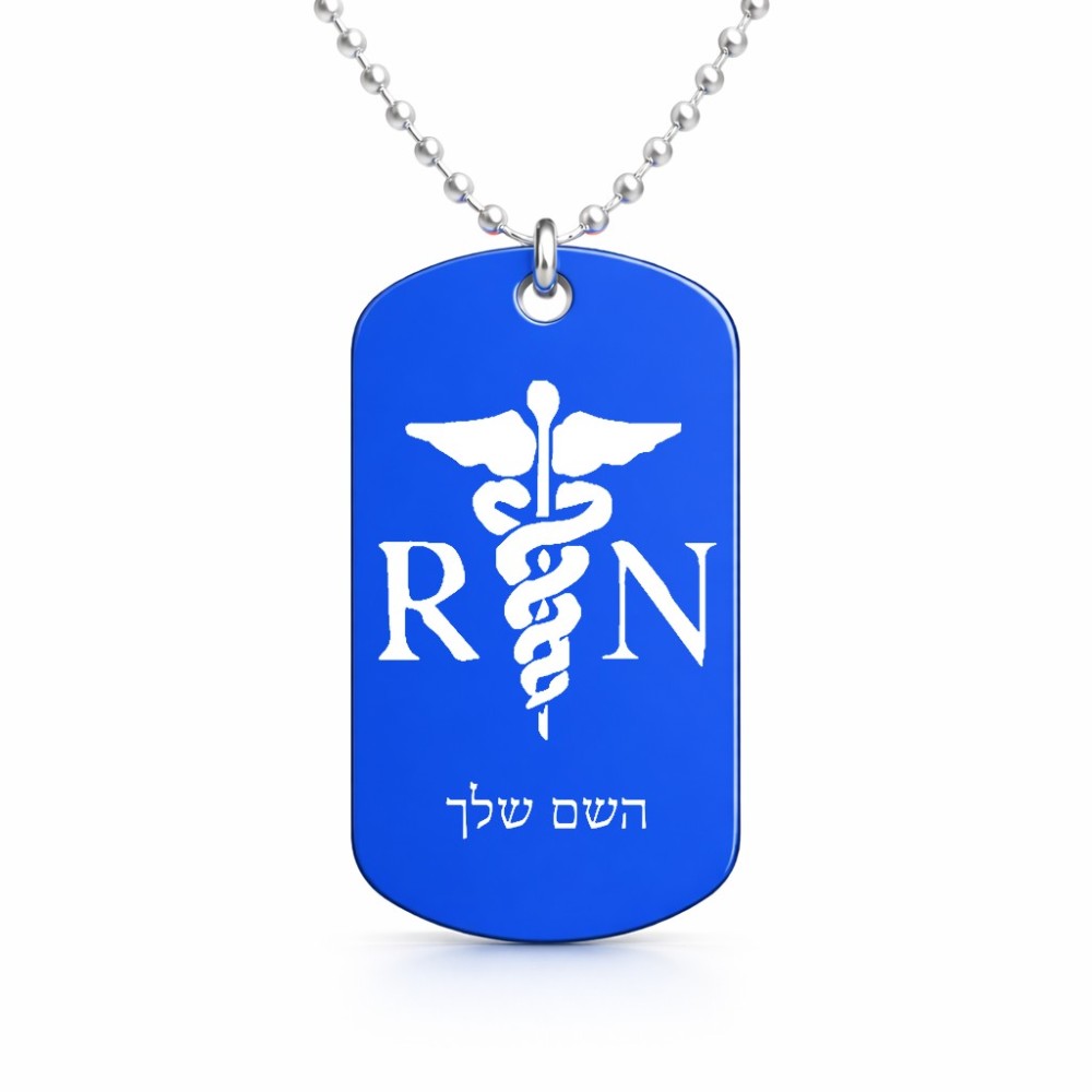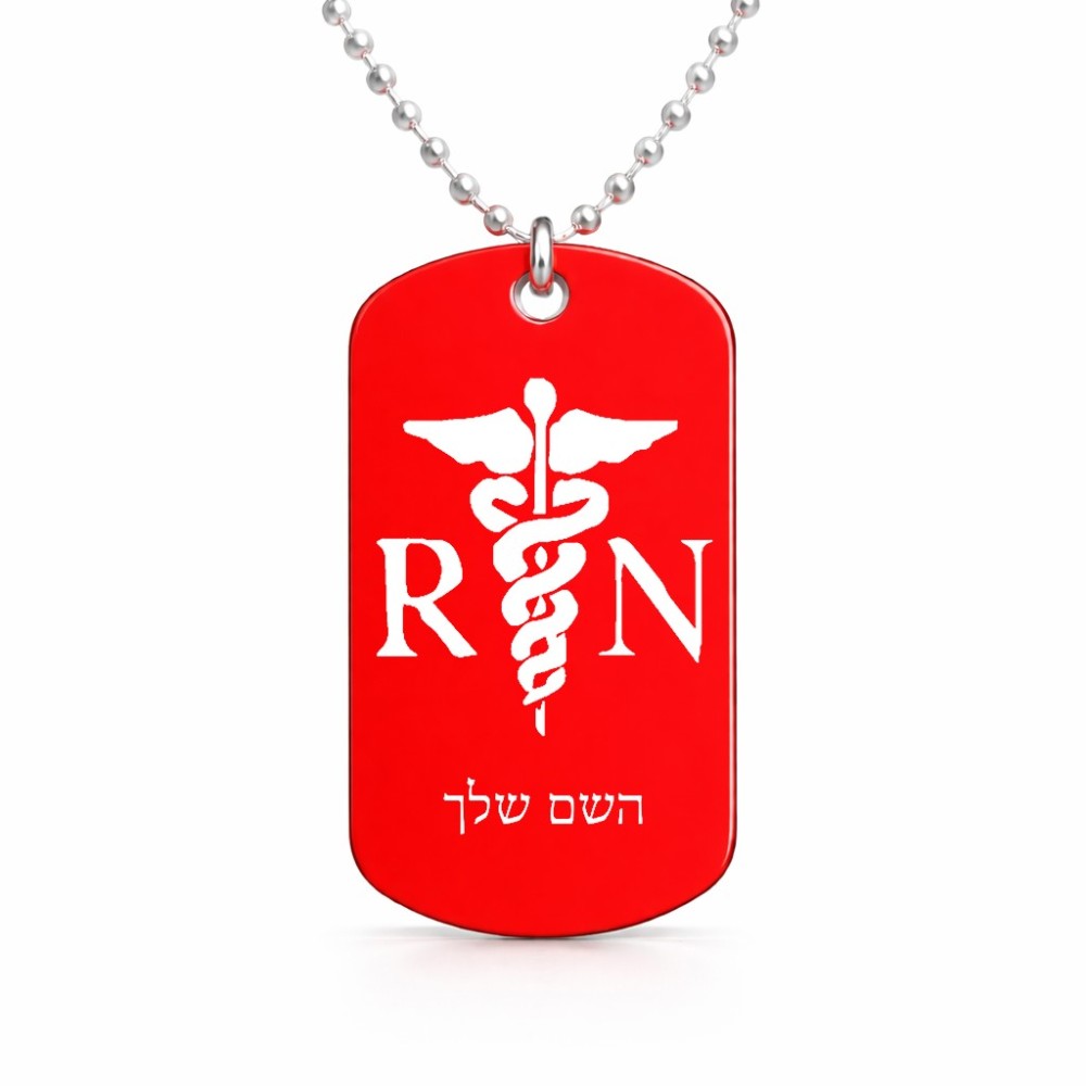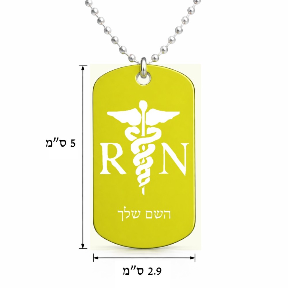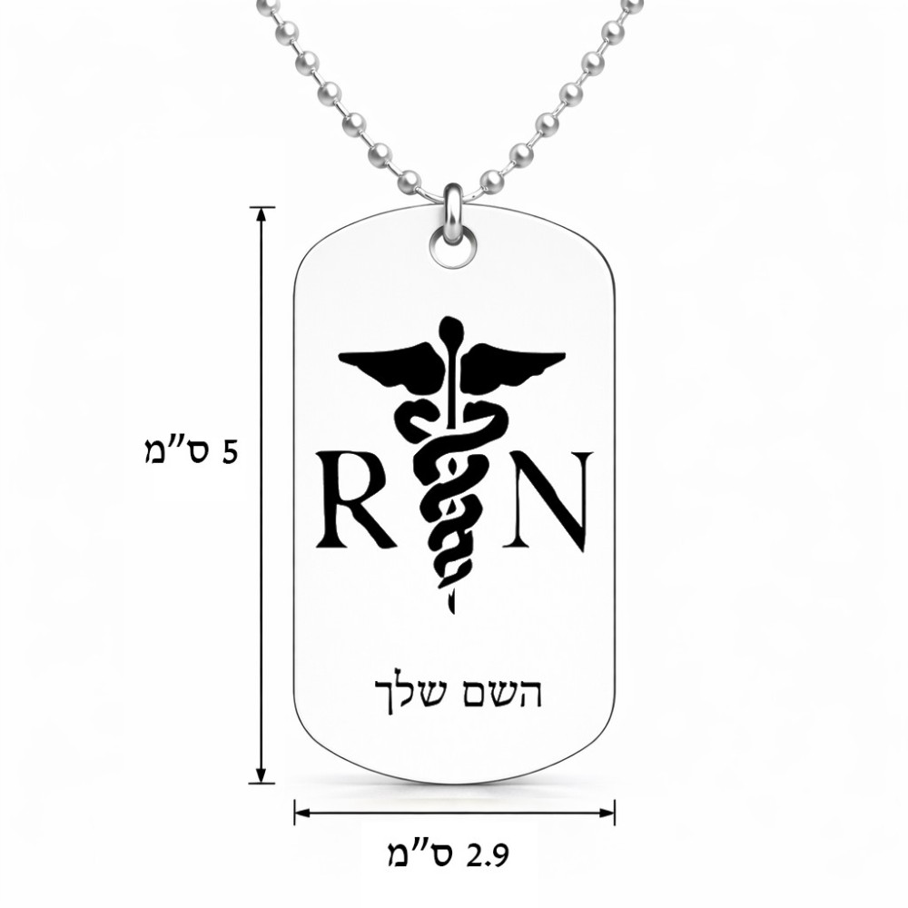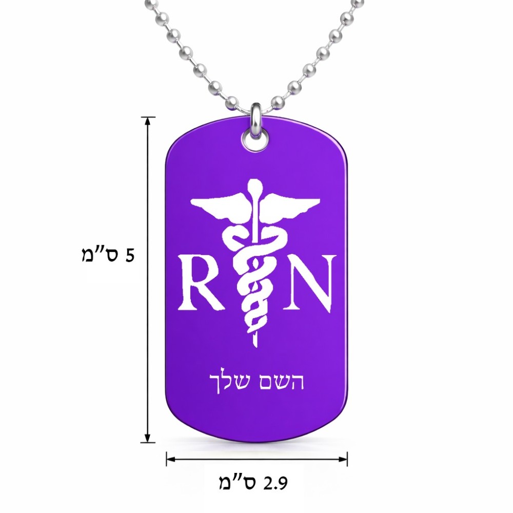 שרשרת דיסקיט מאלומיניום בעיצוב אישי עם השם שלך בעיצוב אחות מוסמכת גודל הדיסקיט 2.9 × 5 ס"מ. את השם המבוקש ניתן לציין בהזמנה, אם לא צויין אנחנו ניצור קשר לבירור.