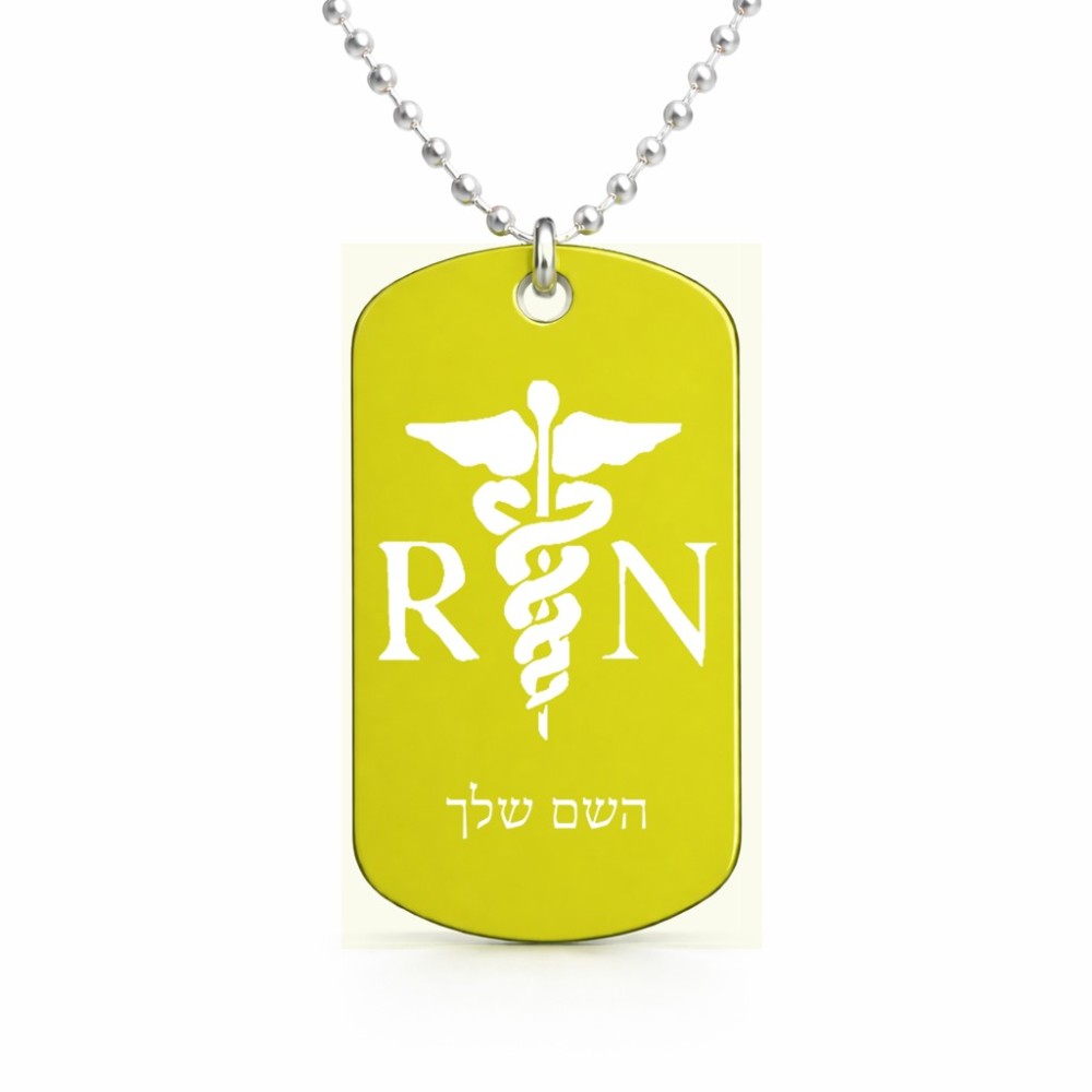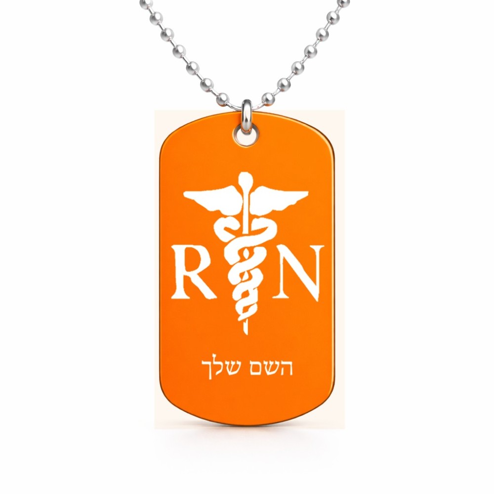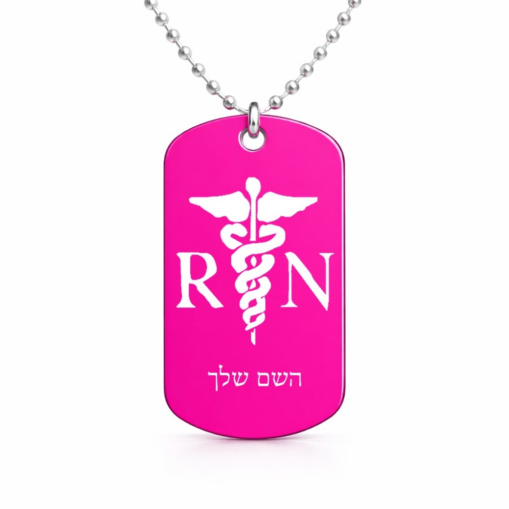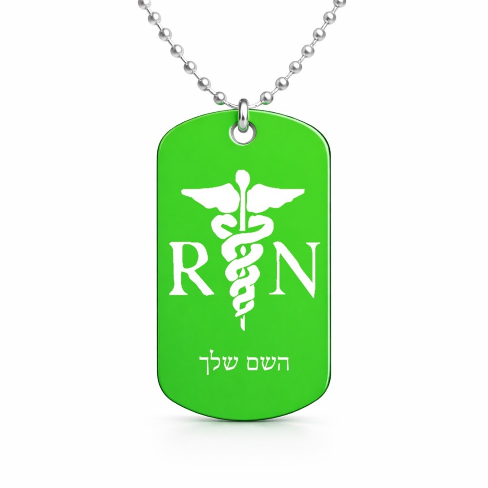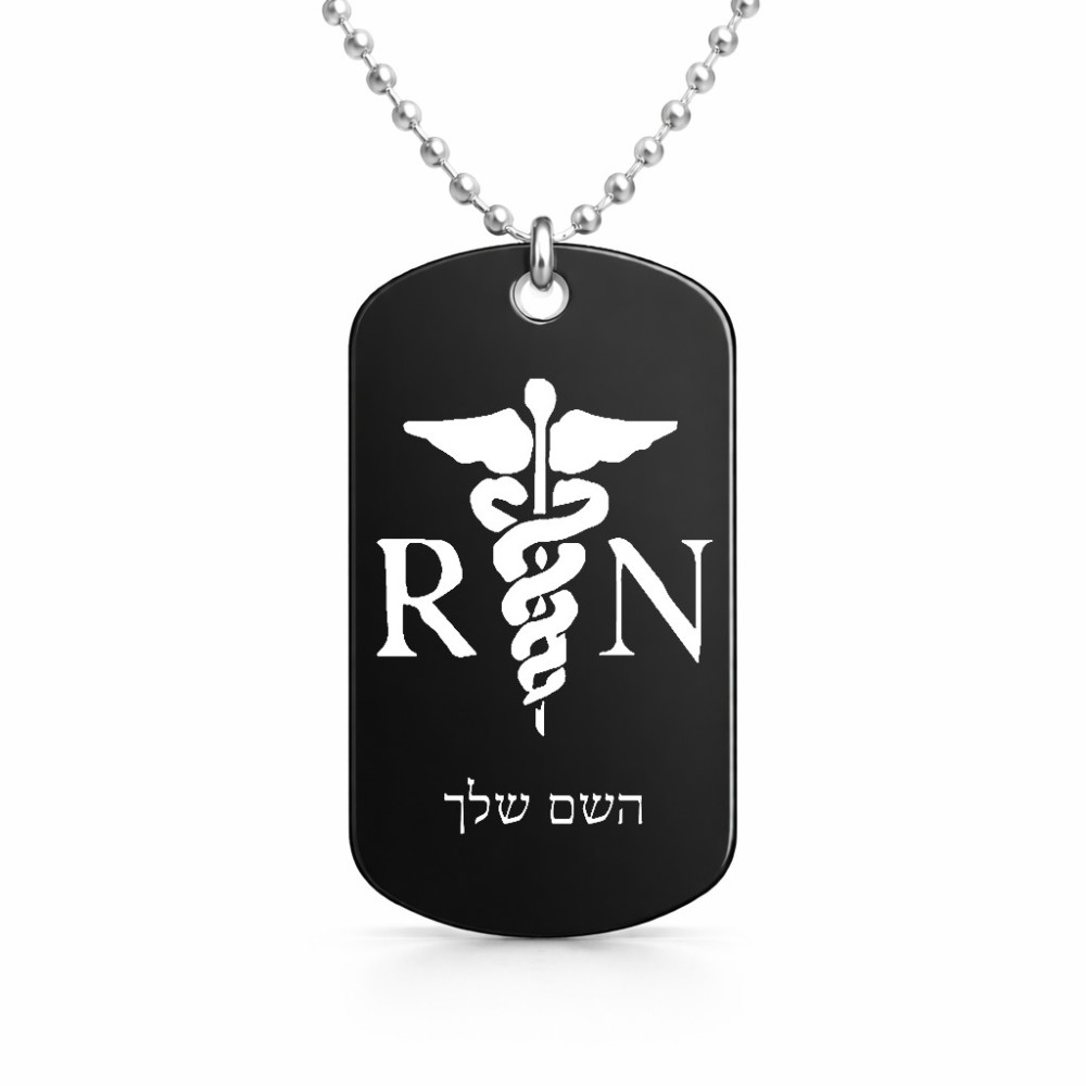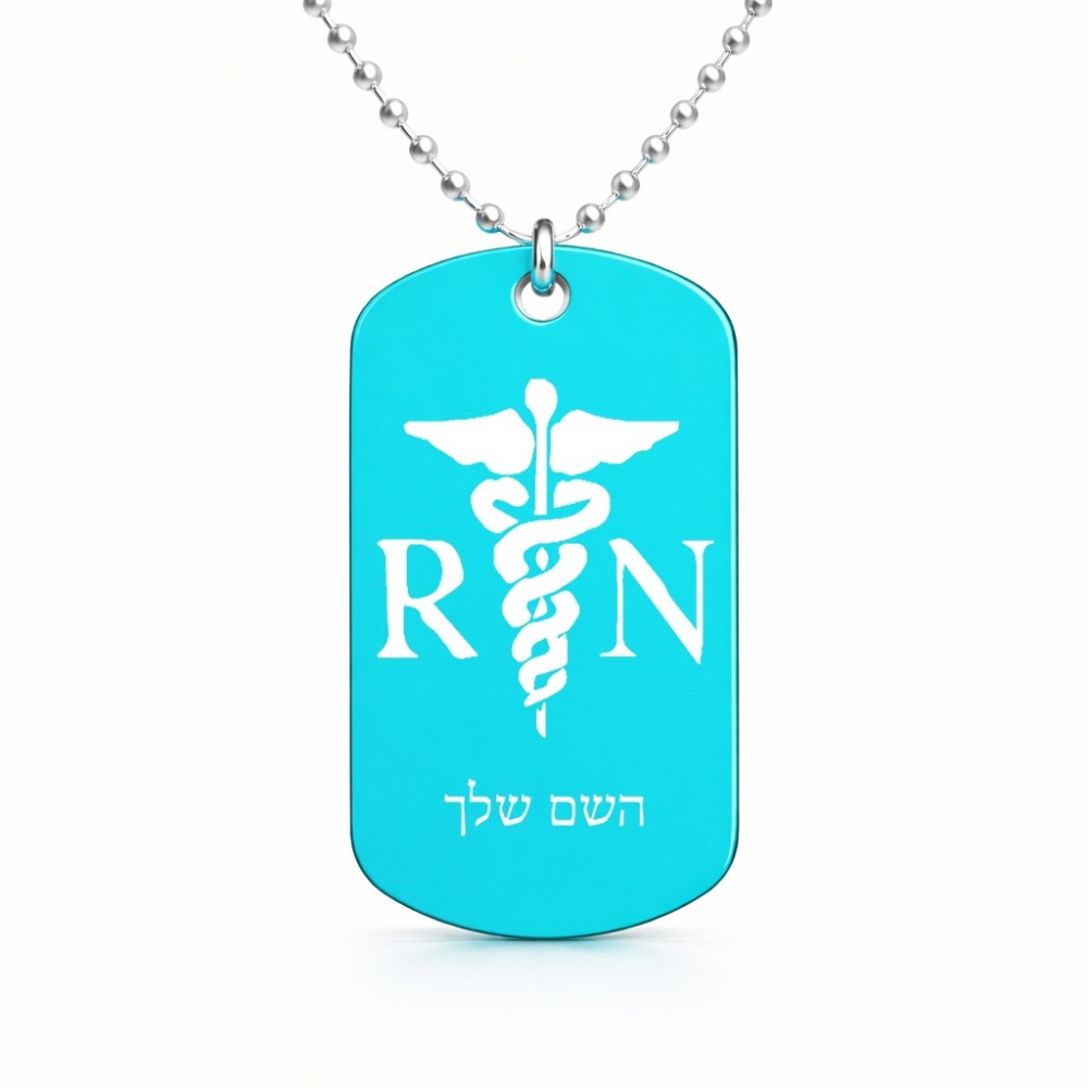 שרשרת דיסקיט מאלומיניום בעיצוב אישי עם השם שלך בעיצוב אחות מוסמכת גודל הדיסקיט 2.9 × 5 ס"מ. את השם המבוקש ניתן לציין בהזמנה, אם לא צויין אנחנו ניצור קשר לבירור.