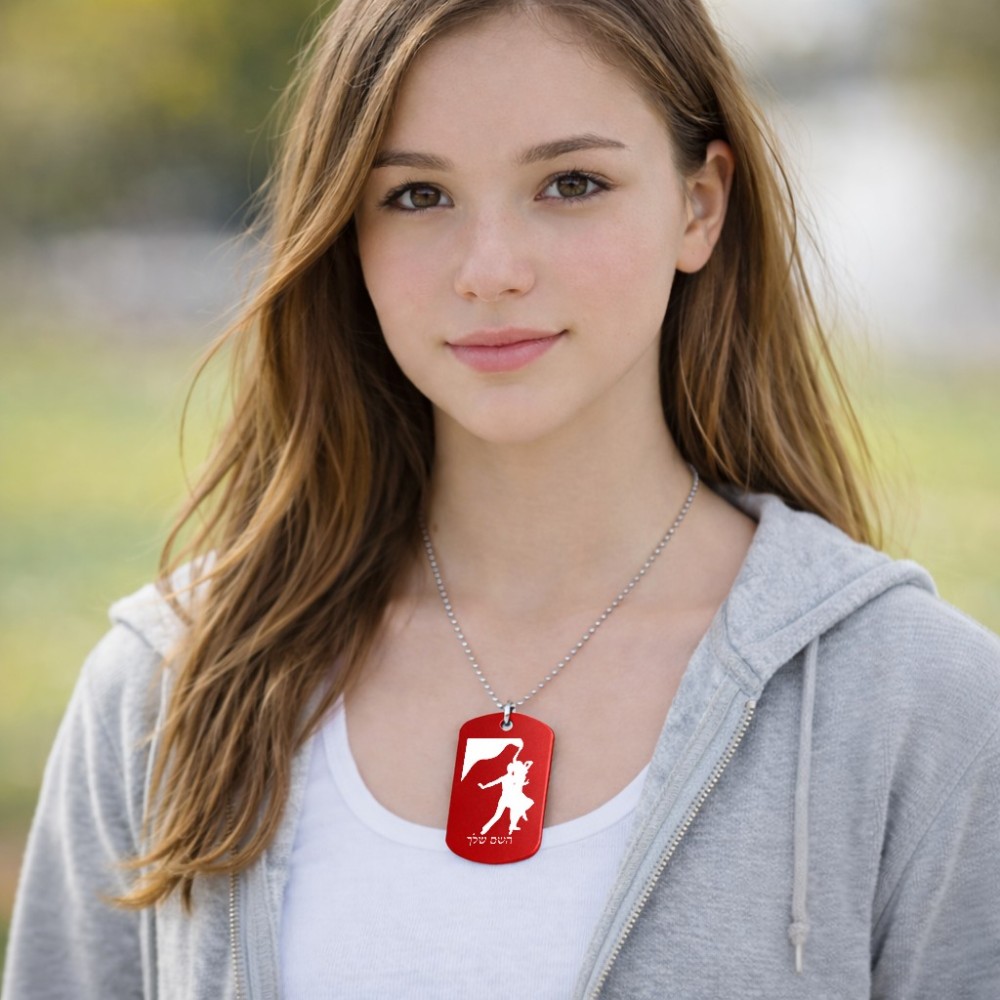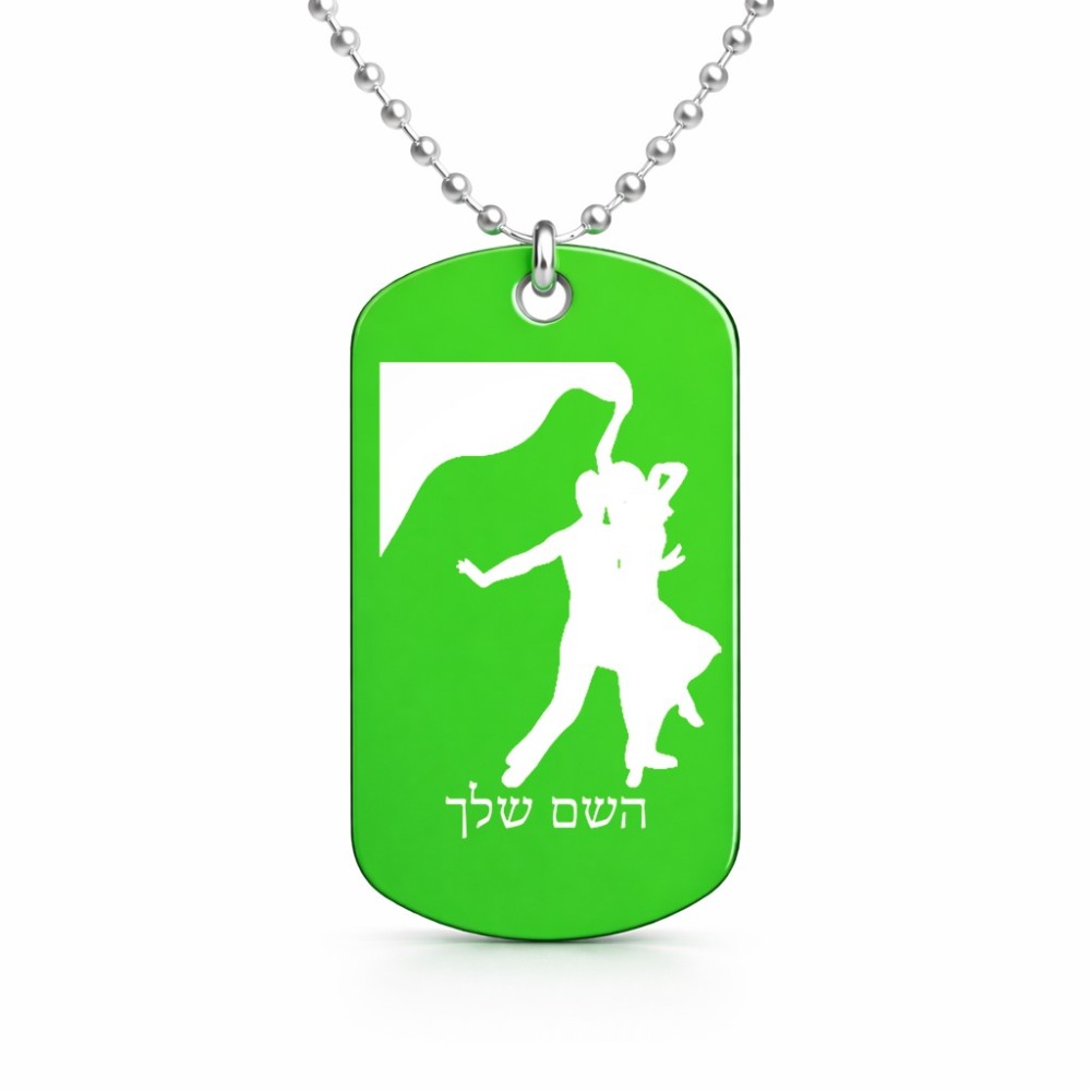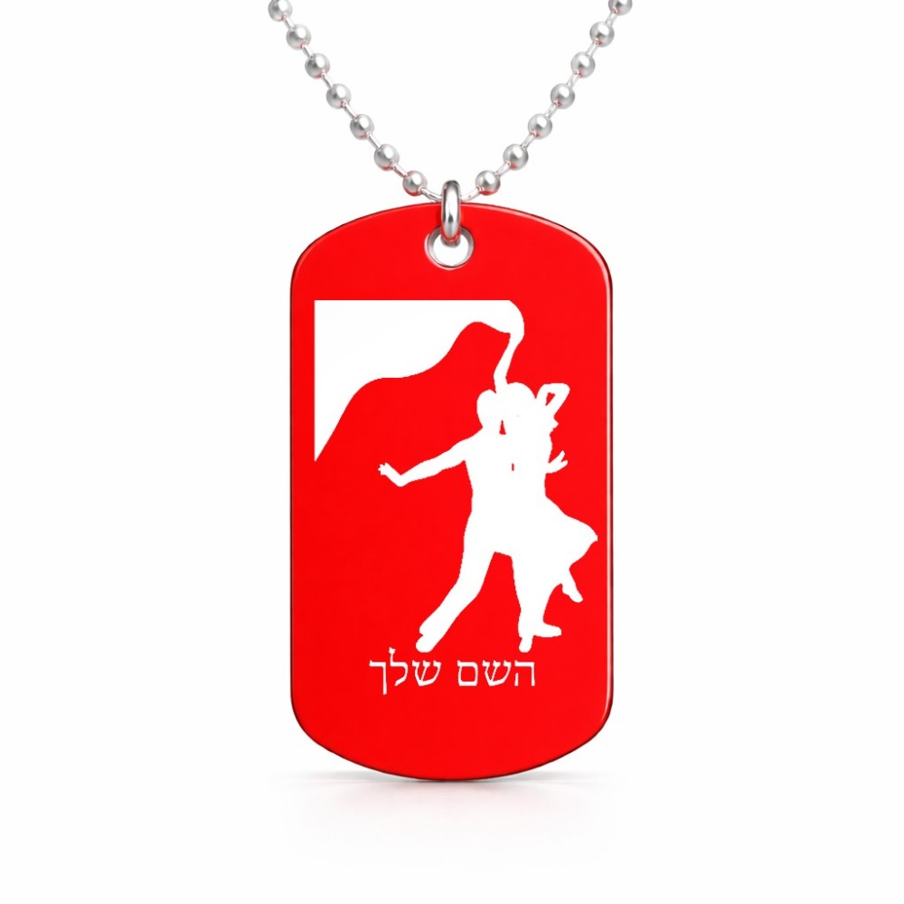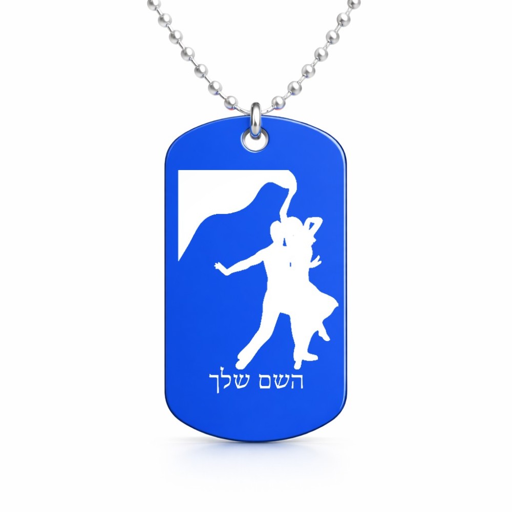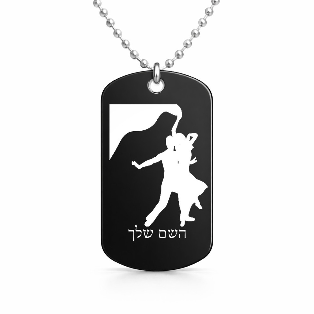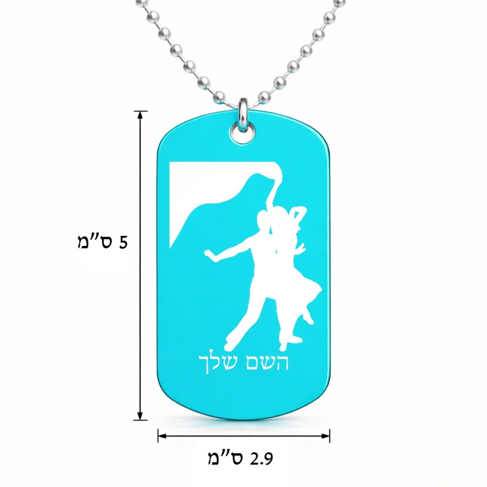 שרשרת דיסקיט מאלומיניום בעיצוב אישי עם השם שלך בעיצוב אישה רוקדת עם גבר גודל הדיסקיט 2.9 × 5 ס"מ. את השם המבוקש ניתן לציין בהזמנה, אם לא צויין אנחנו ניצור קשר לבירור.
