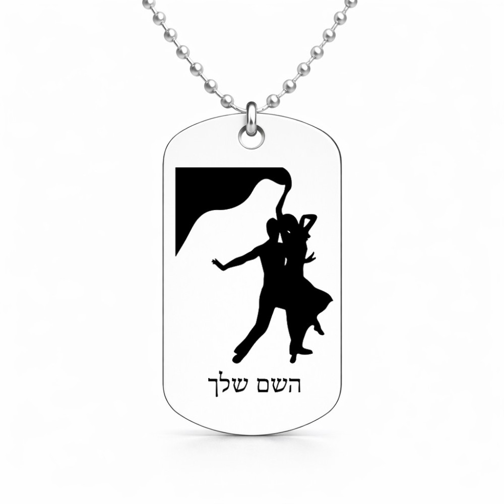 שרשרת דיסקיט מאלומיניום בעיצוב אישי עם השם שלך בעיצוב אישה רוקדת עם גבר גודל הדיסקיט 2.9 × 5 ס"מ