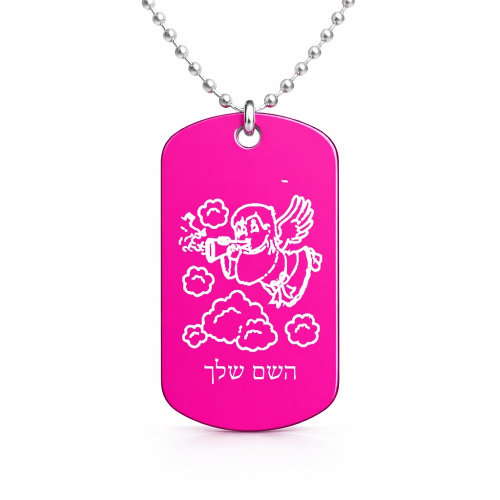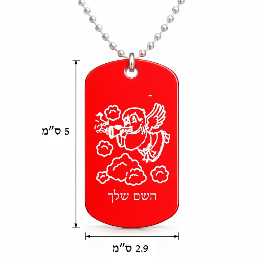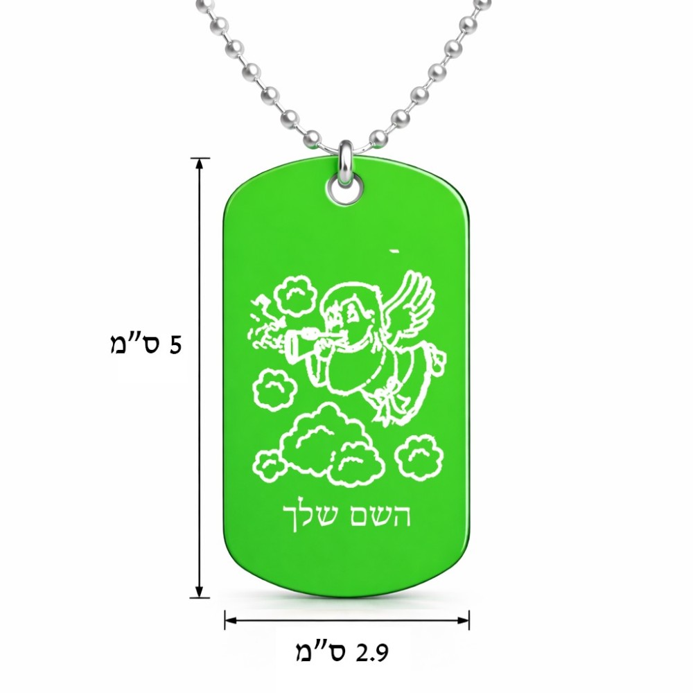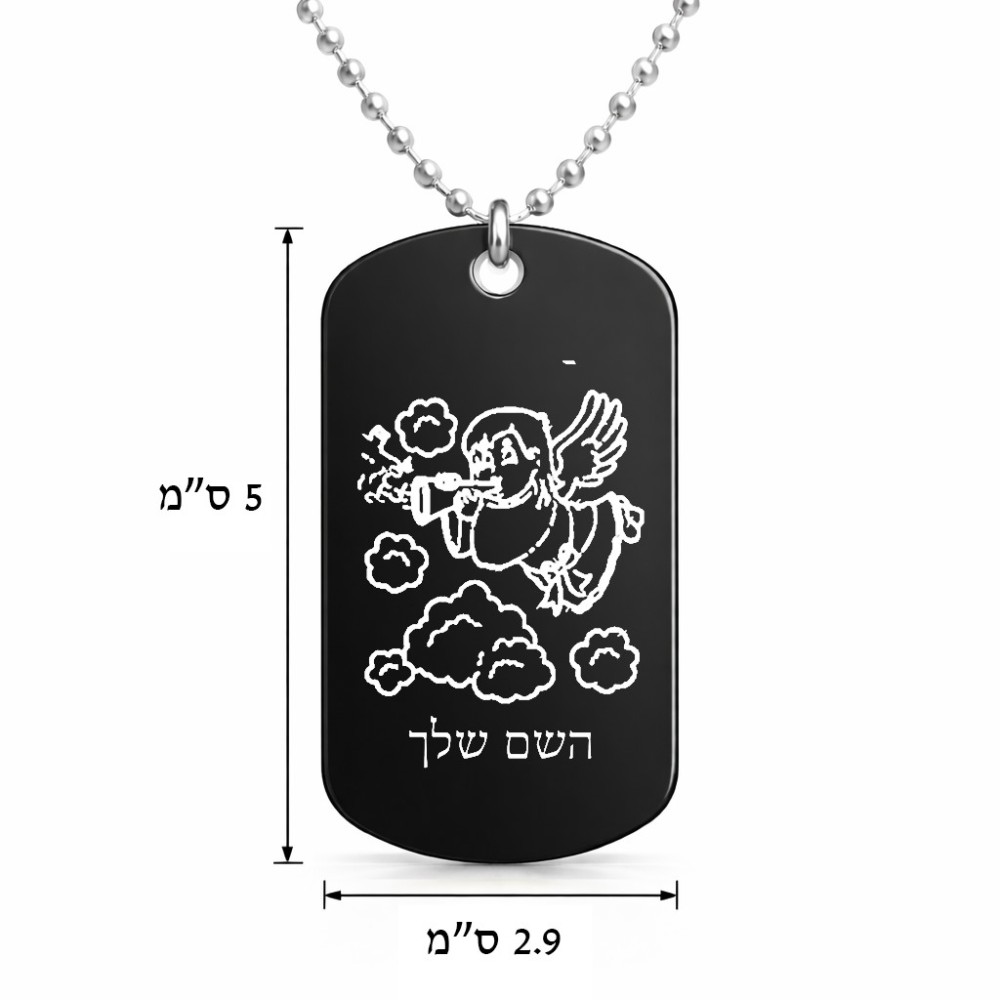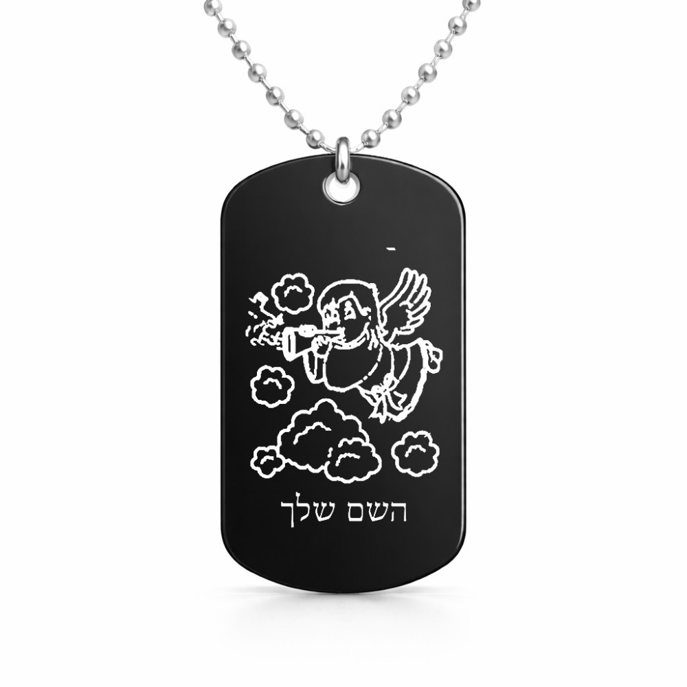 שרשרת דיסקיט מאלומיניום בעיצוב אישי עם השם שלך בעיצוב מחזמר אנג'ל 2 גודל הדיסקיט 2.9 × 5 ס"מ. את השם המבוקש ניתן לציין בהזמנה, אם לא צויין אנחנו ניצור קשר לבירור.