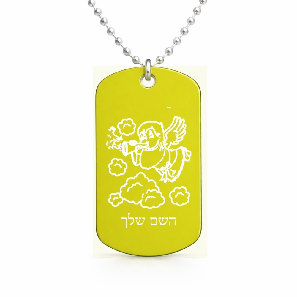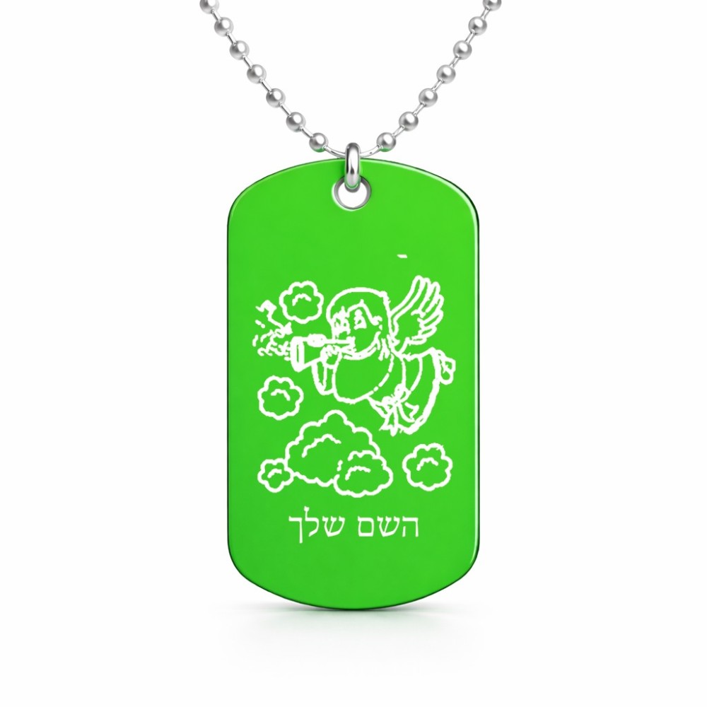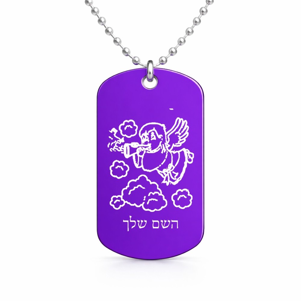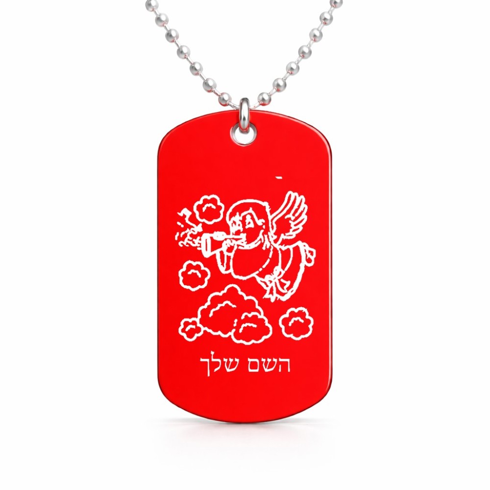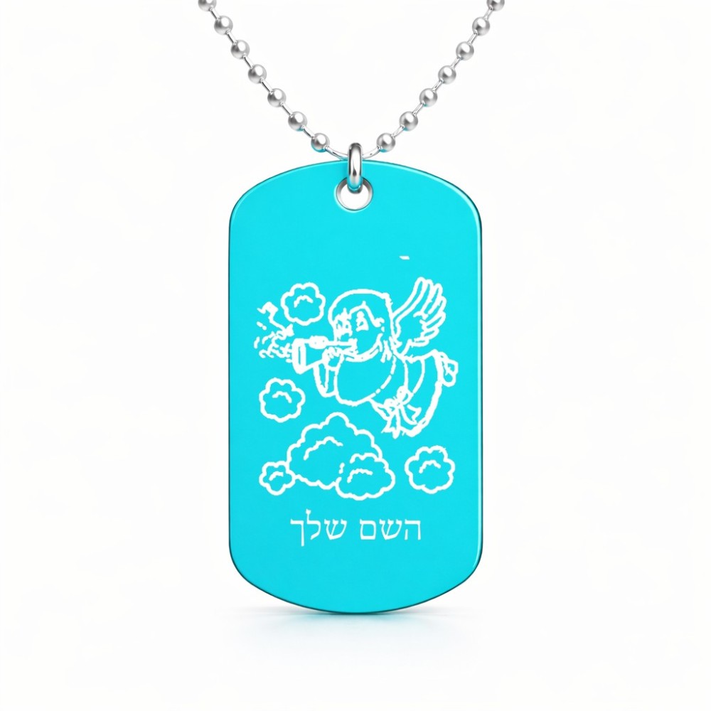 שרשרת דיסקיט מאלומיניום בעיצוב אישי עם השם שלך בעיצוב מחזמר אנג'ל 2 גודל הדיסקיט 2.9 × 5 ס"מ. את השם המבוקש ניתן לציין בהזמנה, אם לא צויין אנחנו ניצור קשר לבירור.