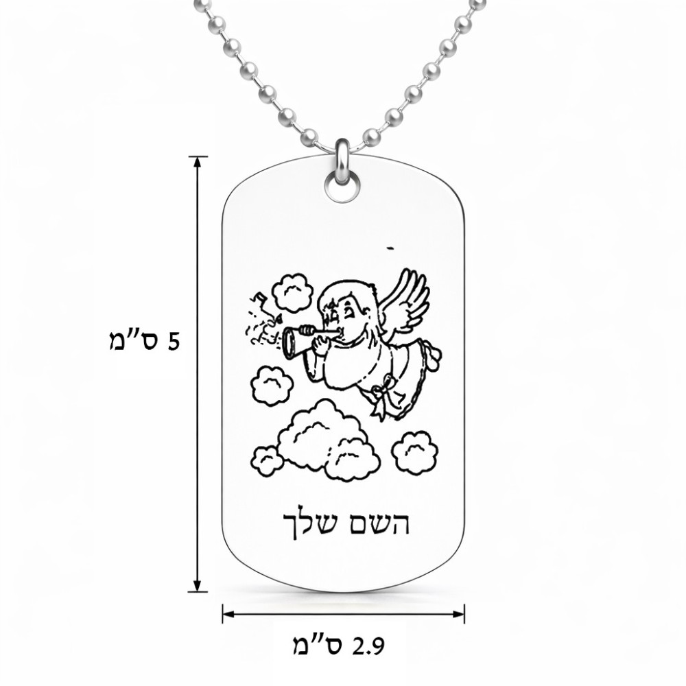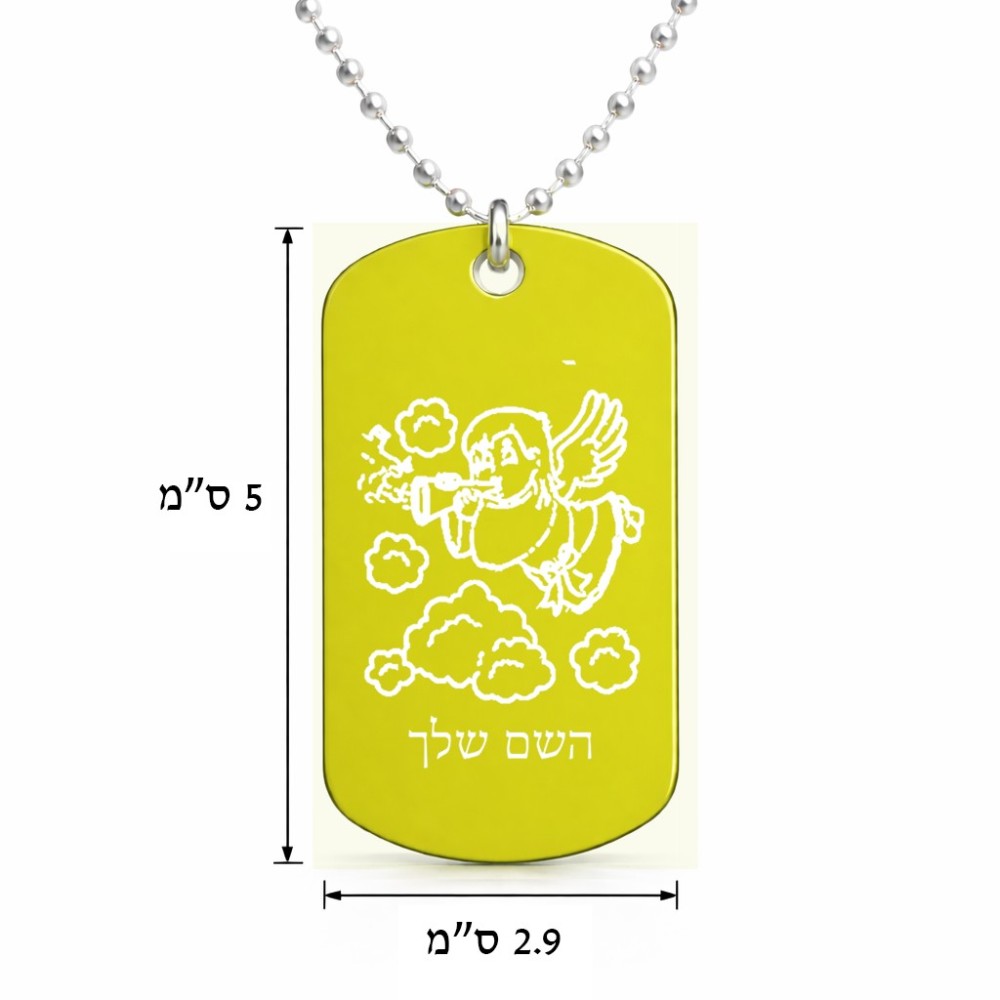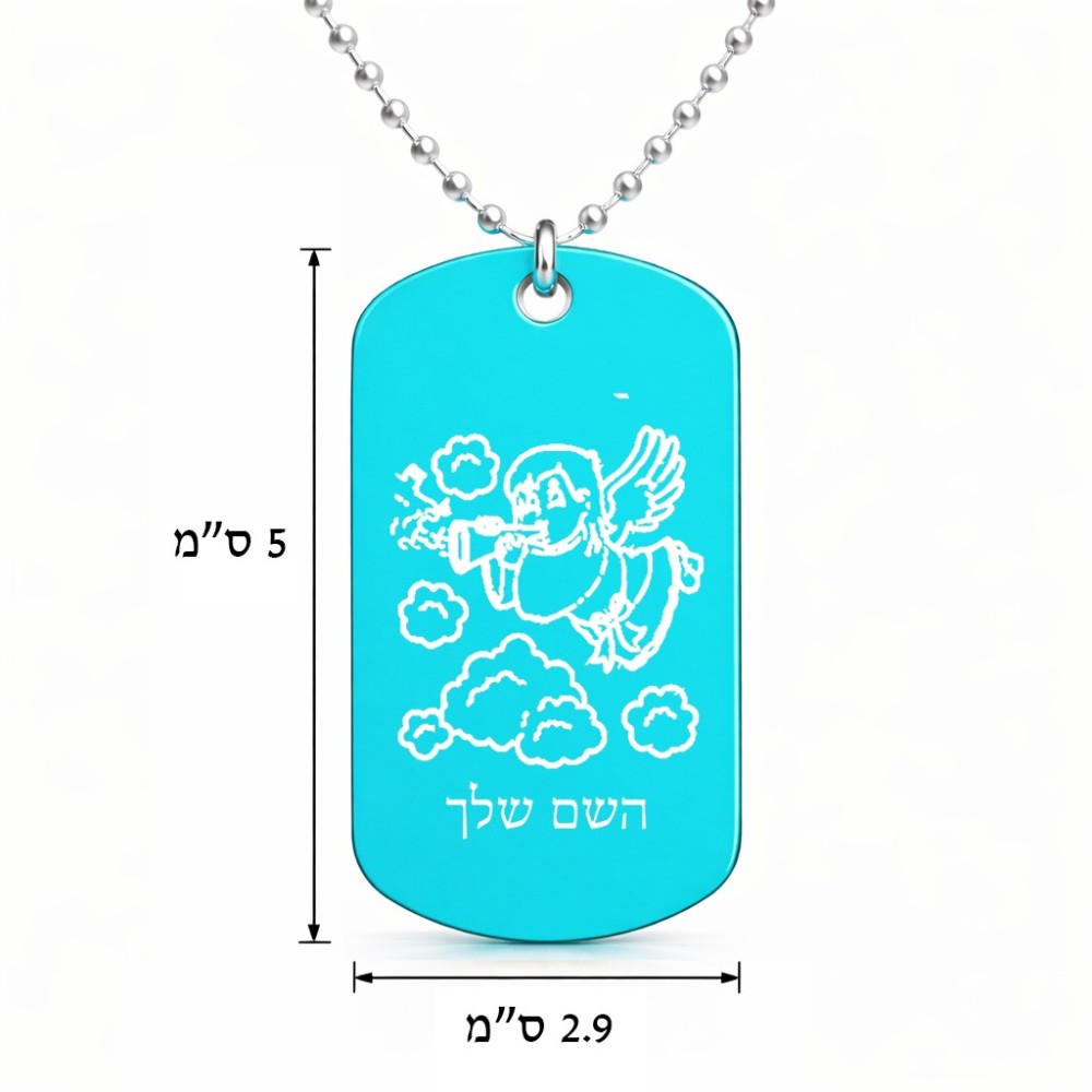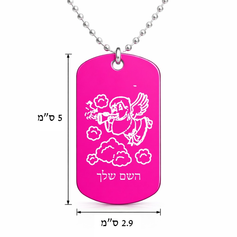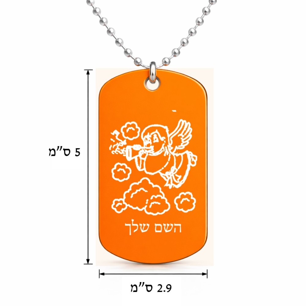 שרשרת דיסקיט מאלומיניום בעיצוב אישי עם השם שלך בעיצוב מחזמר אנג'ל 2 גודל הדיסקיט 2.9 × 5 ס"מ