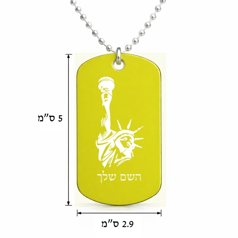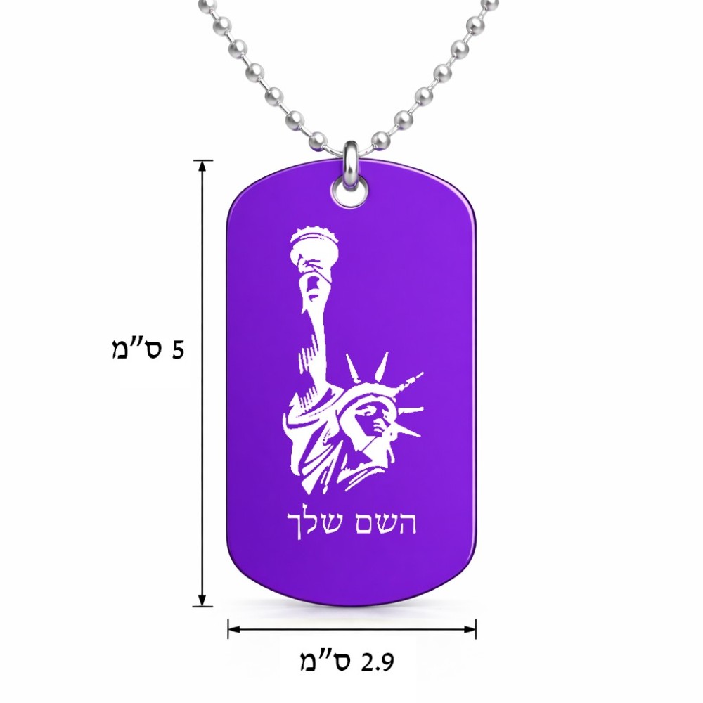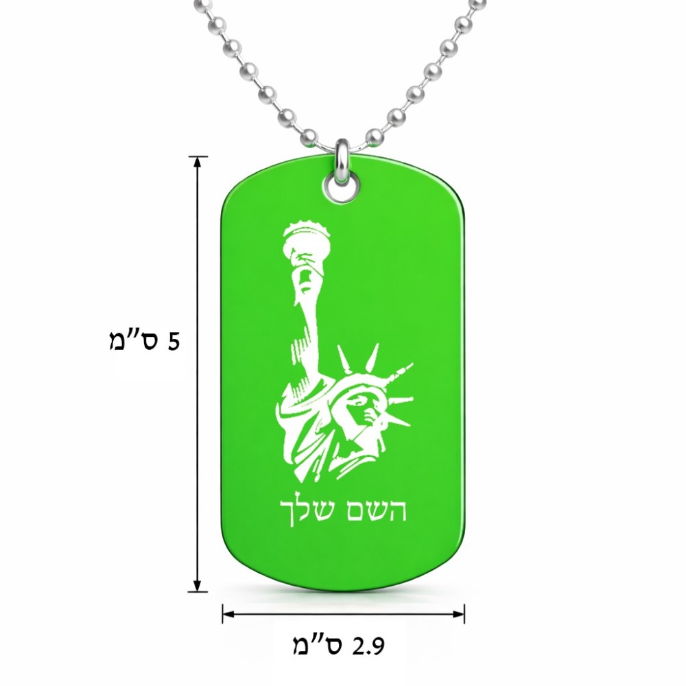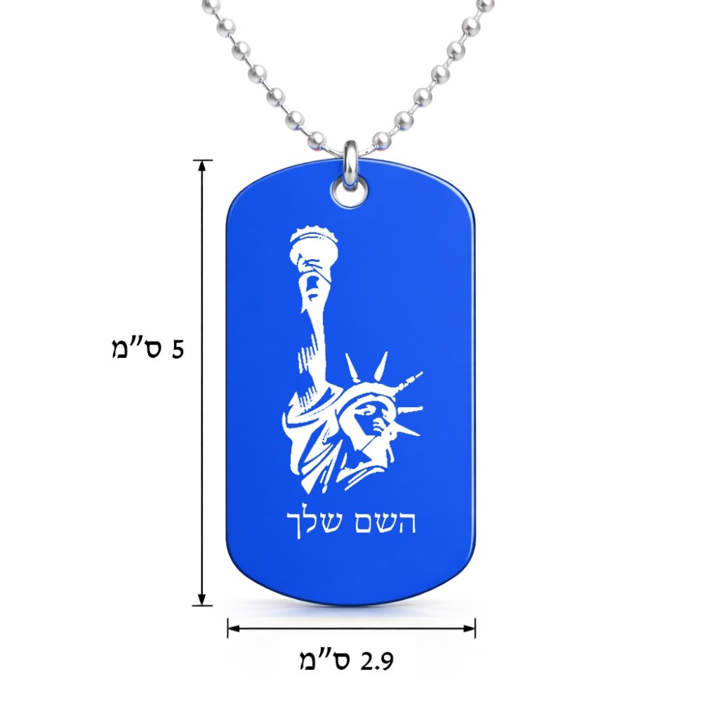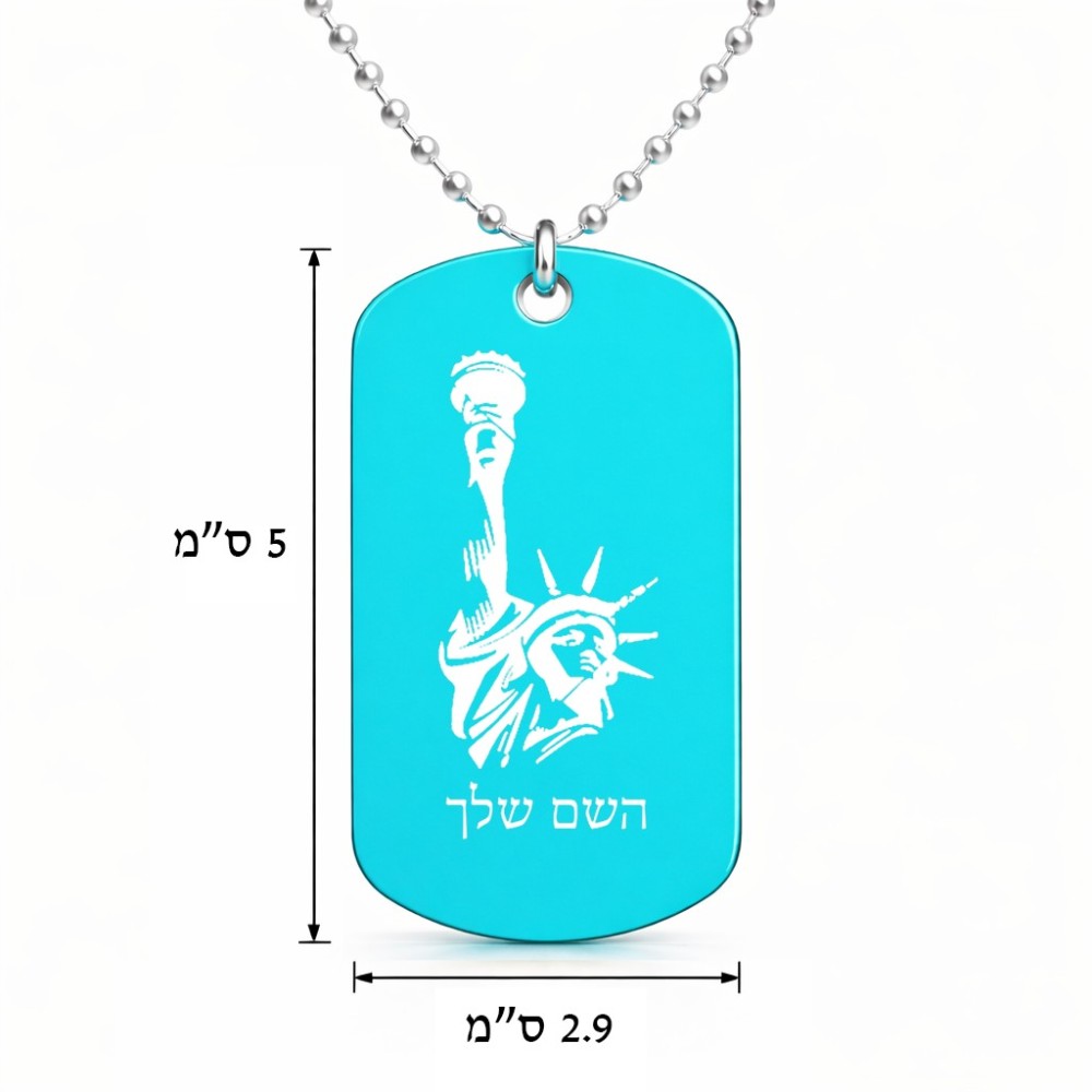 שרשרת דיסקיט מאלומיניום בעיצוב אישי עם השם שלך בעיצוב פסל החירות גודל הדיסקיט 2.9 × 5 ס"מ. את השם המבוקש ניתן לציין בהזמנה, אם לא צויין אנחנו ניצור קשר לבירור.