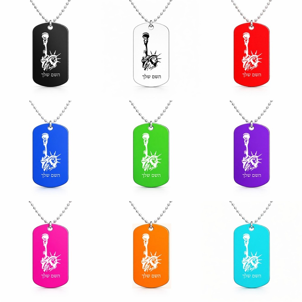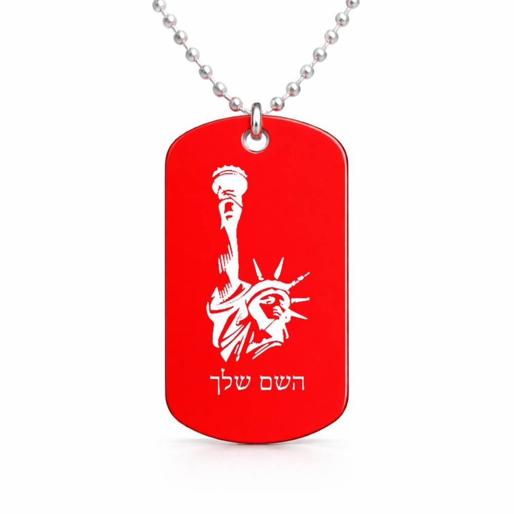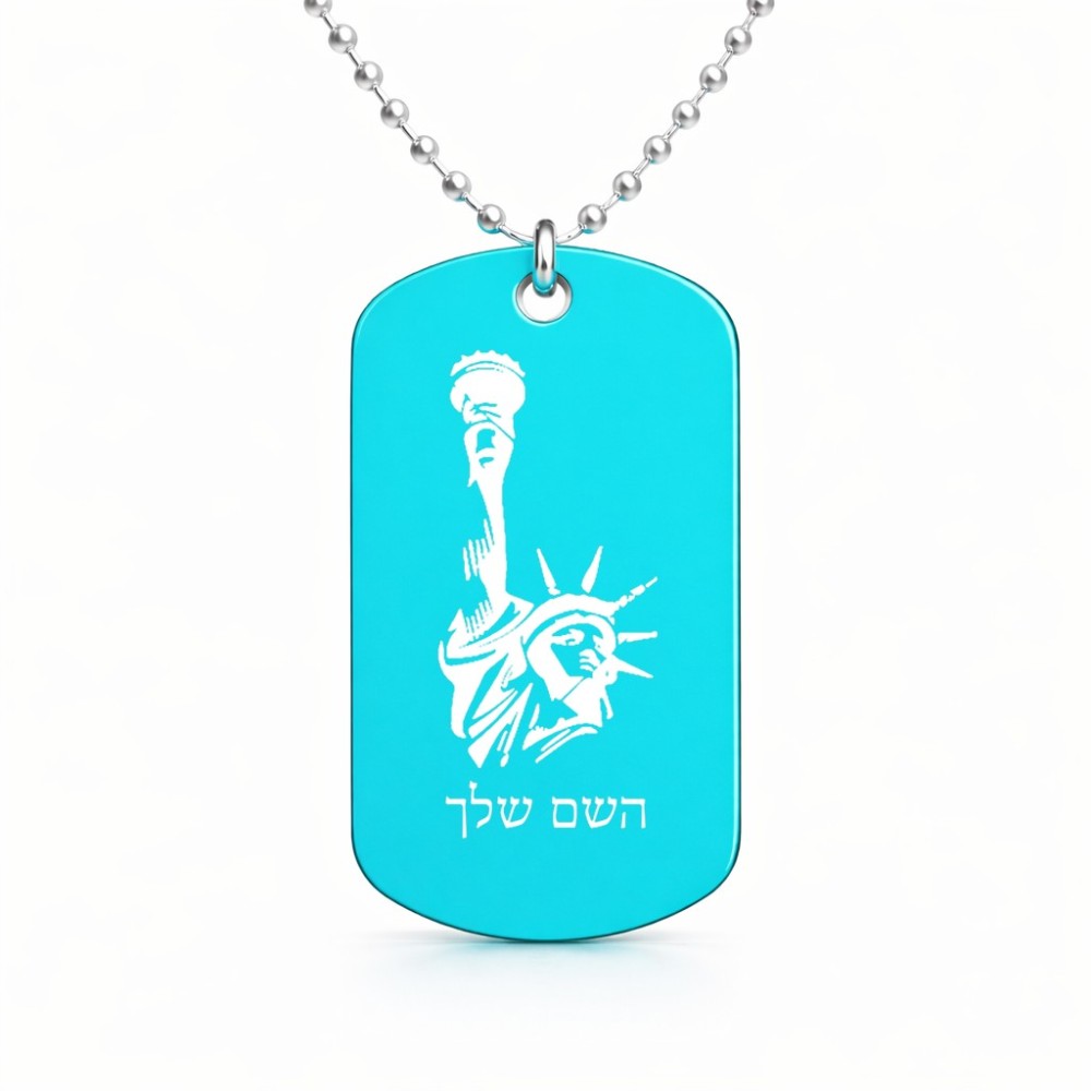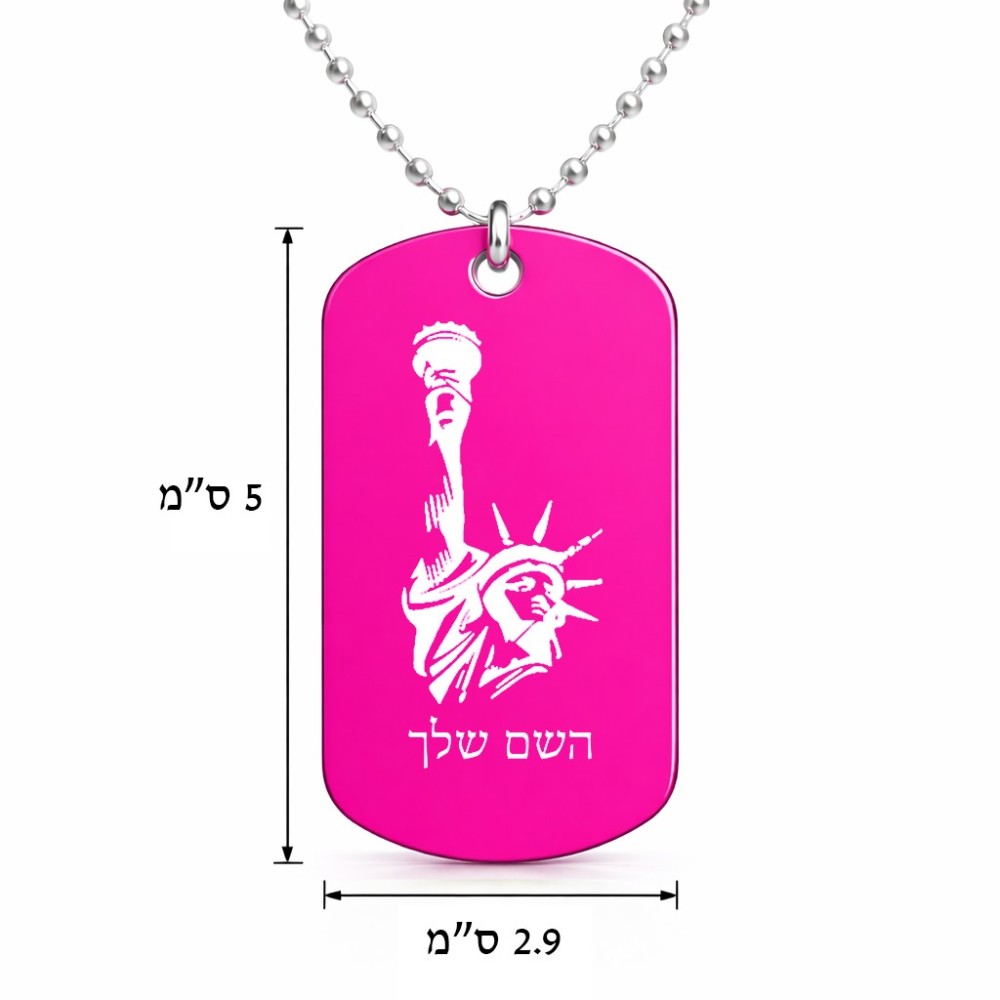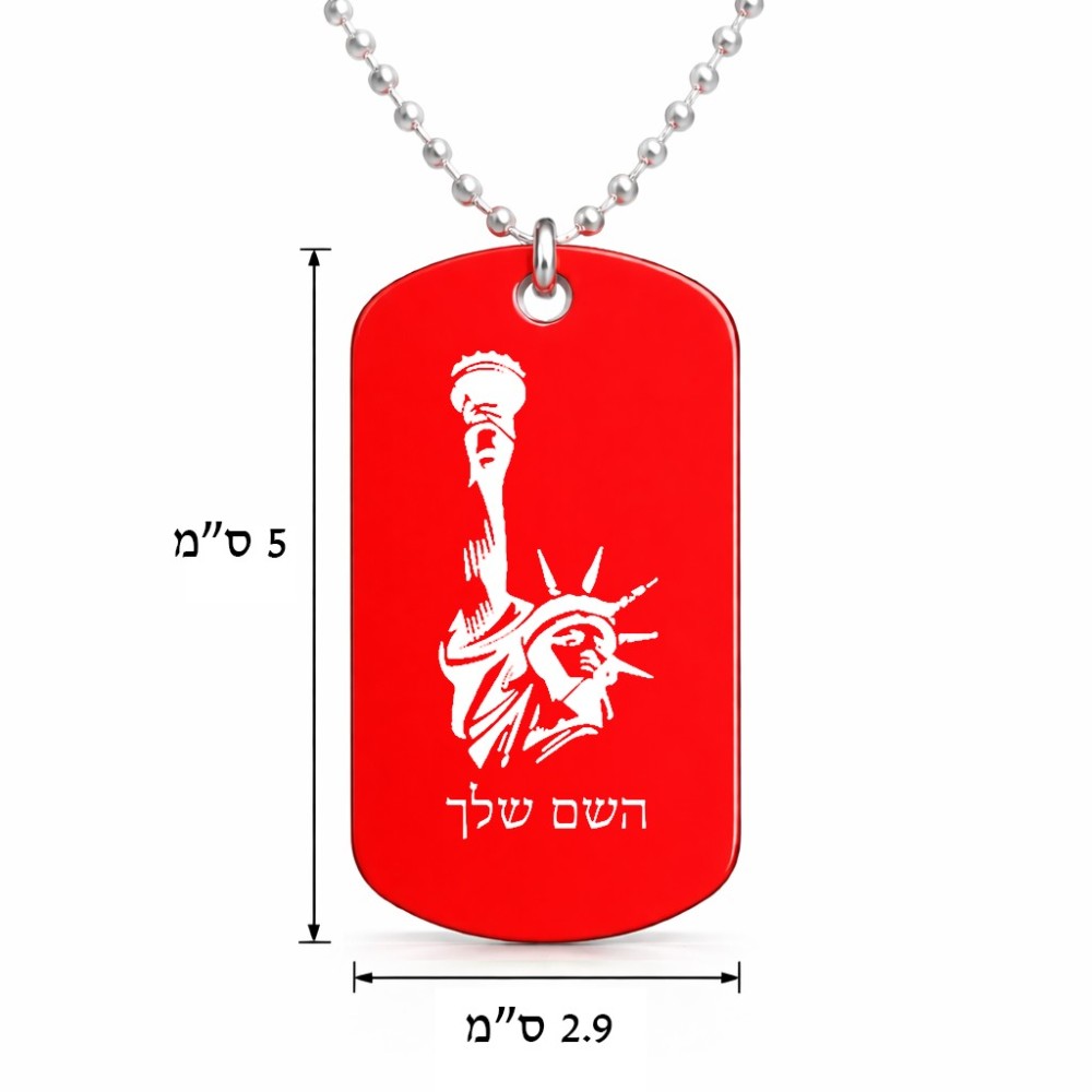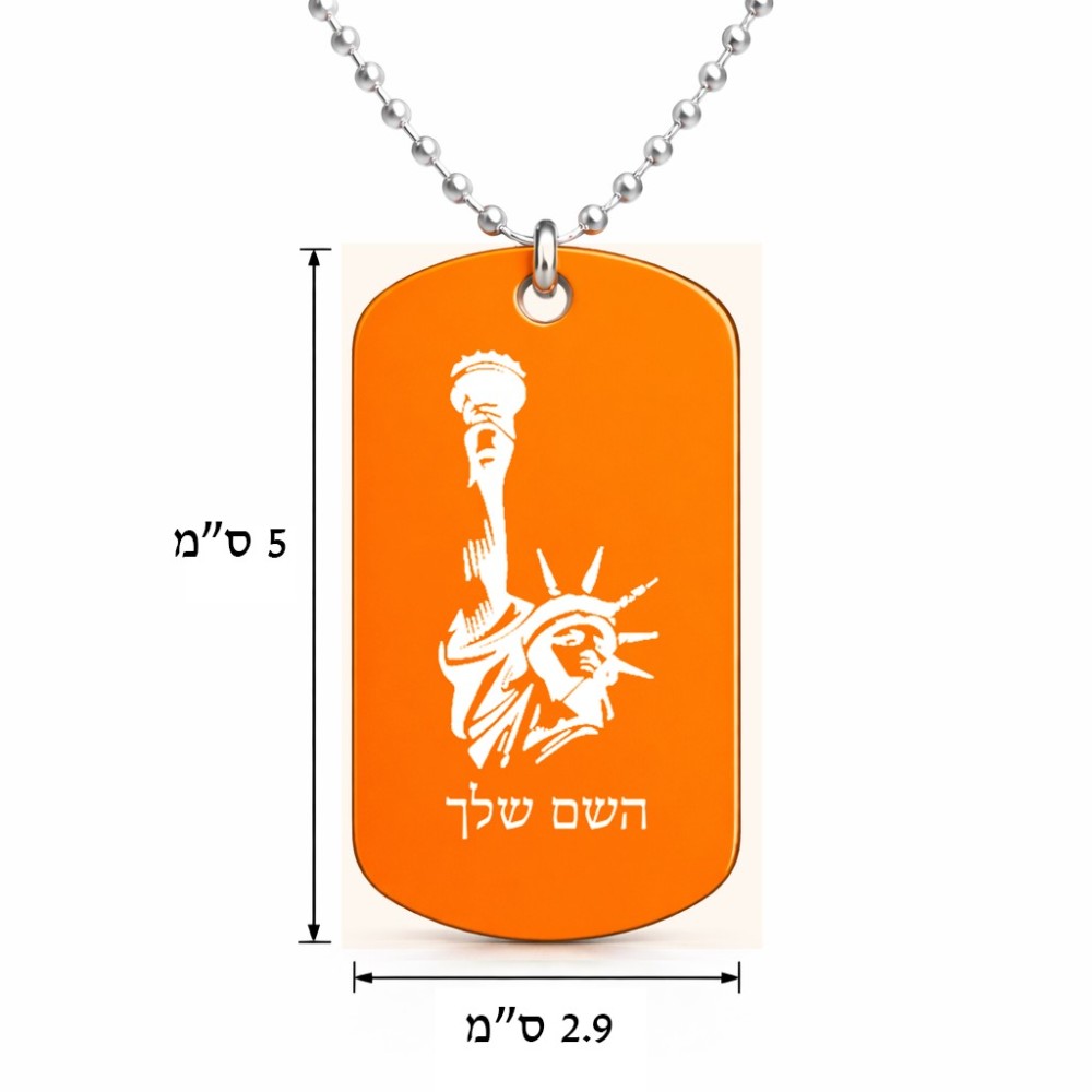 שרשרת דיסקיט מאלומיניום בעיצוב אישי עם השם שלך בעיצוב פסל החירות גודל הדיסקיט 2.9 × 5 ס"מ. את השם המבוקש ניתן לציין בהזמנה, אם לא צויין אנחנו ניצור קשר לבירור.