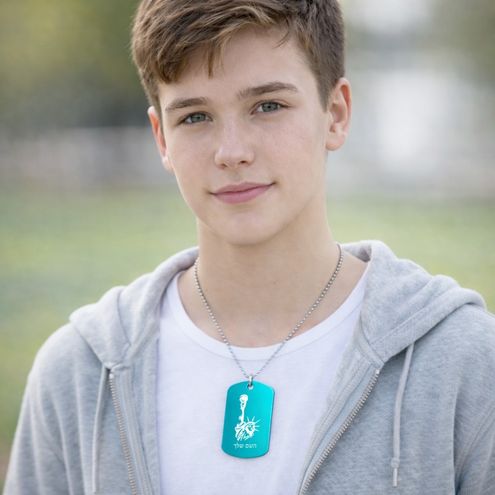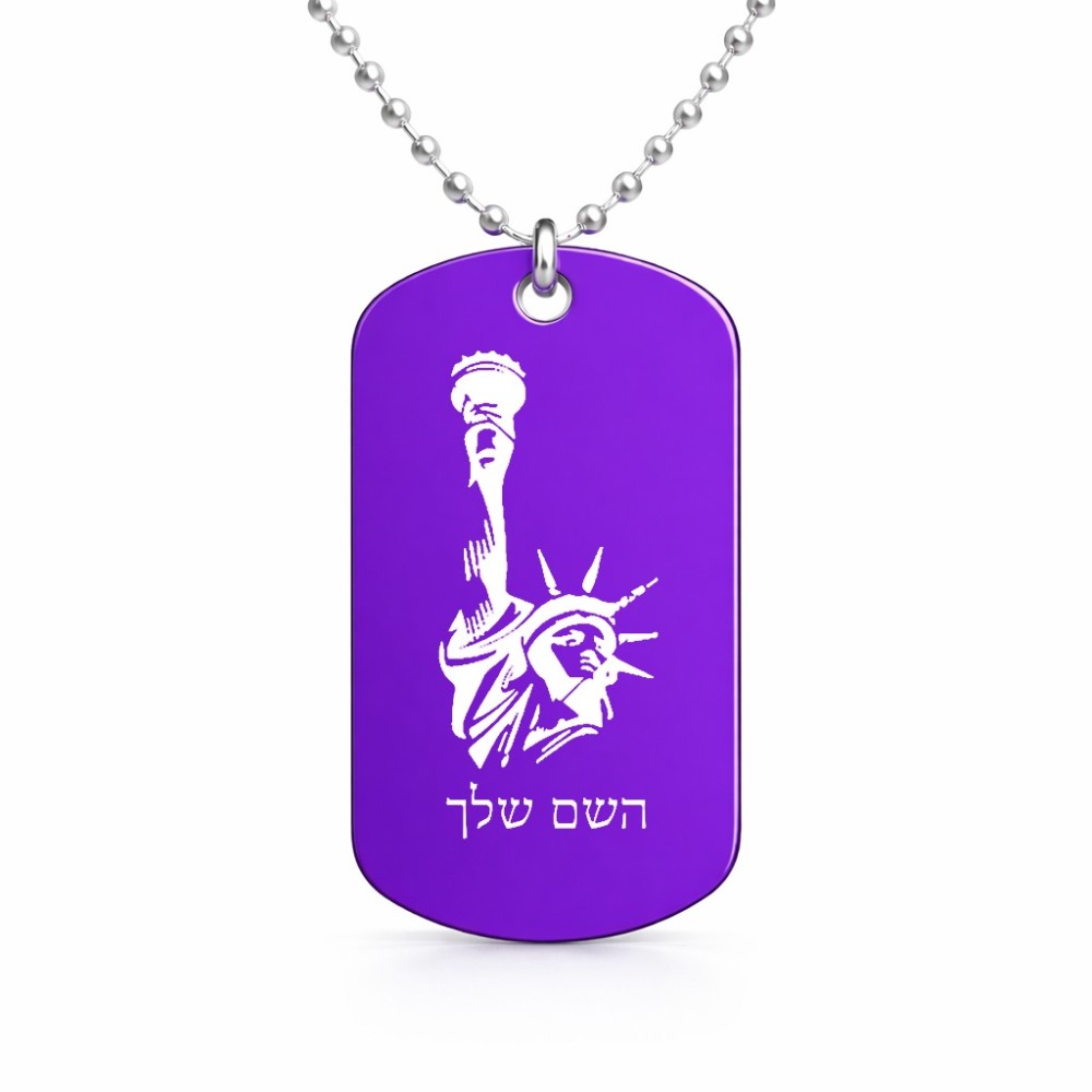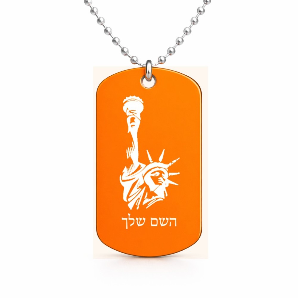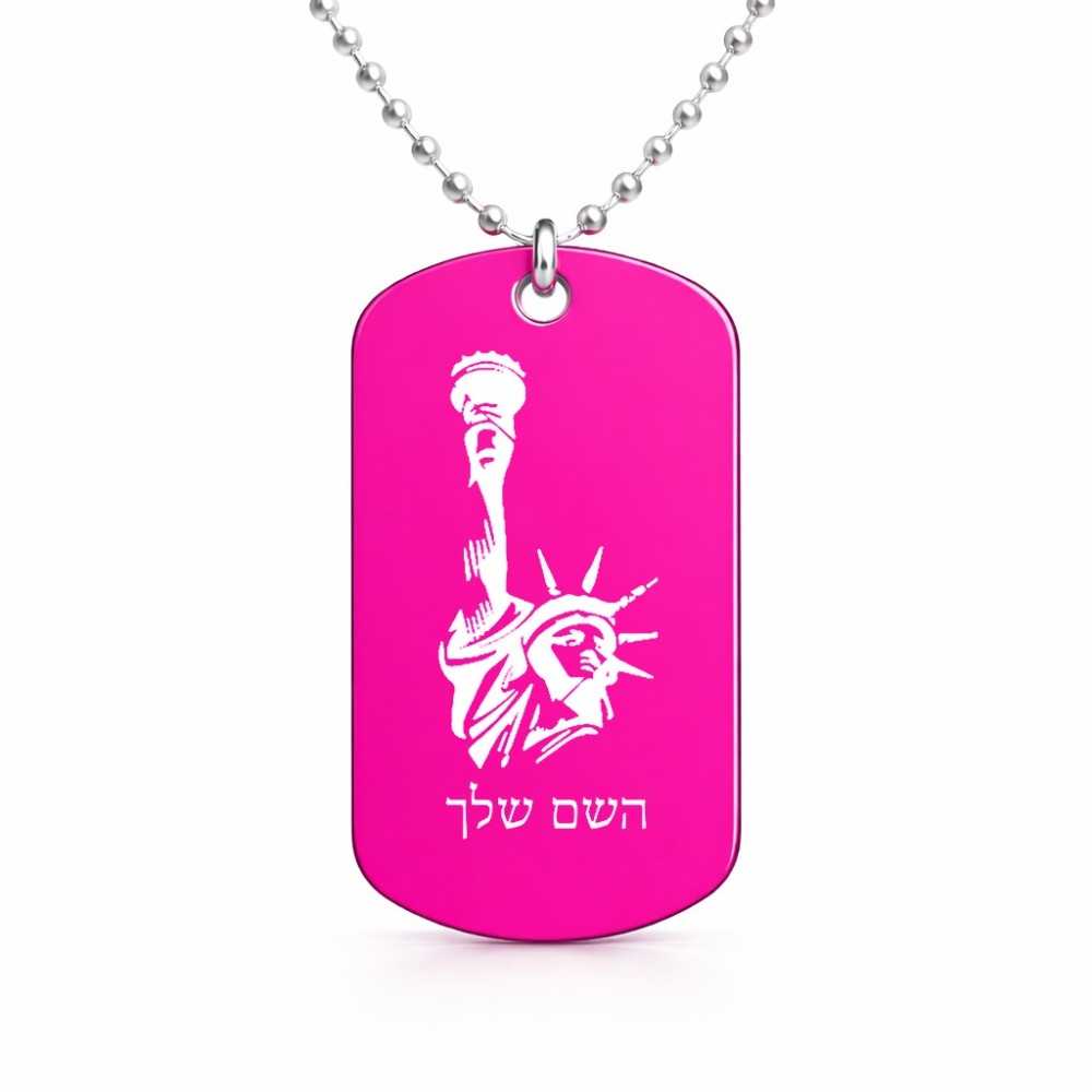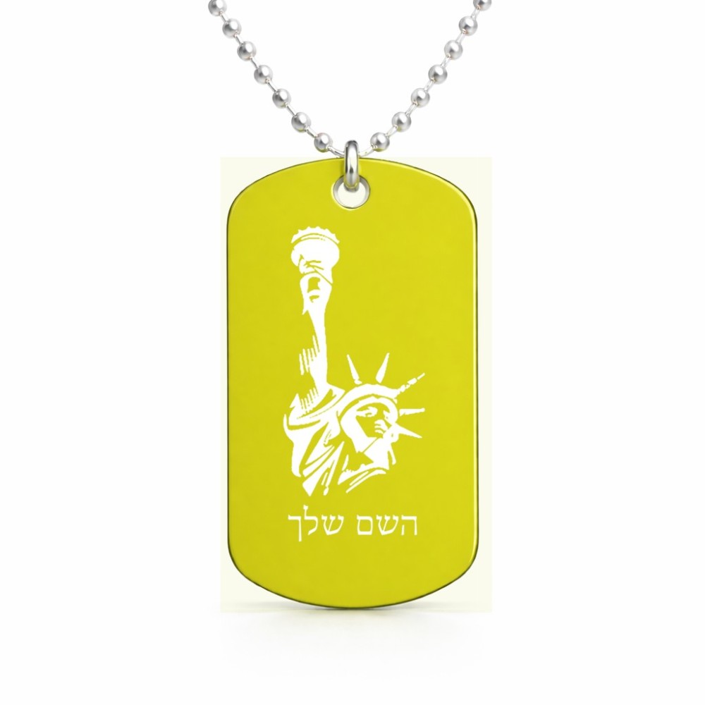 שרשרת דיסקיט מאלומיניום בעיצוב אישי עם השם שלך בעיצוב פסל החירות גודל הדיסקיט 2.9 × 5 ס"מ. את השם המבוקש ניתן לציין בהזמנה, אם לא צויין אנחנו ניצור קשר לבירור.