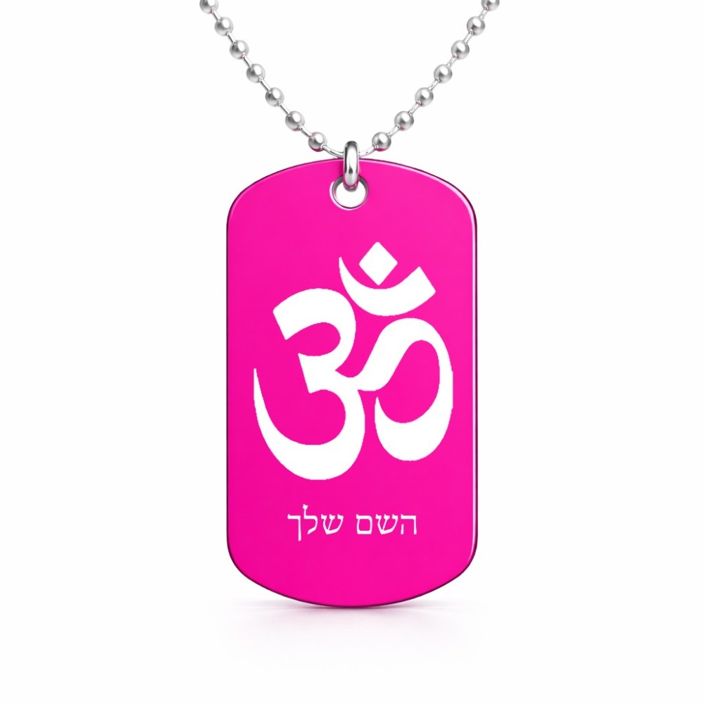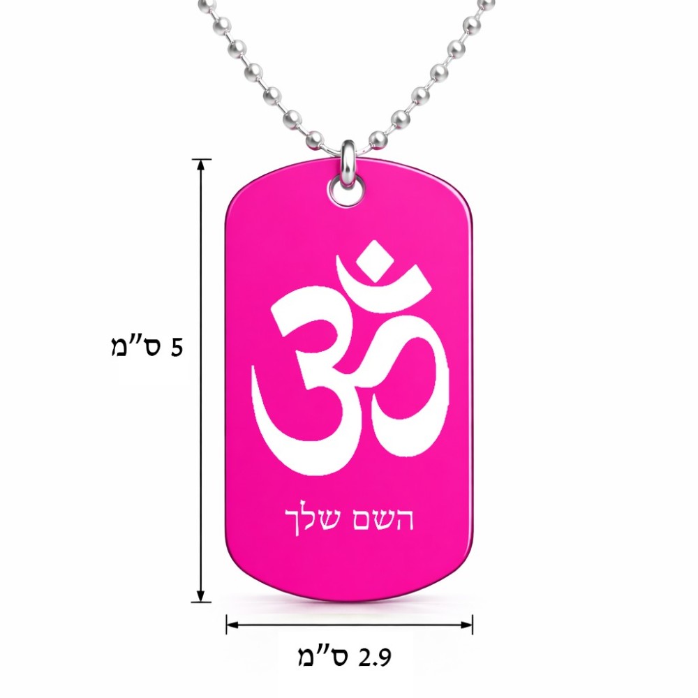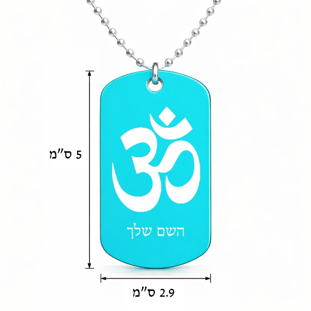 שרשרת דיסקיט מאלומיניום בעיצוב אישי עם השם שלך בעיצוב סמל אום גודל הדיסקיט 2.9 × 5 ס"מ. את השם המבוקש ניתן לציין בהזמנה, אם לא צויין אנחנו ניצור קשר לבירור.