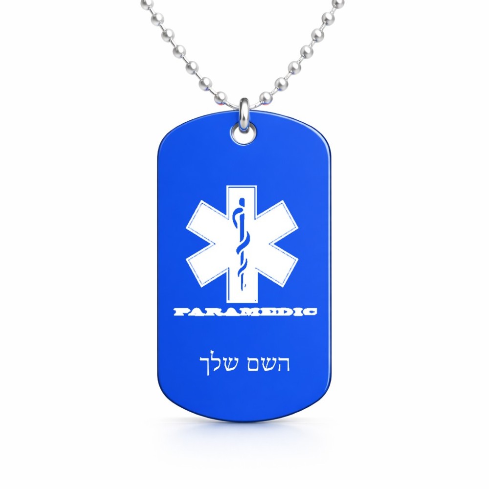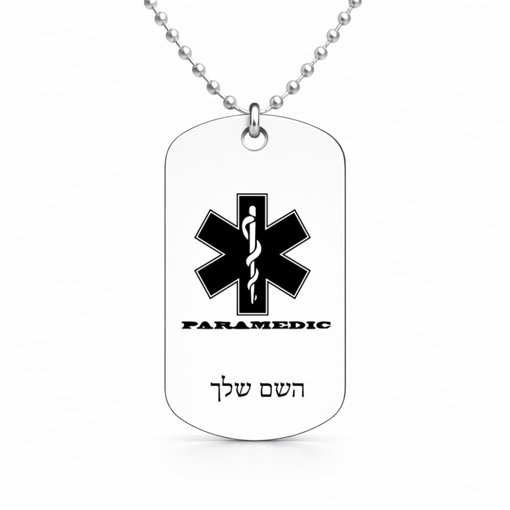 שרשרת דיסקיט מאלומיניום בעיצוב אישי עם השם שלך בעיצוב חובש גודל הדיסקיט 2.9 × 5 ס"מ. את השם המבוקש ניתן לציין בהזמנה, אם לא צויין אנחנו ניצור קשר לבירור.