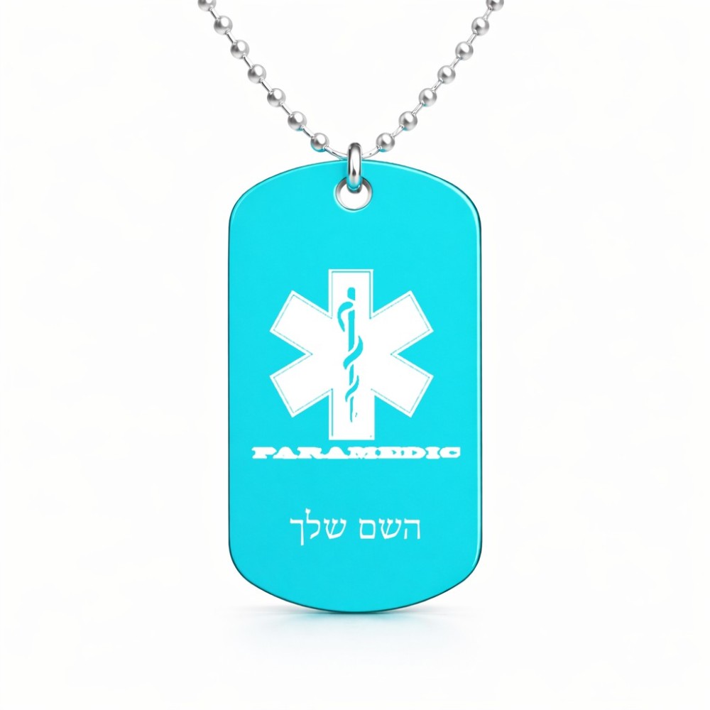 שרשרת דיסקיט מאלומיניום בעיצוב אישי עם השם שלך בעיצוב חובש גודל הדיסקיט 2.9 × 5 ס"מ