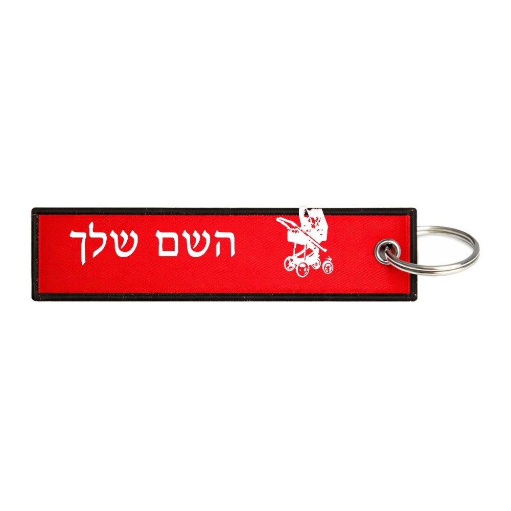תווית סימון תיקים \ צרור מפתחות בעיצוב אישי עם השם שלך בעיצוב עגלת תינוק גודל התווית 12.9 × 3 ס"מ. את השם המבוקש ניתן לציין בהזמנה, אם לא צויין אנחנו ניצור קשר לבירור.