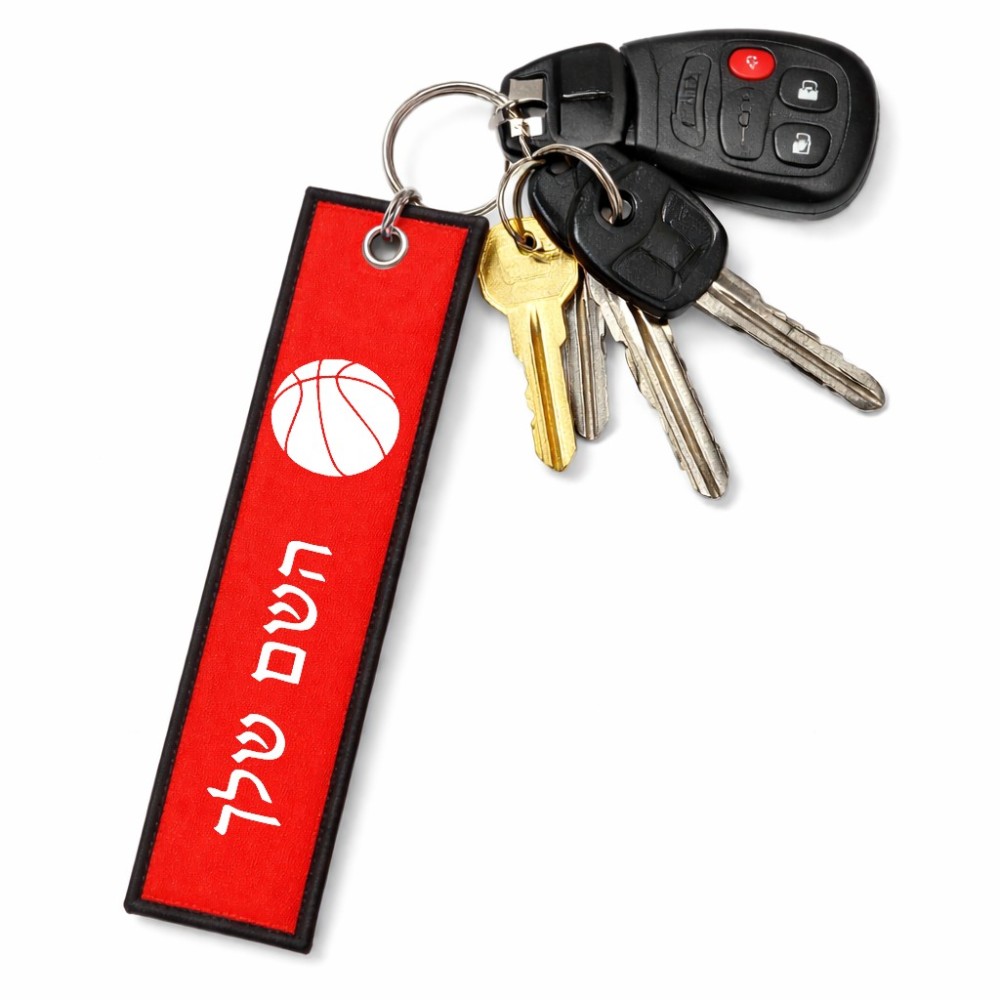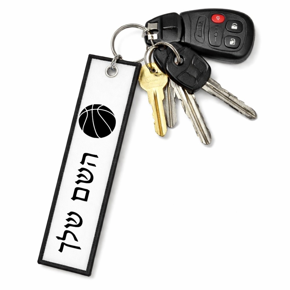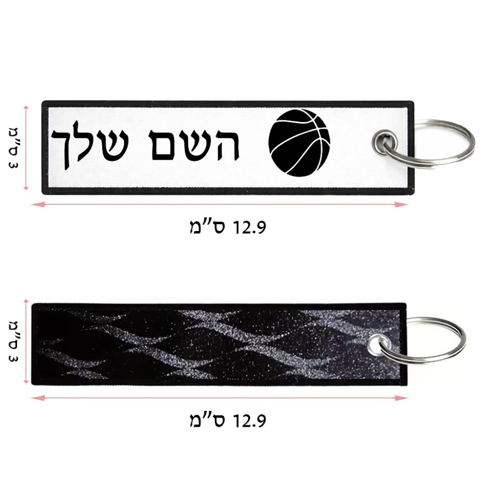 תווית סימון תיקים \ צרור מפתחות בעיצוב אישי עם השם שלך בעיצוב כדורסל גודל התווית 12.9 × 3 ס"מ. את השם המבוקש ניתן לציין בהזמנה, אם לא צויין אנחנו ניצור קשר לבירור.