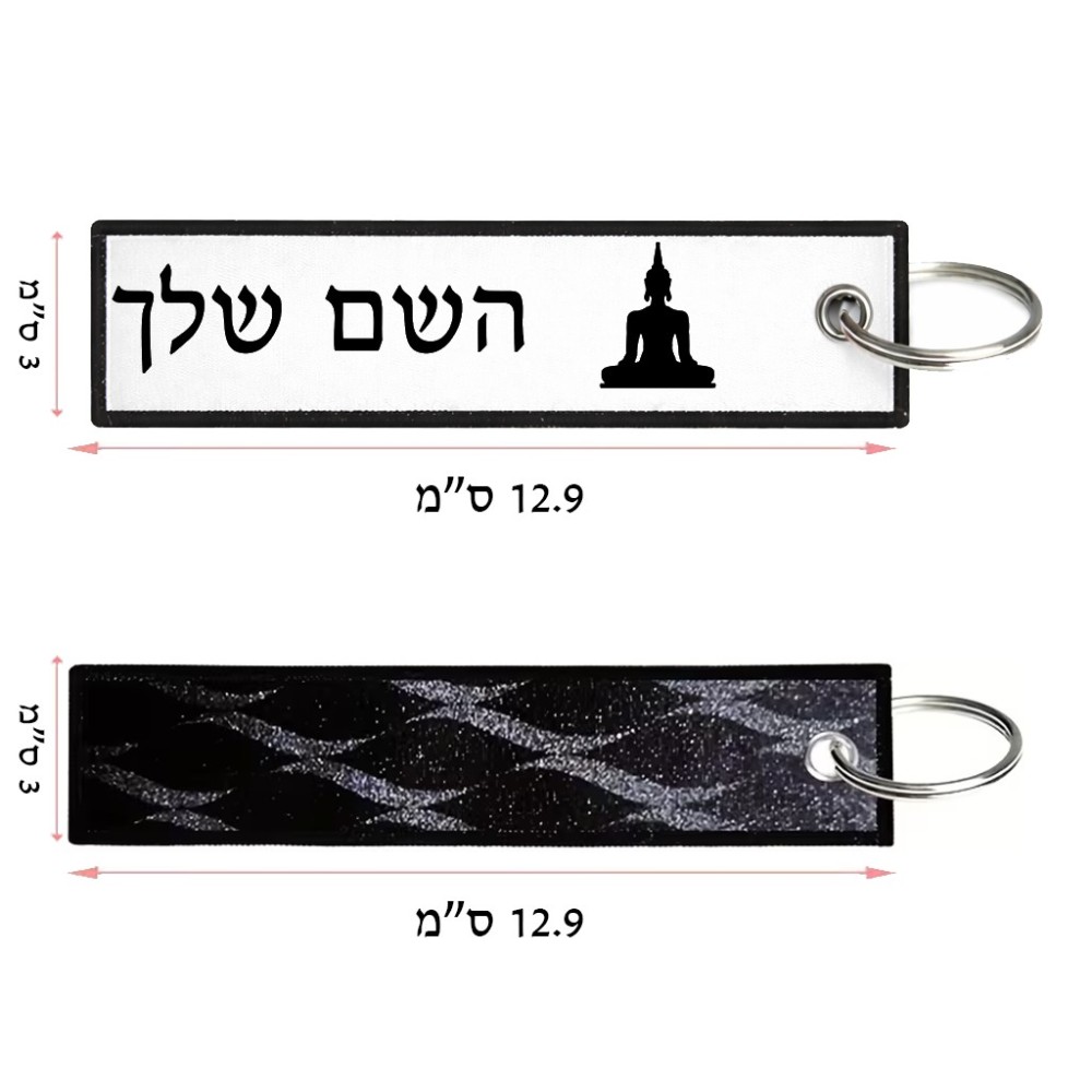 תווית סימון תיקים \ צרור מפתחות בעיצוב אישי עם השם שלך בעיצוב בודה גודל התווית 12.9 × 3 ס"מ. את השם המבוקש ניתן לציין בהזמנה, אם לא צויין אנחנו ניצור קשר לבירור.