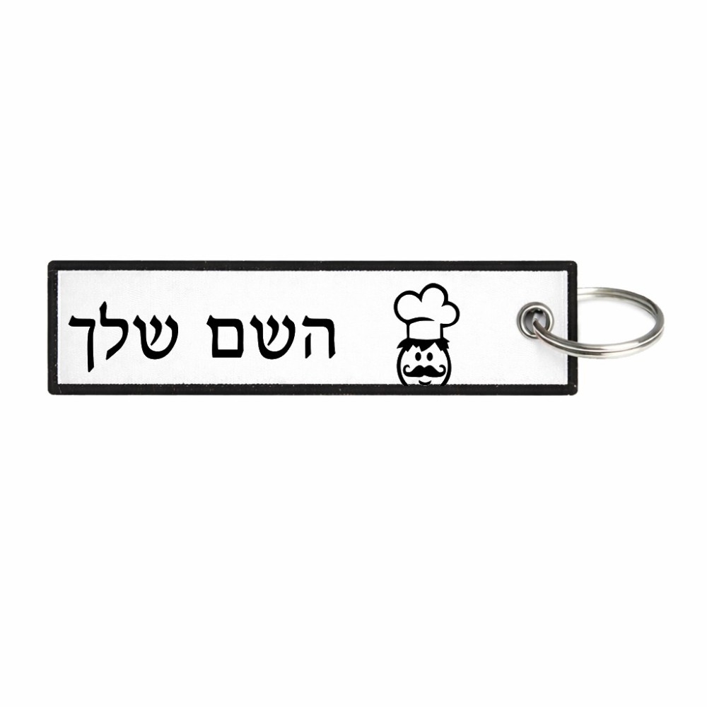 תווית סימון תיקים \ צרור מפתחות בעיצוב אישי עם השם שלך בעיצוב שף גודל התווית 12.9 × 3 ס"מ. את השם המבוקש ניתן לציין בהזמנה, אם לא צויין אנחנו ניצור קשר לבירור.