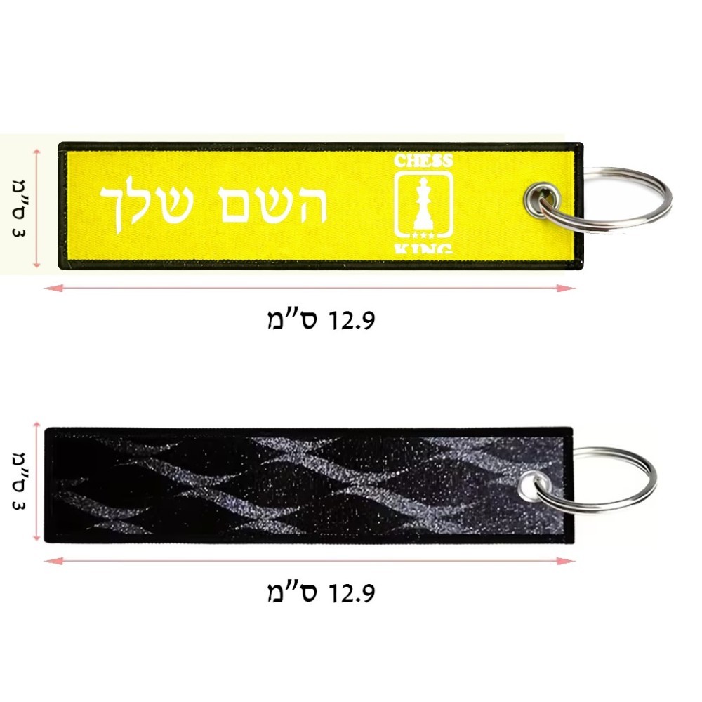 תווית סימון תיקים \ צרור מפתחות בעיצוב אישי עם השם שלך בעיצוב שחמט גודל התווית 12.9 × 3 ס"מ. את השם המבוקש ניתן לציין בהזמנה, אם לא צויין אנחנו ניצור קשר לבירור.
