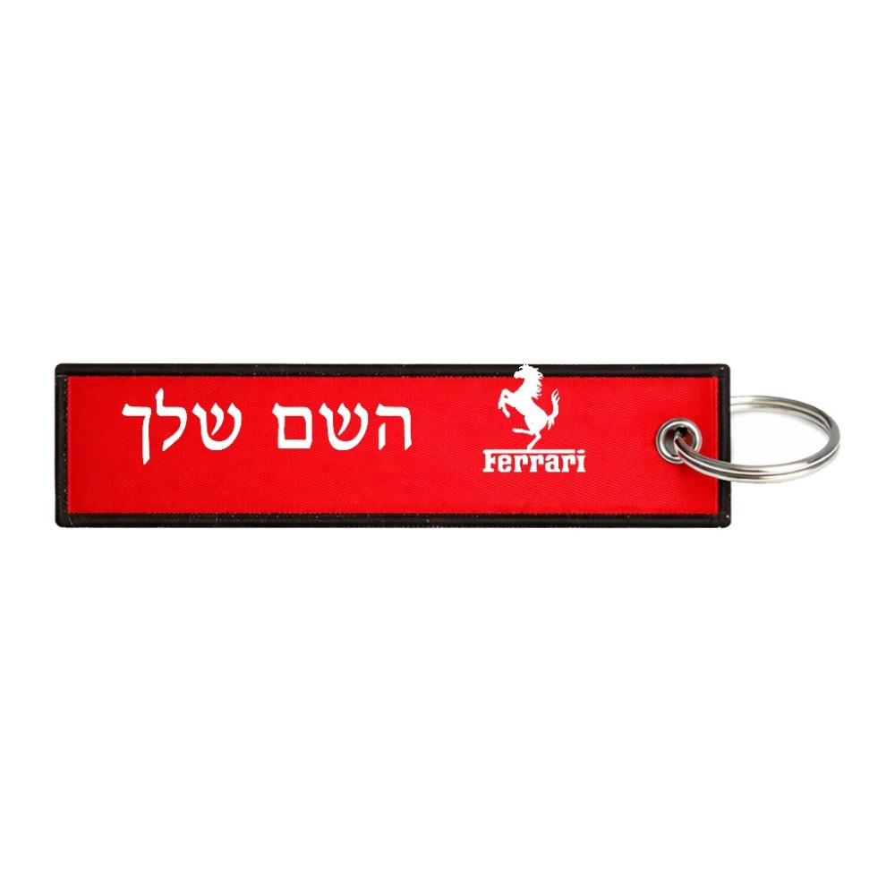 תווית סימון תיקים \ צרור מפתחות בעיצוב אישי עם השם שלך בעיצוב פרארי גודל התווית 12.9 × 3 ס"מ. את השם המבוקש ניתן לציין בהזמנה, אם לא צויין אנחנו ניצור קשר לבירור.