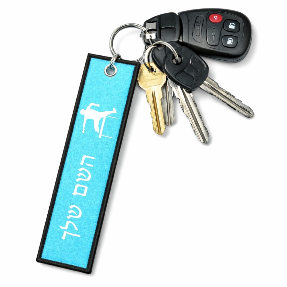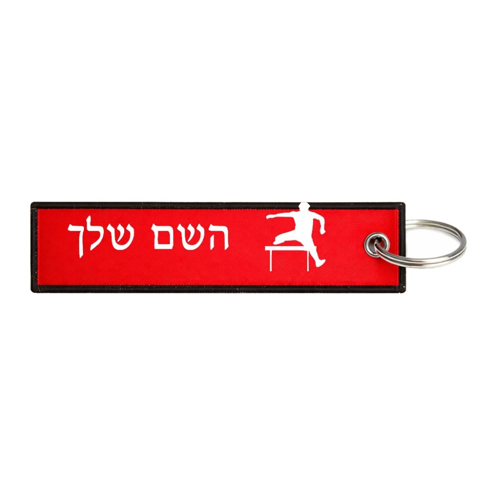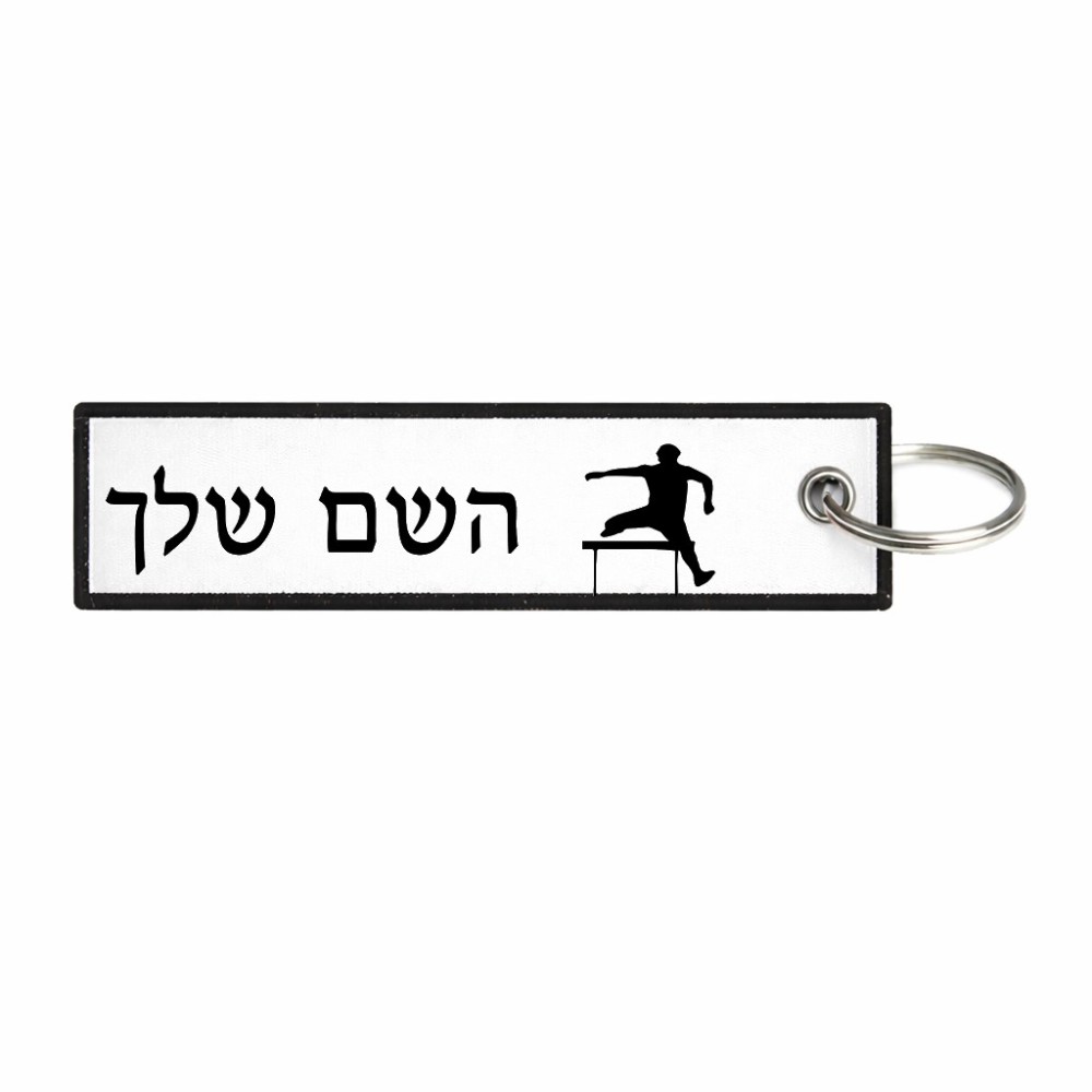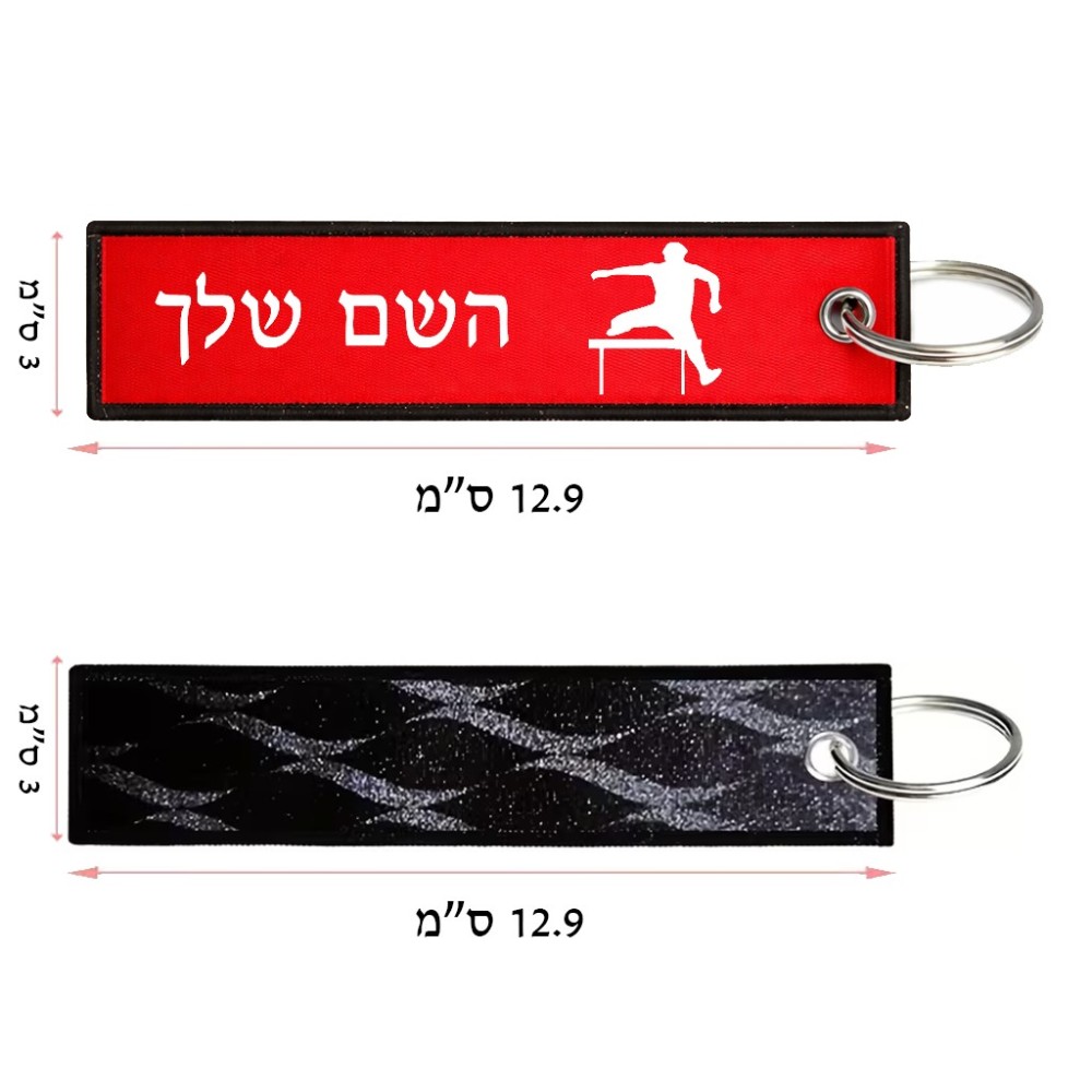 תווית סימון תיקים \ צרור מפתחות בעיצוב אישי עם השם שלך בעיצוב קפיצת משוכות גודל התווית 12.9 × 3 ס"מ. את השם המבוקש ניתן לציין בהזמנה, אם לא צויין אנחנו ניצור קשר לבירור.