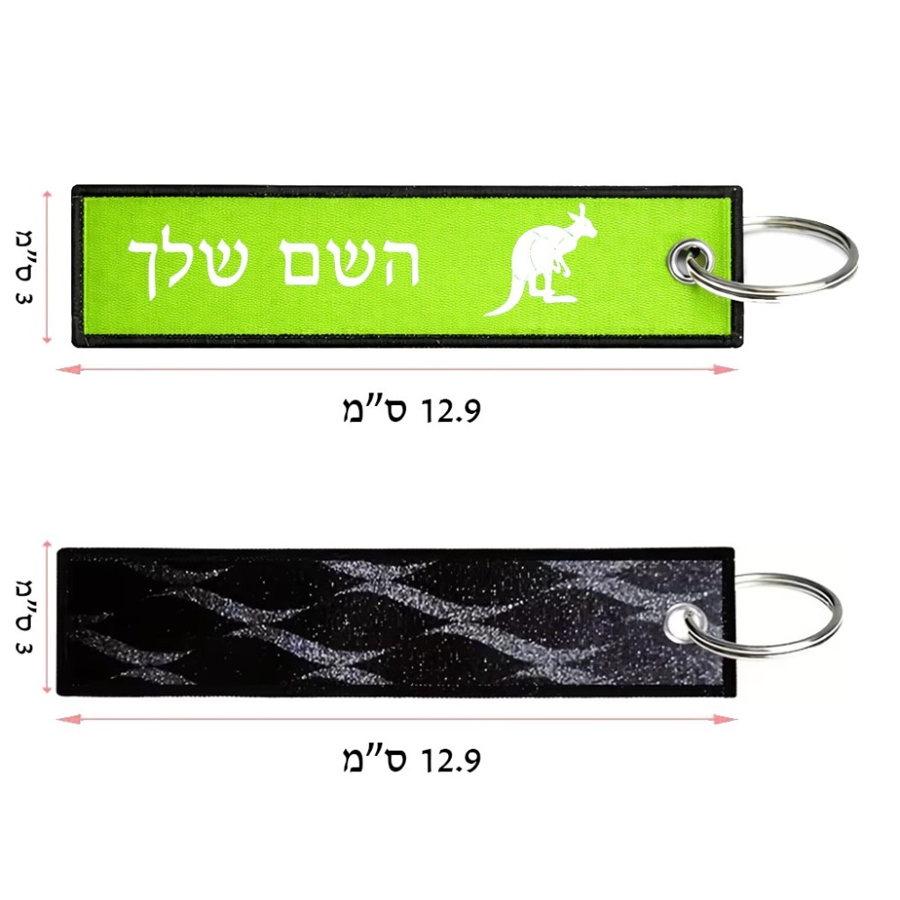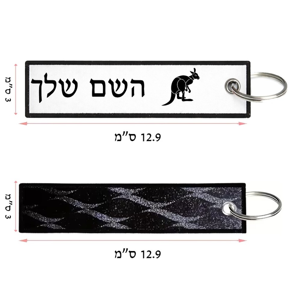 תווית סימון תיקים \ צרור מפתחות בעיצוב אישי עם השם שלך בעיצוב קנגורו גודל התווית 12.9 × 3 ס"מ. את השם המבוקש ניתן לציין בהזמנה, אם לא צויין אנחנו ניצור קשר לבירור.