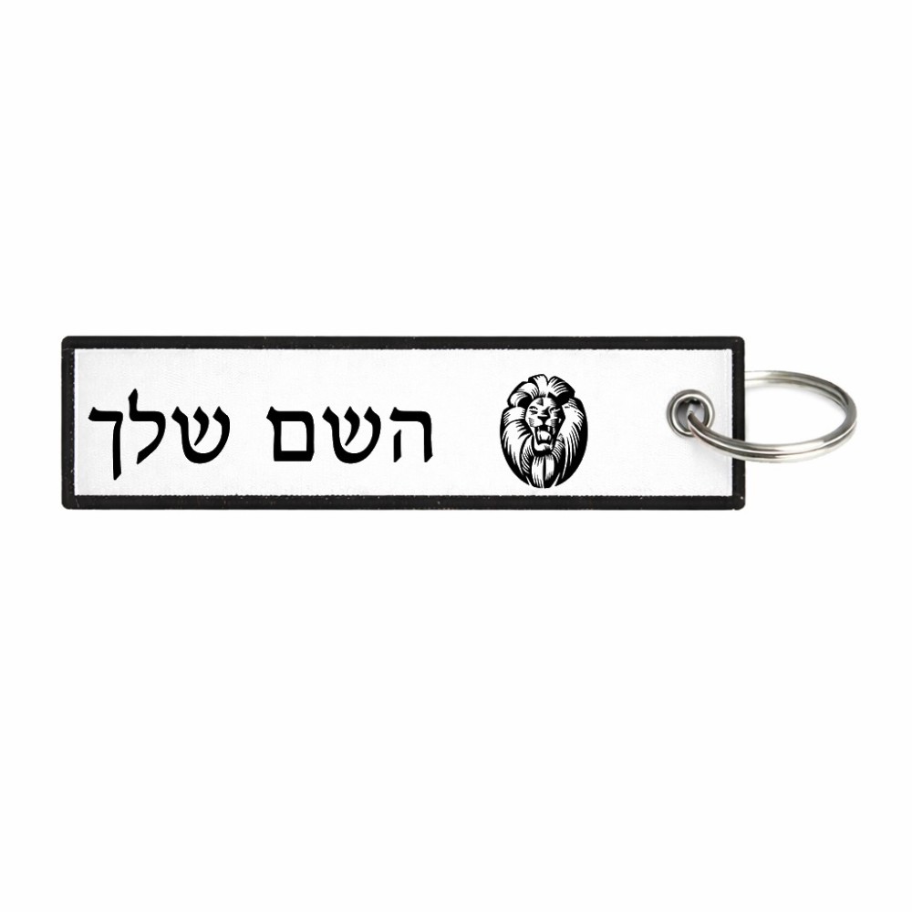 תווית סימון תיקים \ צרור מפתחות בעיצוב אישי עם השם שלך בעיצוב פני אריה גודל התווית 12.9 × 3 ס"מ. את השם המבוקש ניתן לציין בהזמנה, אם לא צויין אנחנו ניצור קשר לבירור.