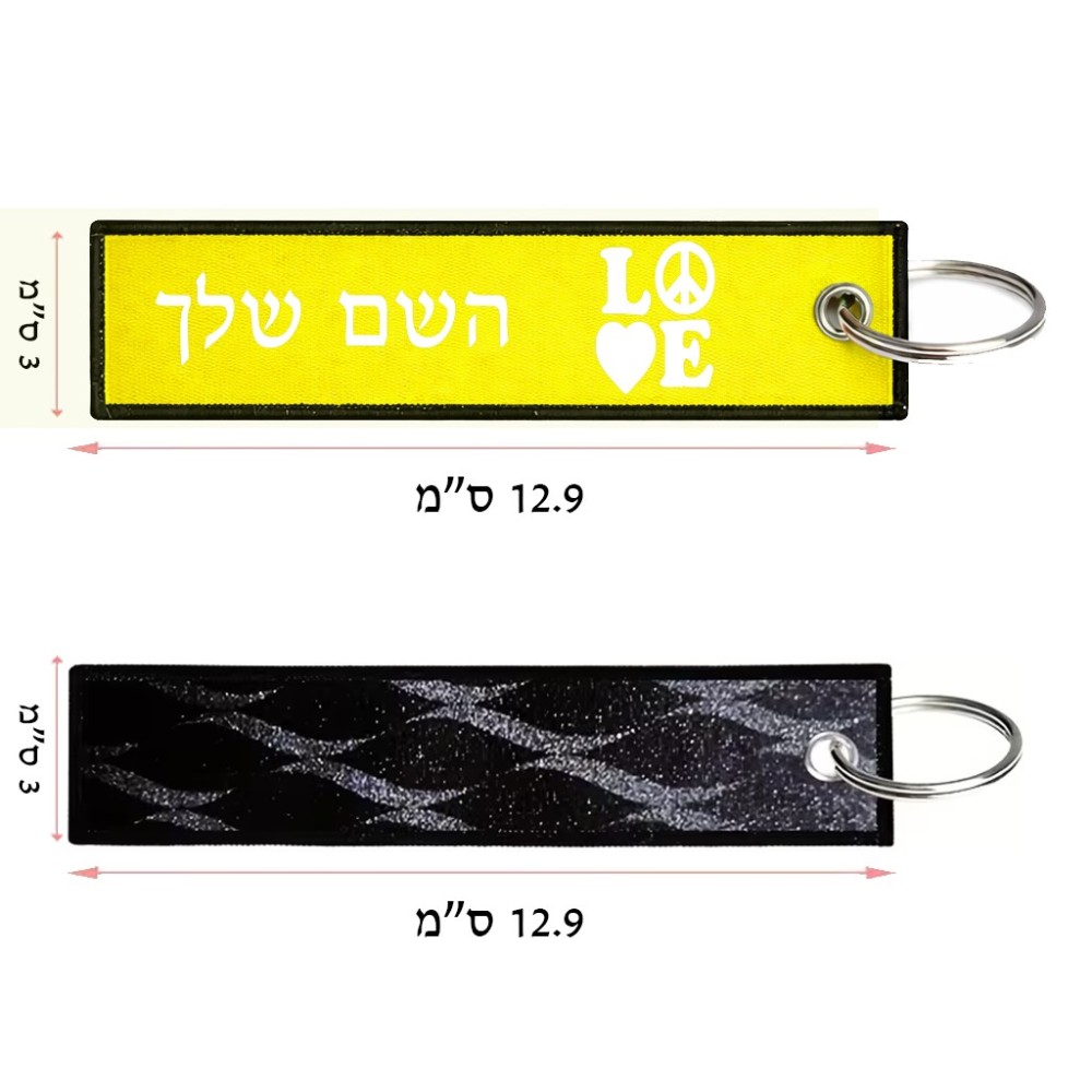 תווית סימון תיקים \ צרור מפתחות בעיצוב אישי עם השם שלך בעיצוב אהבה גודל התווית 12.9 × 3 ס"מ. את השם המבוקש ניתן לציין בהזמנה, אם לא צויין אנחנו ניצור קשר לבירור.
