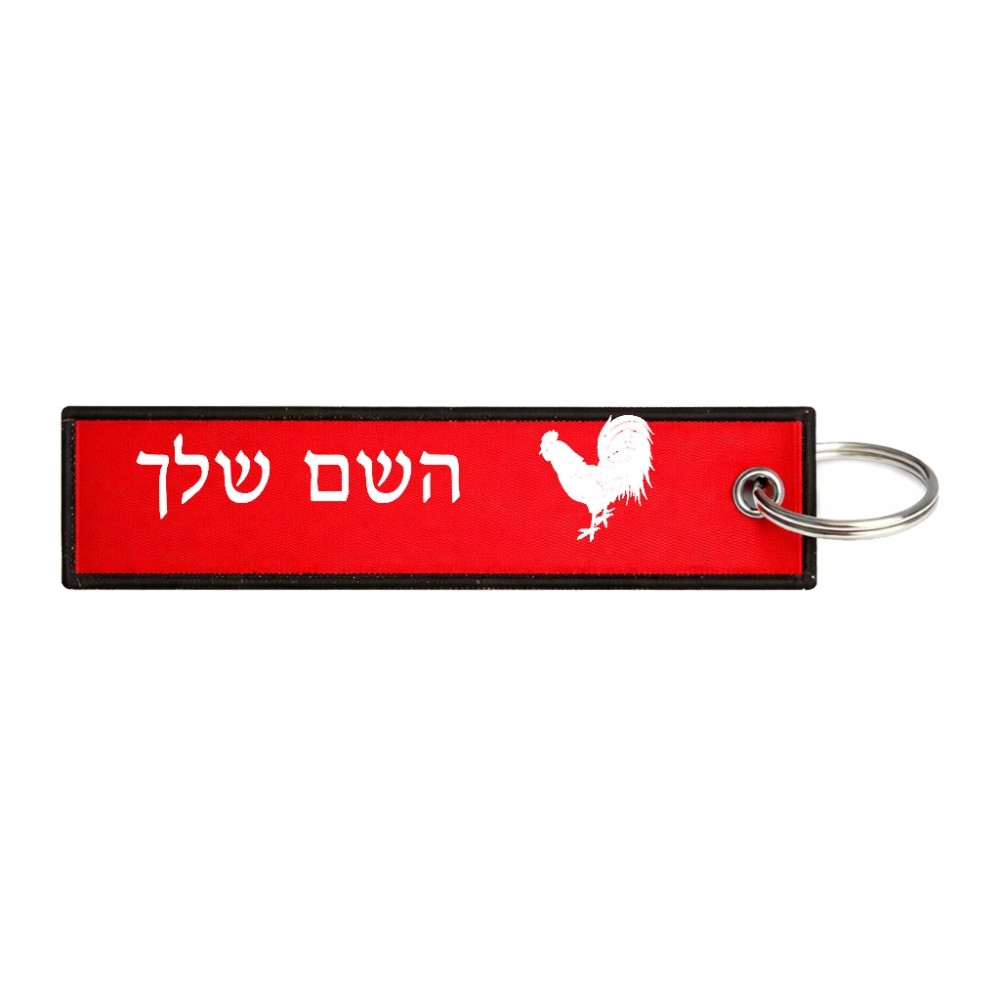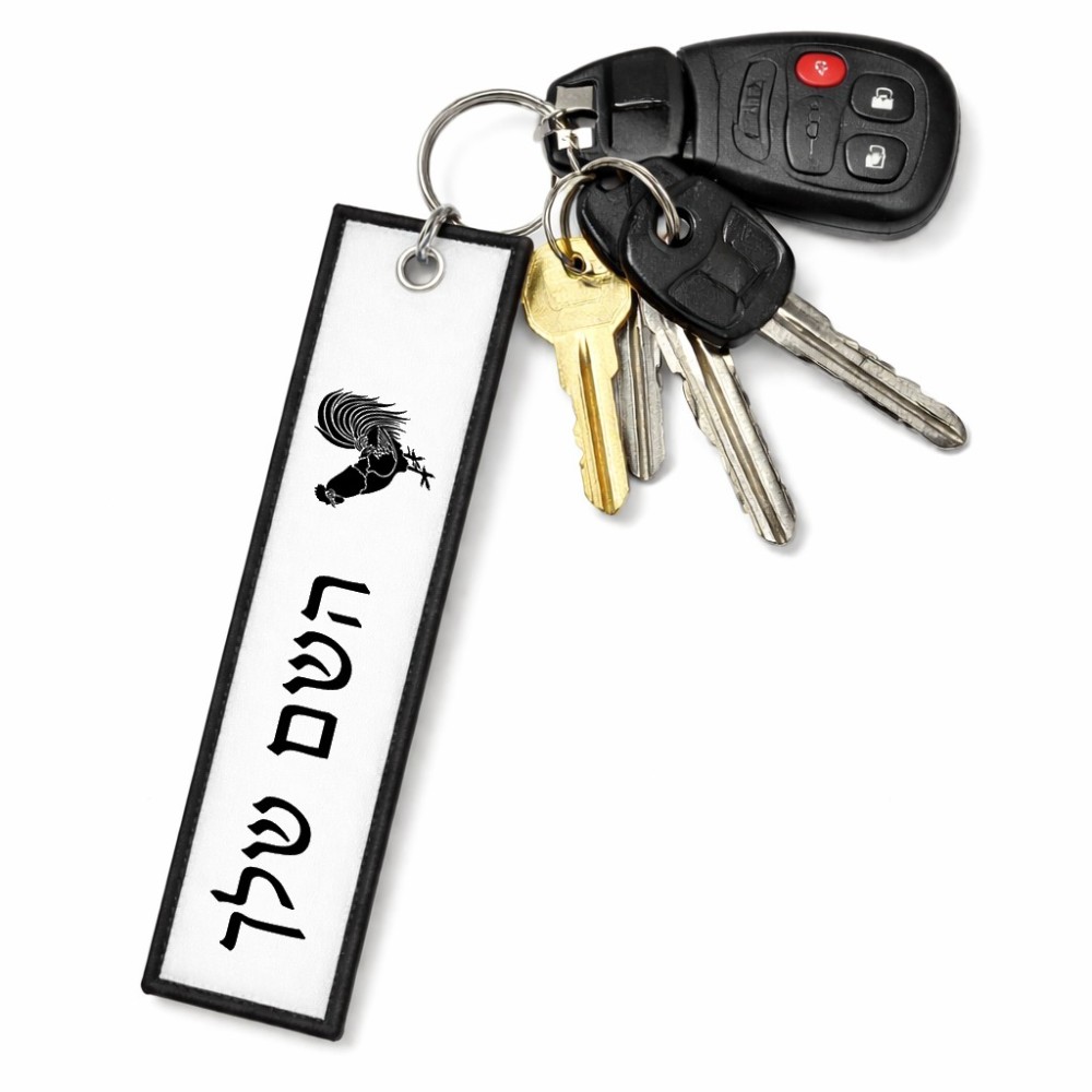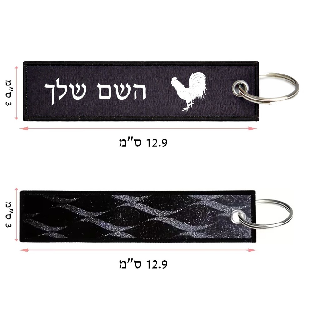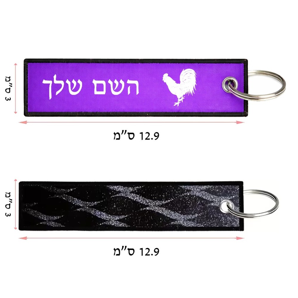 תווית סימון תיקים \ צרור מפתחות בעיצוב אישי עם השם שלך בעיצוב תרנגול גודל התווית 12.9 × 3 ס"מ. את השם המבוקש ניתן לציין בהזמנה, אם לא צויין אנחנו ניצור קשר לבירור.