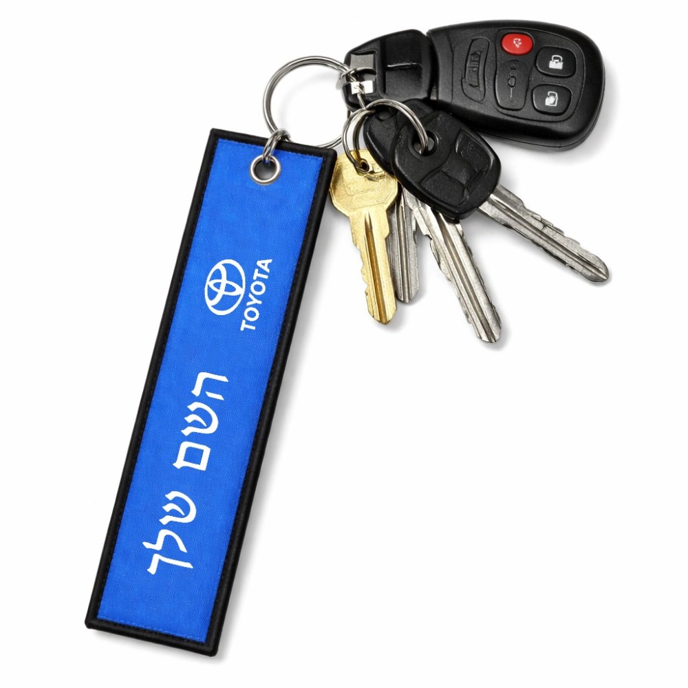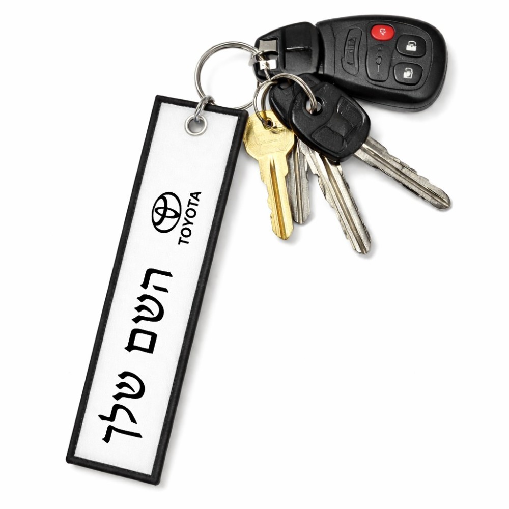 תווית סימון תיקים \ צרור מפתחות בעיצוב אישי עם השם שלך בעיצוב טויוטה גודל התווית 12.9 × 3 ס"מ. את השם המבוקש ניתן לציין בהזמנה, אם לא צויין אנחנו ניצור קשר לבירור.