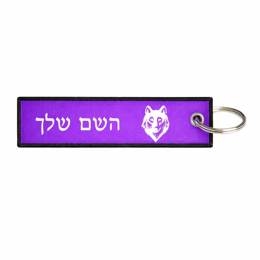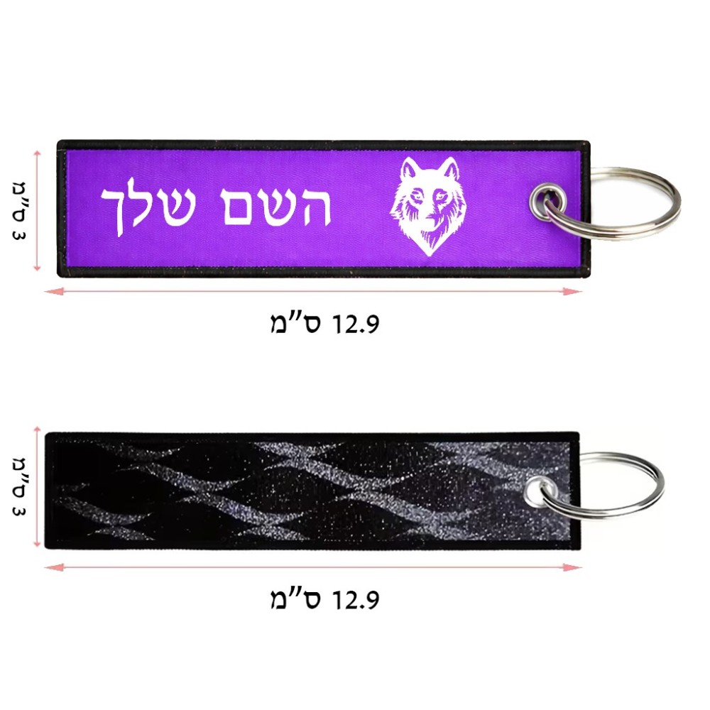 תווית סימון תיקים \ צרור מפתחות בעיצוב אישי עם השם שלך בעיצוב זאב גודל התווית 12.9 × 3 ס"מ. את השם המבוקש ניתן לציין בהזמנה, אם לא צויין אנחנו ניצור קשר לבירור.