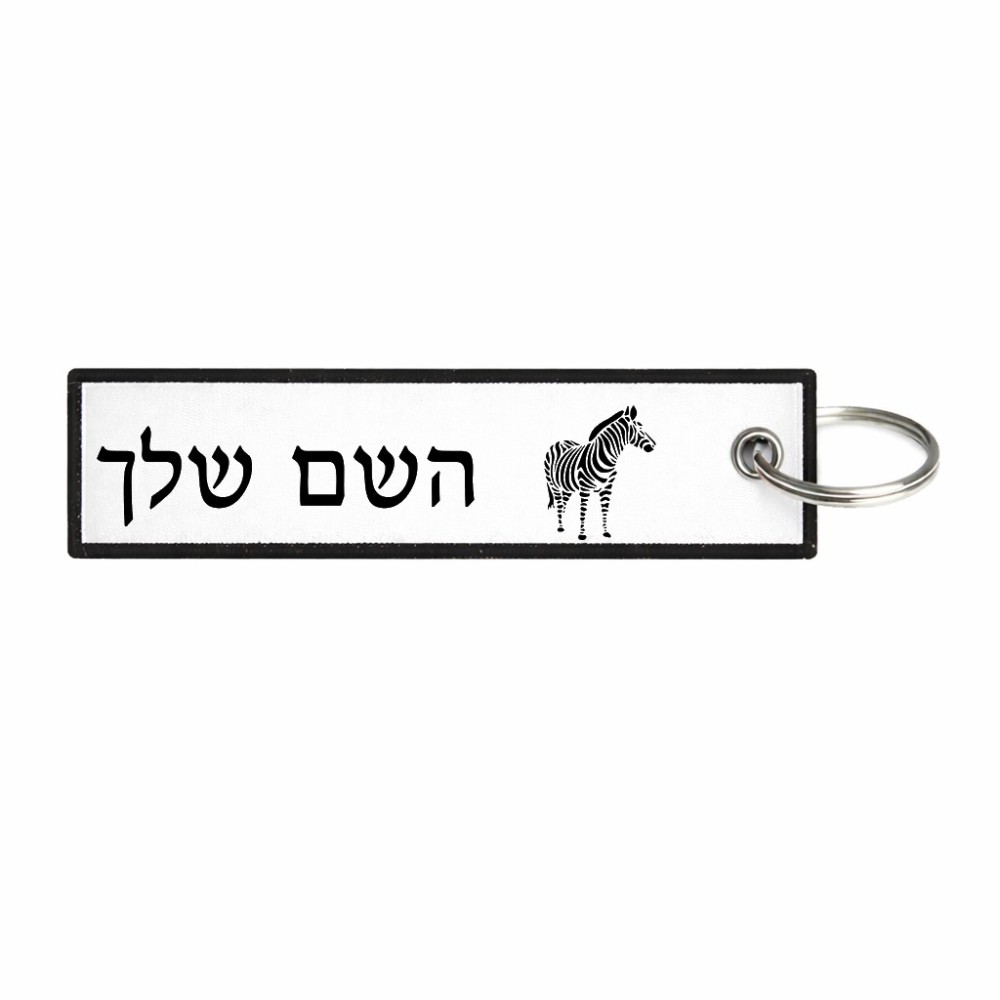 תווית סימון תיקים \ צרור מפתחות בעיצוב אישי עם השם שלך בעיצוב זברה גודל התווית 12.9 × 3 ס"מ. את השם המבוקש ניתן לציין בהזמנה, אם לא צויין אנחנו ניצור קשר לבירור.