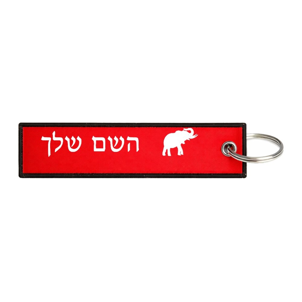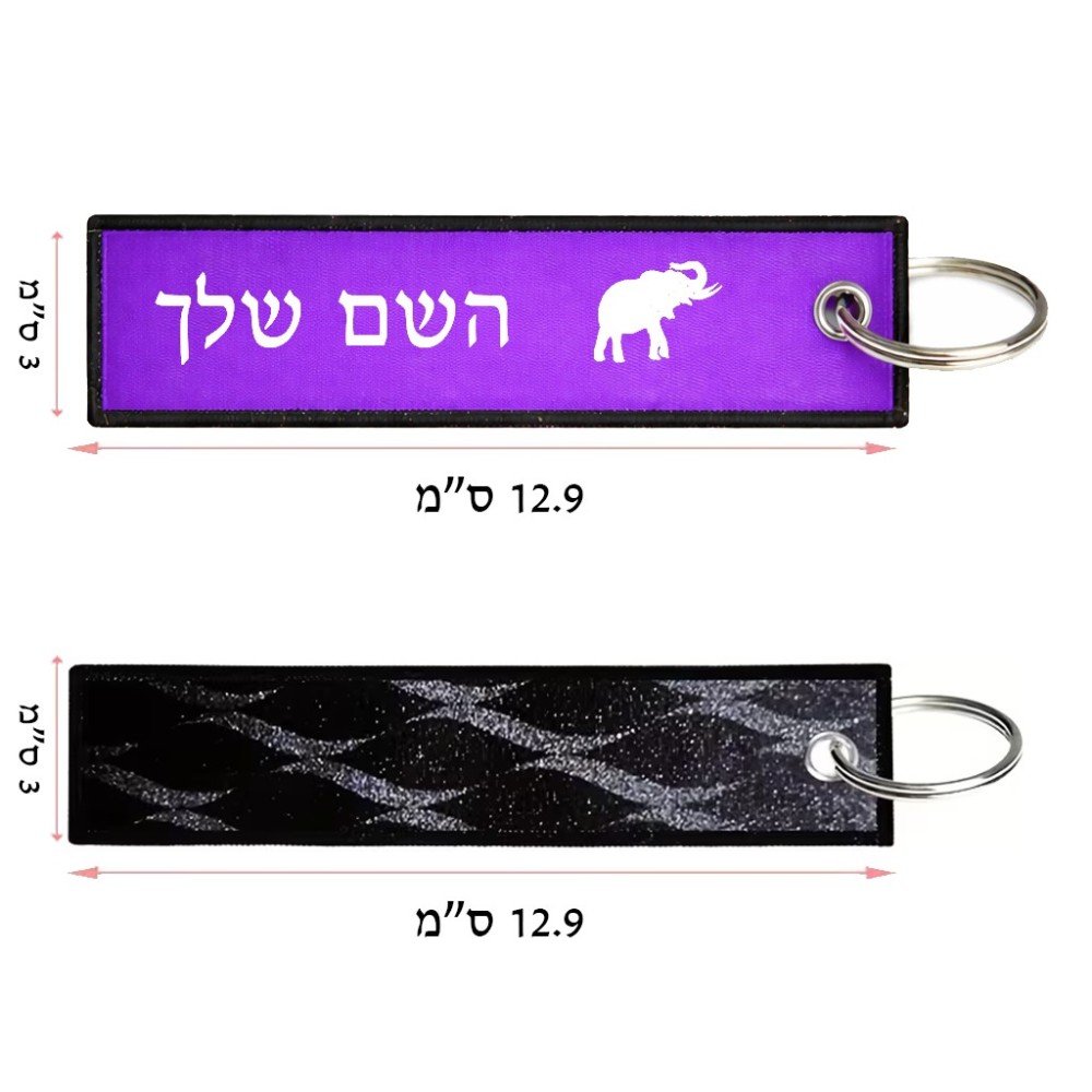 תווית סימון תיקים \ צרור מפתחות בעיצוב אישי עם השם שלך בעיצוב פיל גודל התווית 12.9 × 3 ס"מ. את השם המבוקש ניתן לציין בהזמנה, אם לא צויין אנחנו ניצור קשר לבירור.