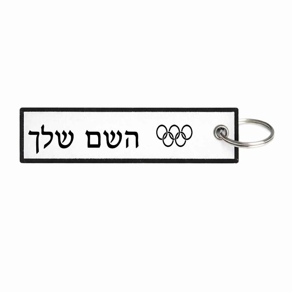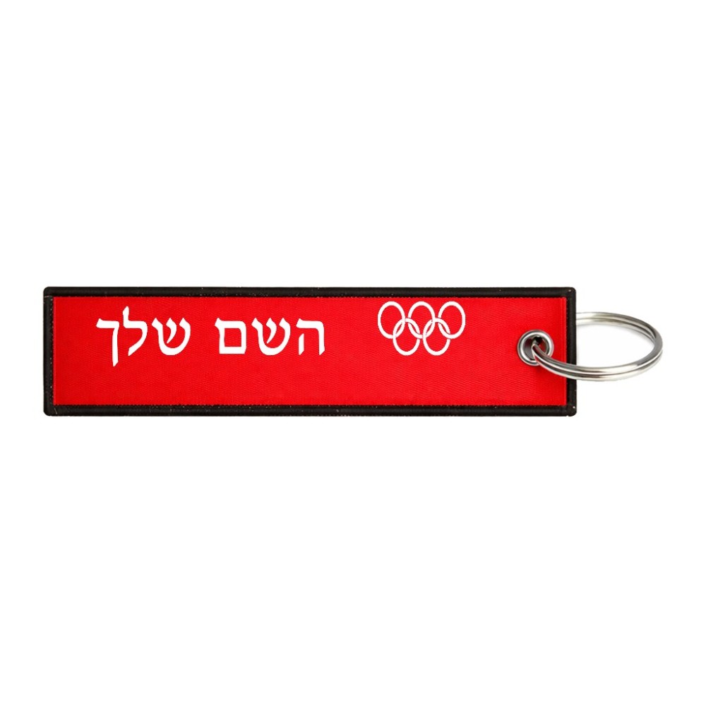 תווית סימון תיקים \ צרור מפתחות בעיצוב אישי עם השם שלך בעיצוב אולימפי גודל התווית 12.9 × 3 ס"מ. את השם המבוקש ניתן לציין בהזמנה, אם לא צויין אנחנו ניצור קשר לבירור.