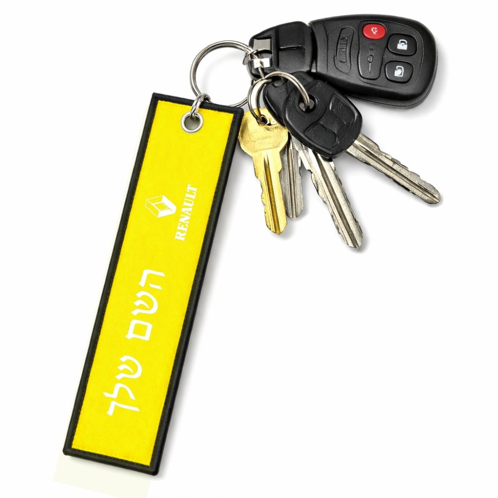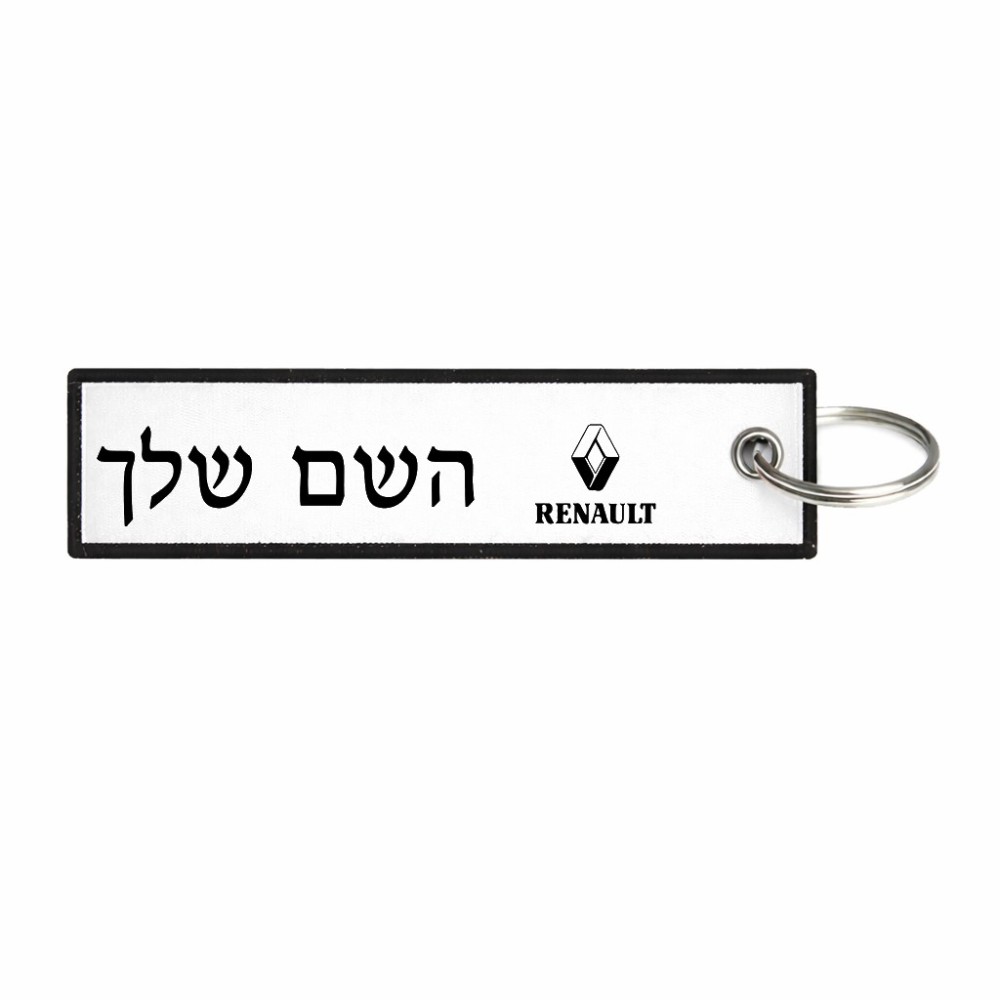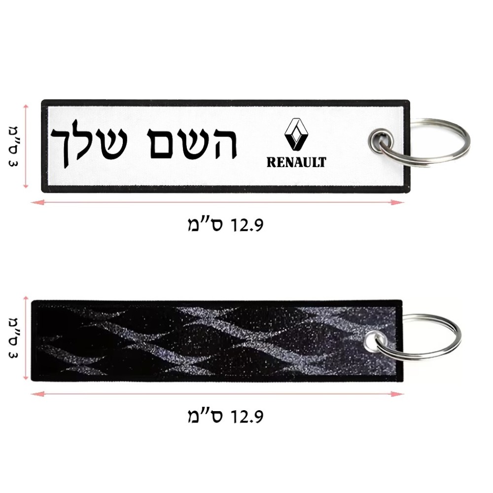 תווית סימון תיקים \ צרור מפתחות בעיצוב אישי עם השם שלך בעיצוב רנו גודל התווית 12.9 × 3 ס"מ. את השם המבוקש ניתן לציין בהזמנה, אם לא צויין אנחנו ניצור קשר לבירור.