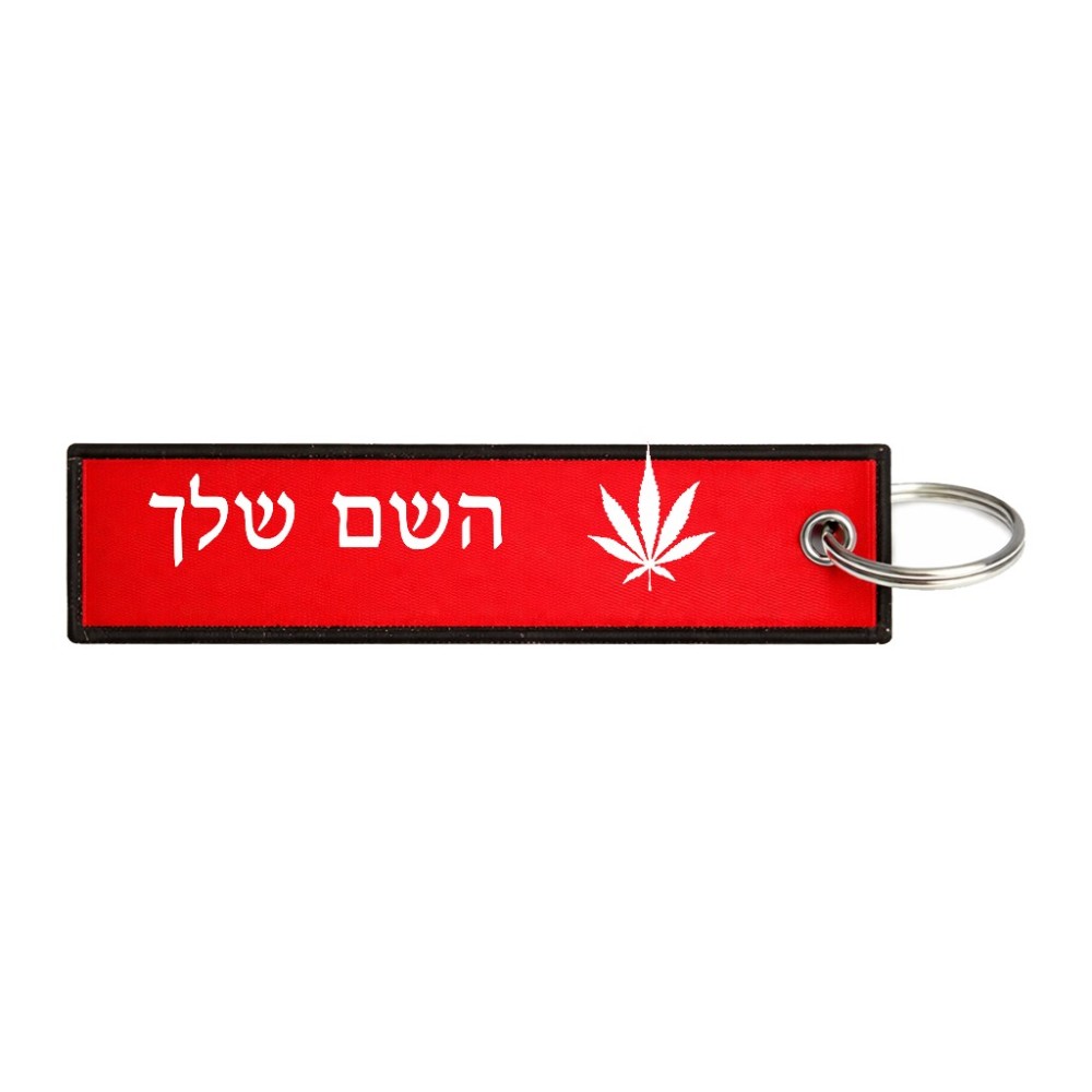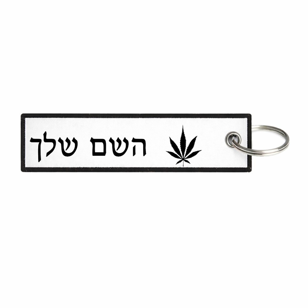 תווית סימון תיקים \ צרור מפתחות בעיצוב אישי עם השם שלך בעיצוב עלה מריחואנה - גראס גודל התווית 12.9 × 3 ס"מ. את השם המבוקש ניתן לציין בהזמנה, אם לא צויין אנחנו ניצור קשר לבירור.
