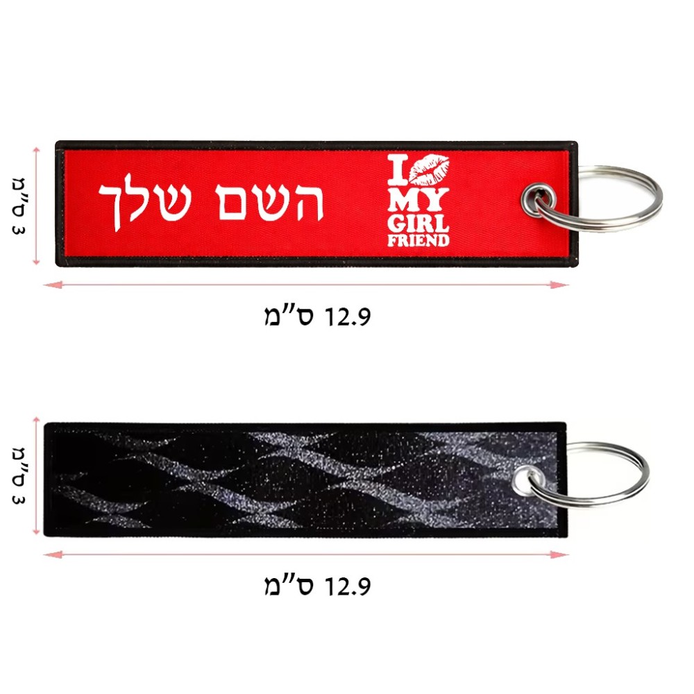 תווית סימון תיקים \ צרור מפתחות בעיצוב אישי עם השם שלך בעיצוב לנשק את החברה שלי גודל התווית 12.9 × 3 ס"מ. את השם המבוקש ניתן לציין בהזמנה, אם לא צויין אנחנו ניצור קשר לבירור.