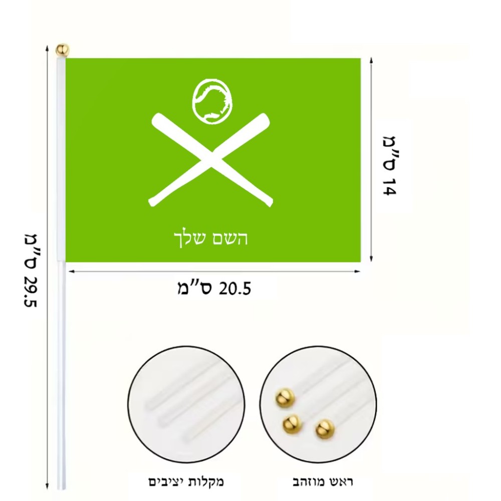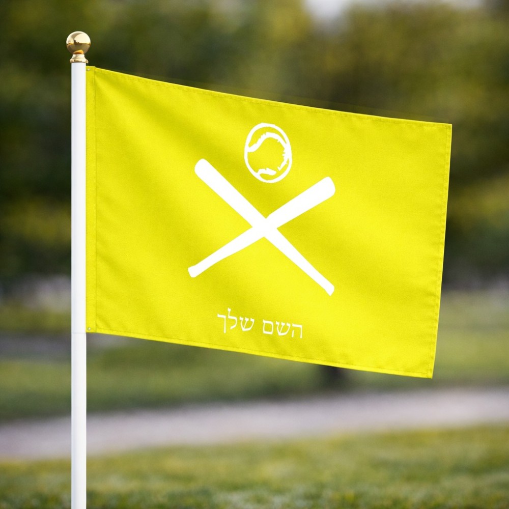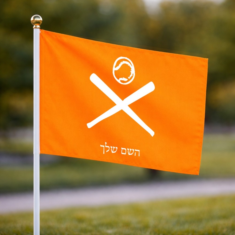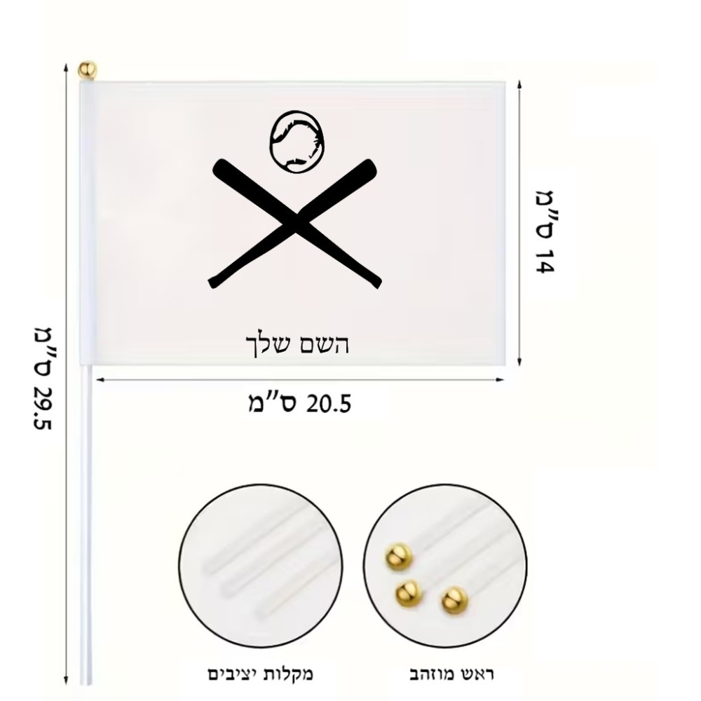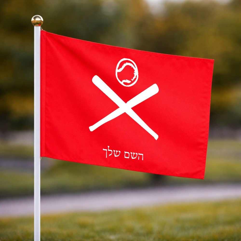 דיגלון בעיצוב אישי עם השם שלך בעיצוב כדור בסיס גודל הדיגלון 20.5 × 14 ס"מ, ההדפסה מתבצעת בשני צידי הדגל, את השם המבוקש ניתן לציין בהזמנה, אם לא צויין אנחנו ניצור קשר לבירור.
