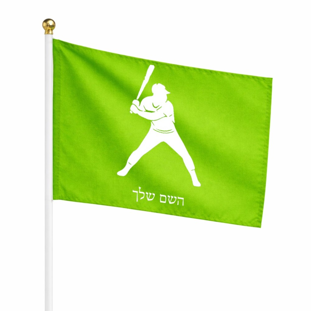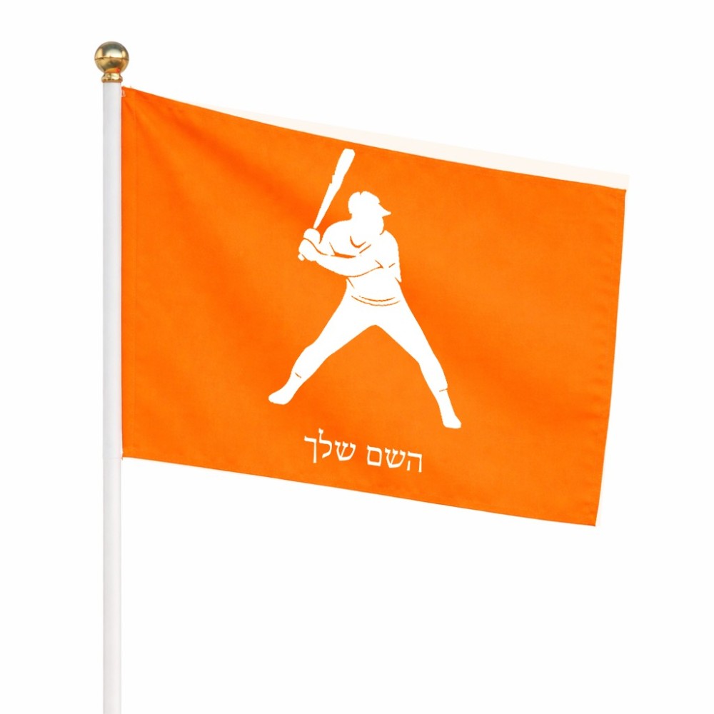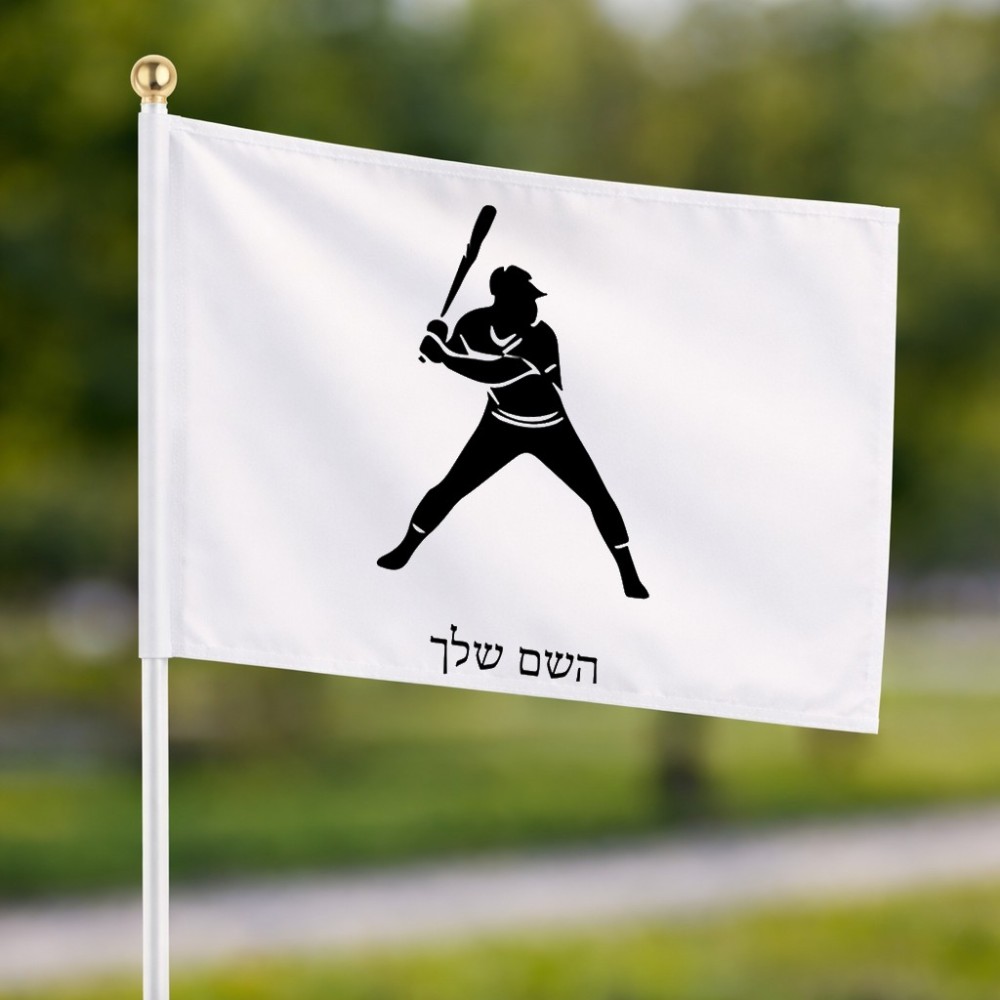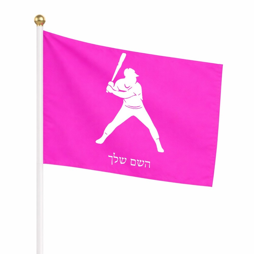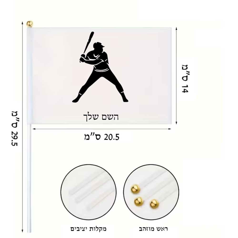 דיגלון בעיצוב אישי עם השם שלך בעיצוב שחקן בייסבול גודל הדיגלון 20.5 × 14 ס"מ, ההדפסה מתבצעת בשני צידי הדגל, את השם המבוקש ניתן לציין בהזמנה, אם לא צויין אנחנו ניצור קשר לבירור.