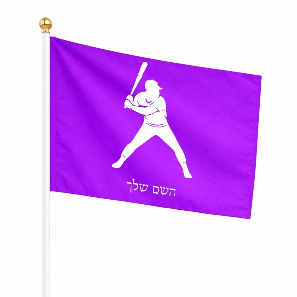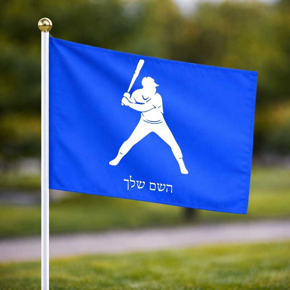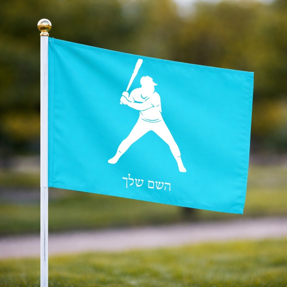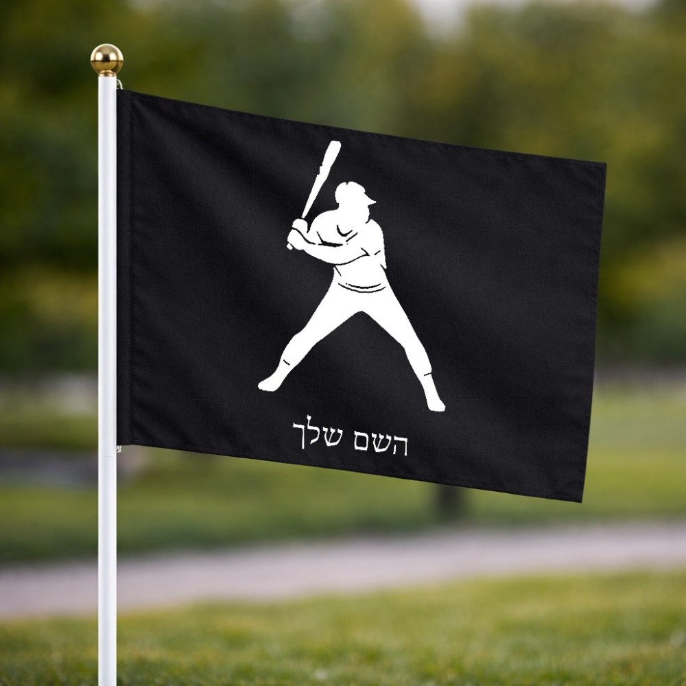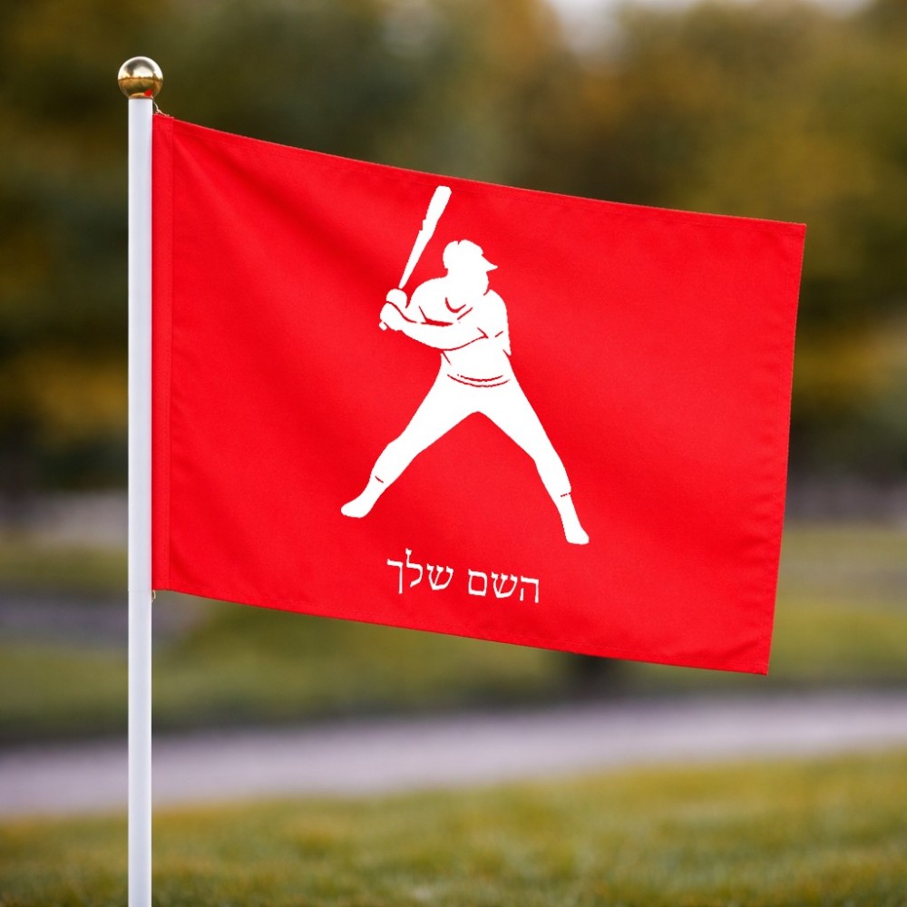 דיגלון בעיצוב אישי עם השם שלך בעיצוב שחקן בייסבול גודל הדיגלון 20.5 × 14 ס"מ, ההדפסה מתבצעת בשני צידי הדגל, את השם המבוקש ניתן לציין בהזמנה, אם לא צויין אנחנו ניצור קשר לבירור.