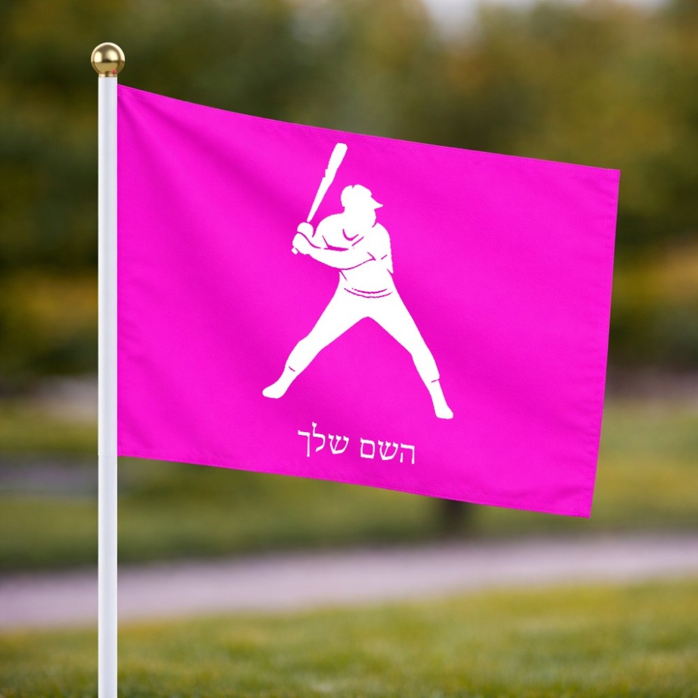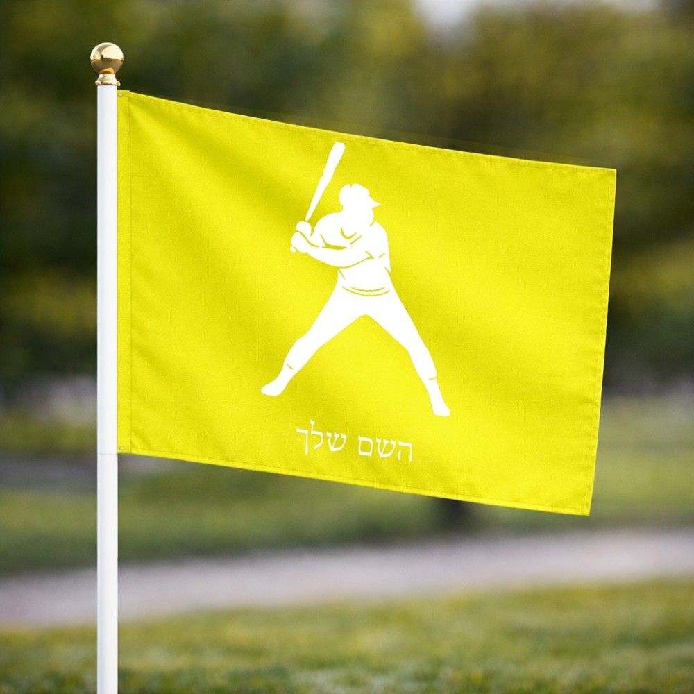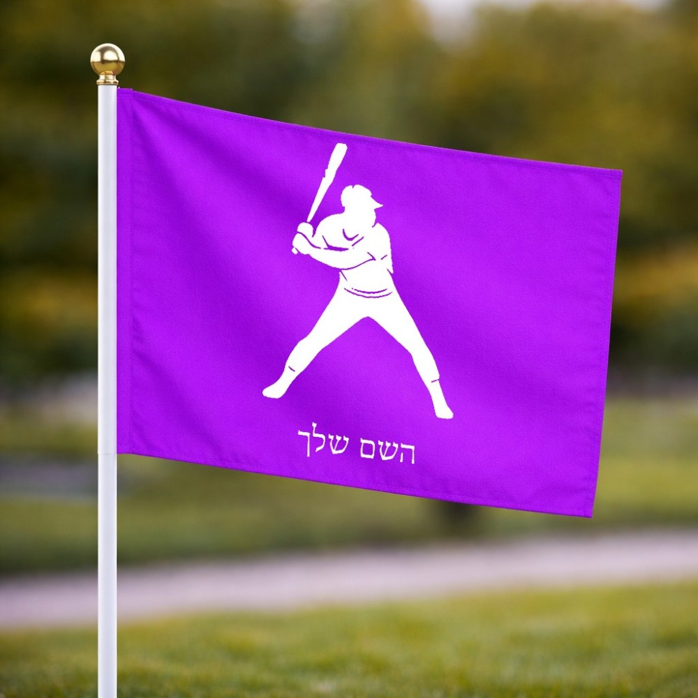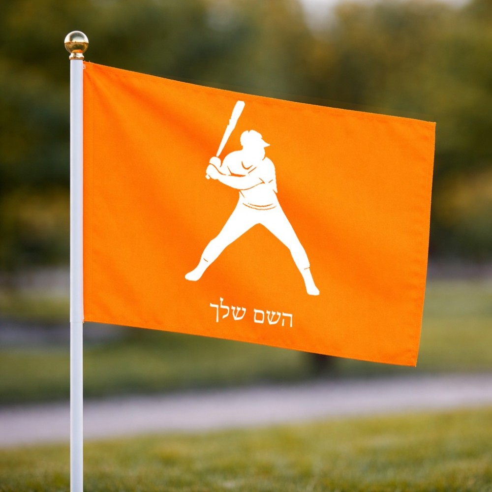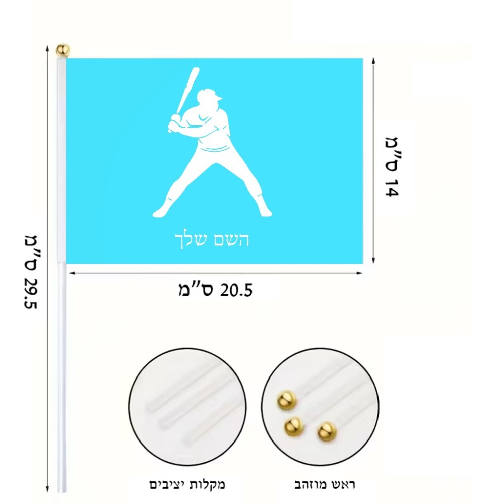 דיגלון בעיצוב אישי עם השם שלך בעיצוב שחקן בייסבול גודל הדיגלון 20.5 × 14 ס"מ, ההדפסה מתבצעת בשני צידי הדגל, את השם המבוקש ניתן לציין בהזמנה, אם לא צויין אנחנו ניצור קשר לבירור.