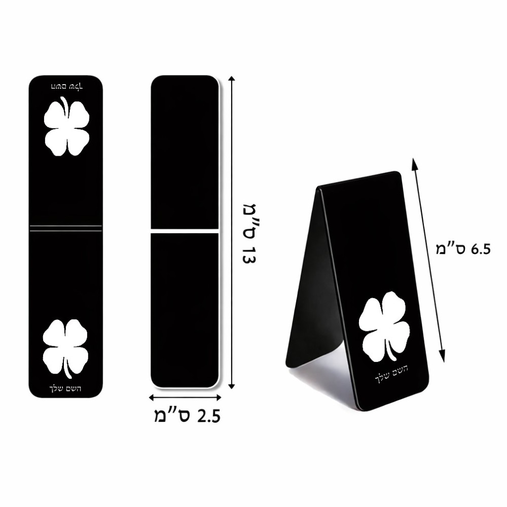סימני לספרים בעיצוב אישי עם השם שלך בעיצוב קלבר גדול הסמניה 13 × 2.5 ס"מ, הסמניה בעלת פס מגני לאחיזה יציבה יותר של הדפסים. את השם המבוקש ניתן לציין בהזמנה, אם לא צויין אנחנו ניצור קשר לבירור.