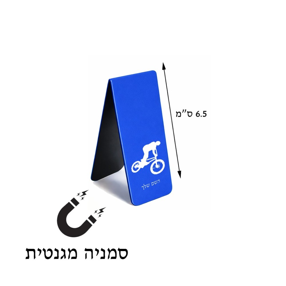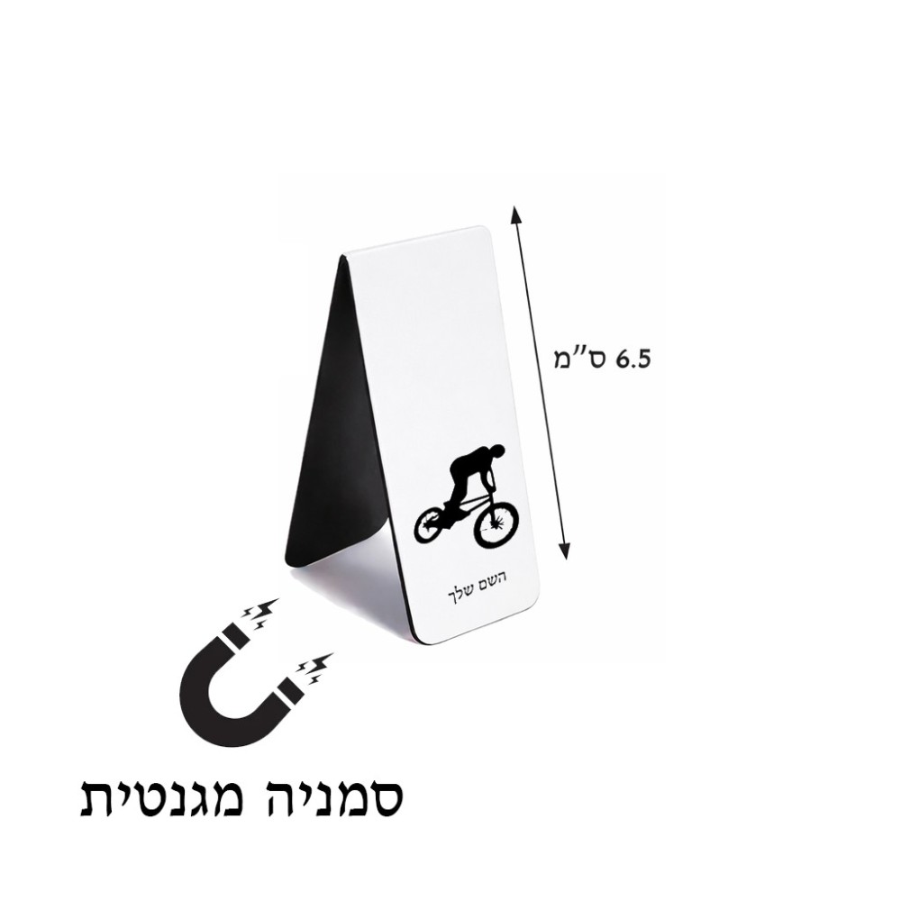 סימני לספרים בעיצוב אישי עם השם שלך בעיצוב רוכב אופניים גדול הסמניה 13 × 2.5 ס"מ, הסמניה בעלת פס מגני לאחיזה יציבה יותר של הדפסים. את השם המבוקש ניתן לציין בהזמנה, אם לא צויין אנחנו ניצור קשר לבירור.