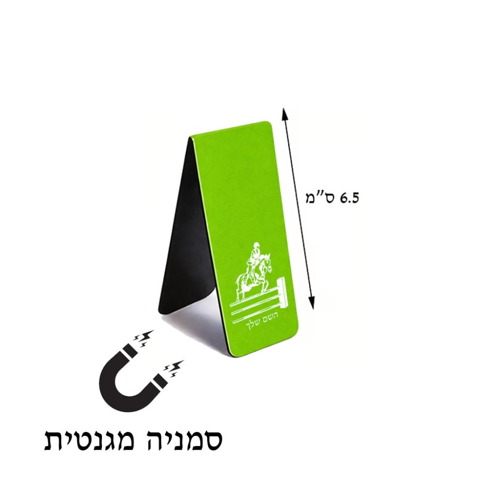 סימני לספרים בעיצוב אישי עם השם שלך בעיצוב רוכב סוסים גדול הסמניה 13 × 2.5 ס"מ, הסמניה בעלת פס מגני לאחיזה יציבה יותר של הדפסים. את השם המבוקש ניתן לציין בהזמנה, אם לא צויין אנחנו ניצור קשר לבירור.