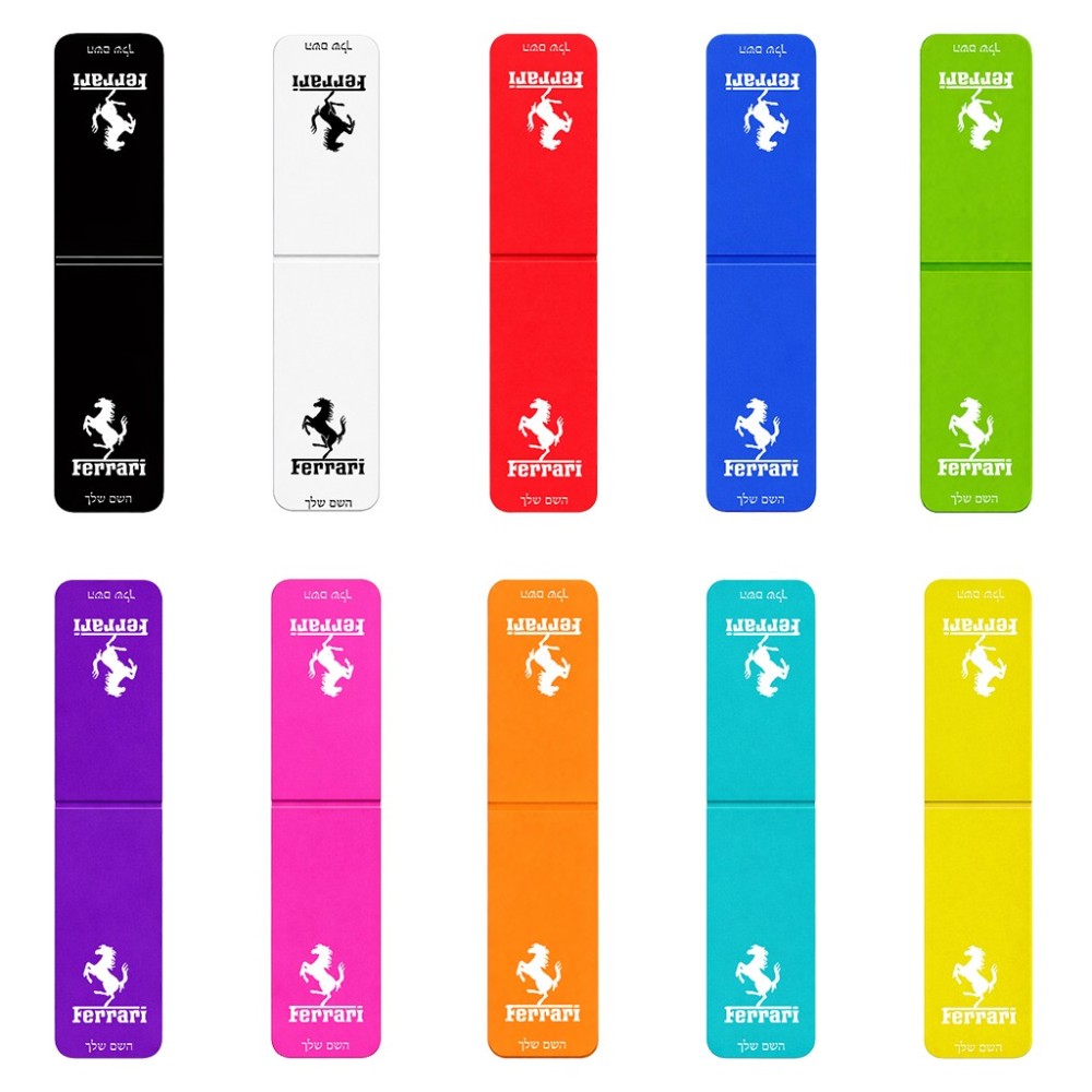 סימני לספרים בעיצוב אישי עם השם שלך בעיצוב פרארי גדול הסמניה 13 × 2.5 ס"מ, הסמניה בעלת פס מגני לאחיזה יציבה יותר של הדפסים. את השם המבוקש ניתן לציין בהזמנה, אם לא צויין אנחנו ניצור קשר לבירור.