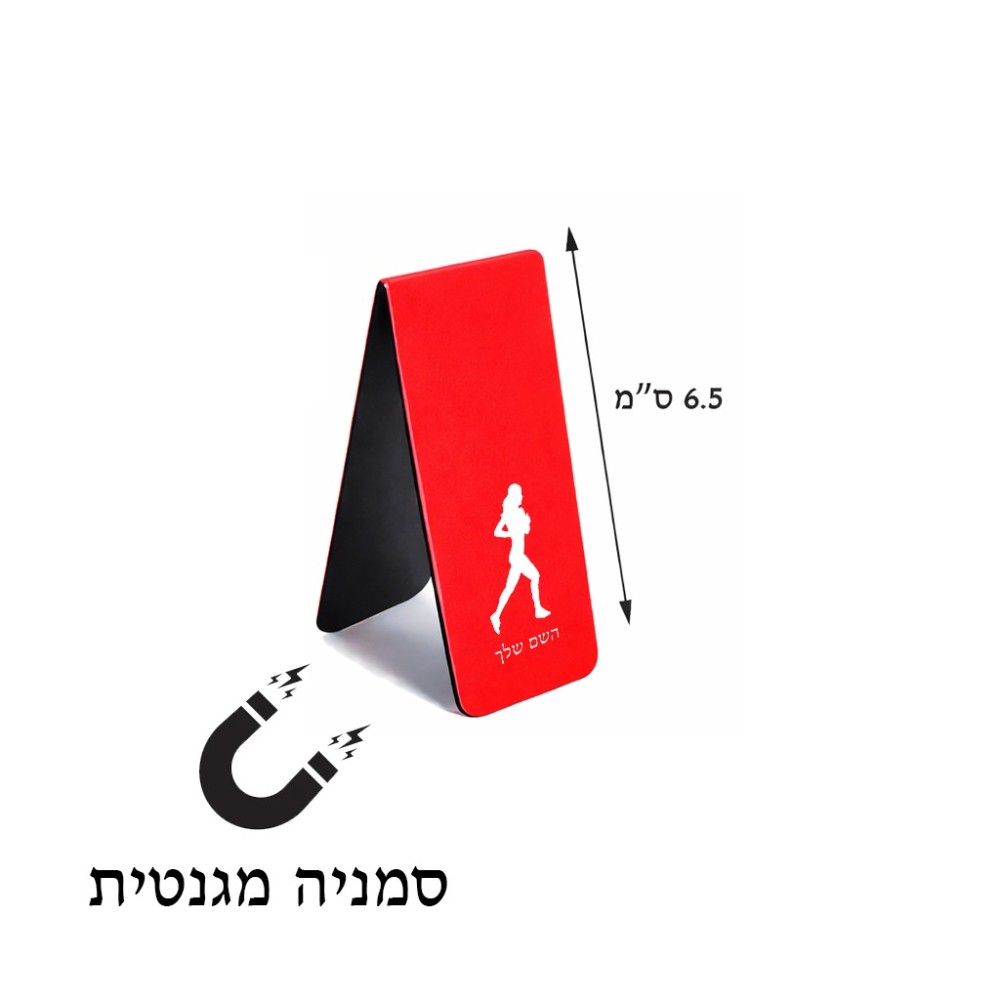 סימני לספרים בעיצוב אישי עם השם שלך בעיצוב רץ רץ אישה גדול הסמניה 13 × 2.5 ס"מ, הסמניה בעלת פס מגני לאחיזה יציבה יותר של הדפסים. את השם המבוקש ניתן לציין בהזמנה, אם לא צויין אנחנו ניצור קשר לבירור.