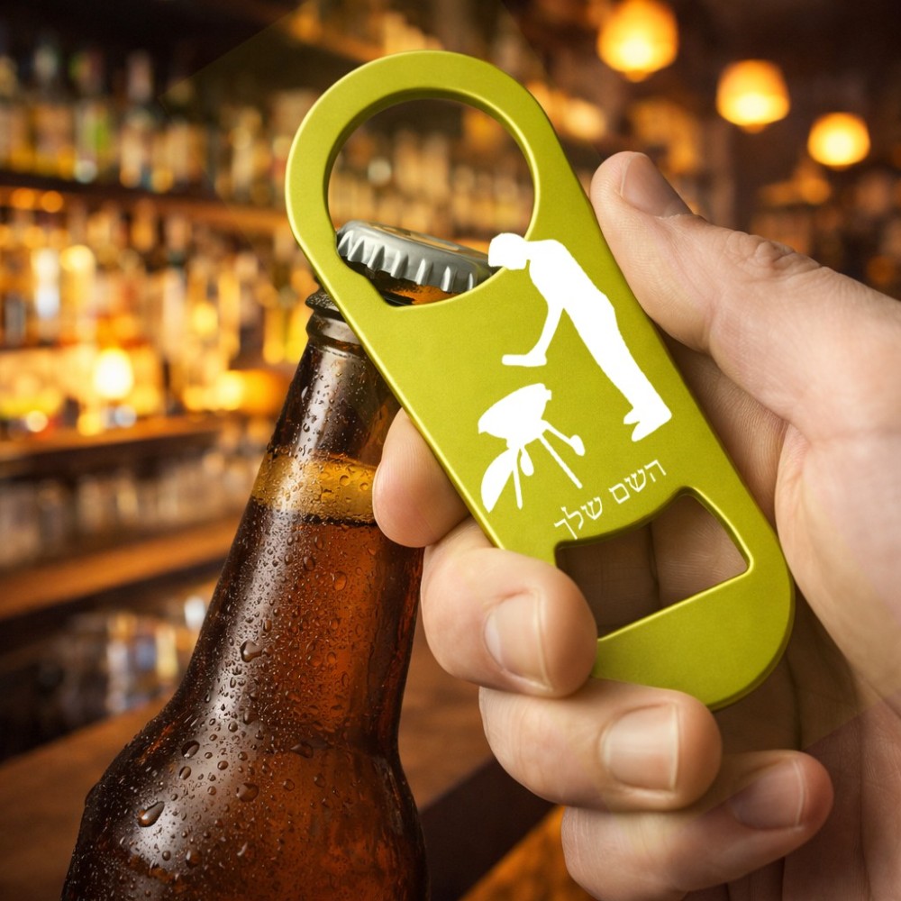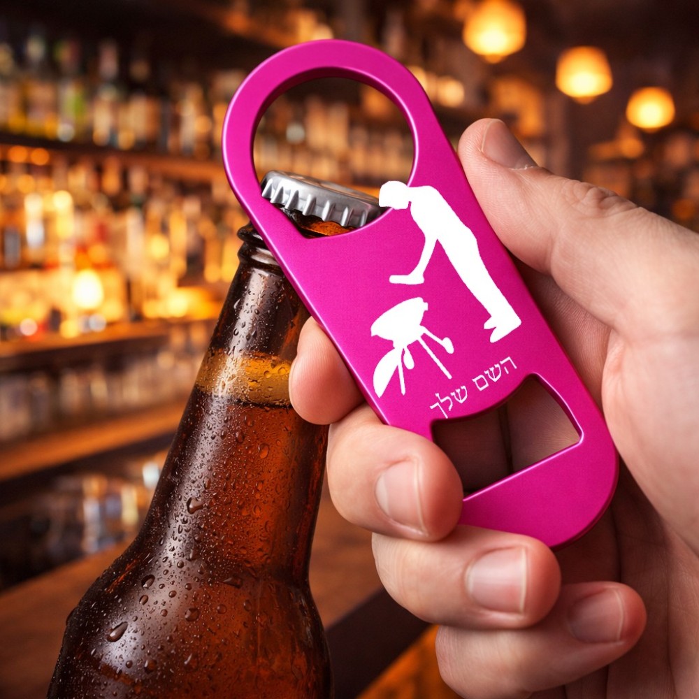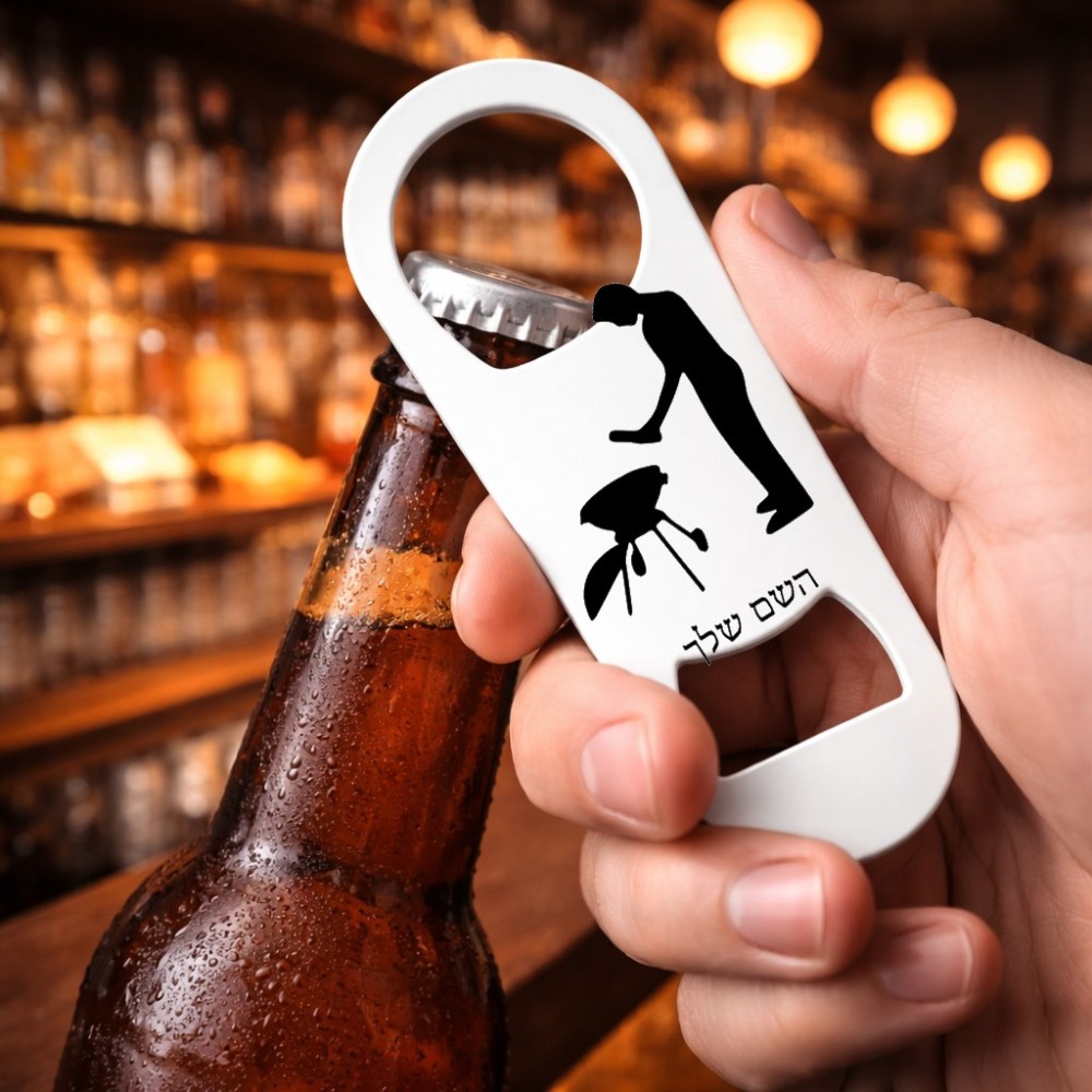 פותחן בקבוקים בעיצוב אישי עם השם שלך בעיצוב גריל ברביקיו. את השם המבוקש ניתן לציין בהזמנה, אם לא צויין אנחנו ניצור קשר לבירור.