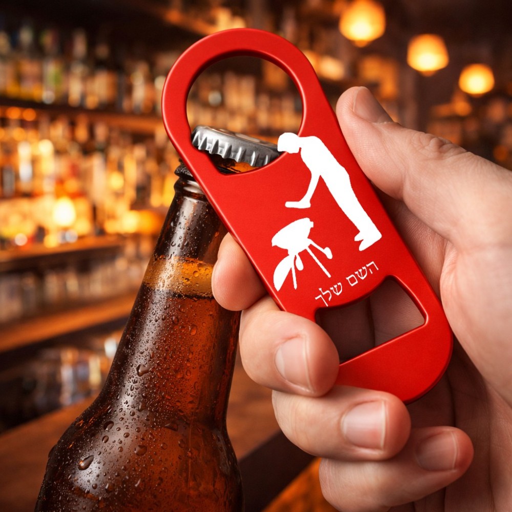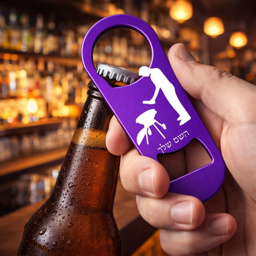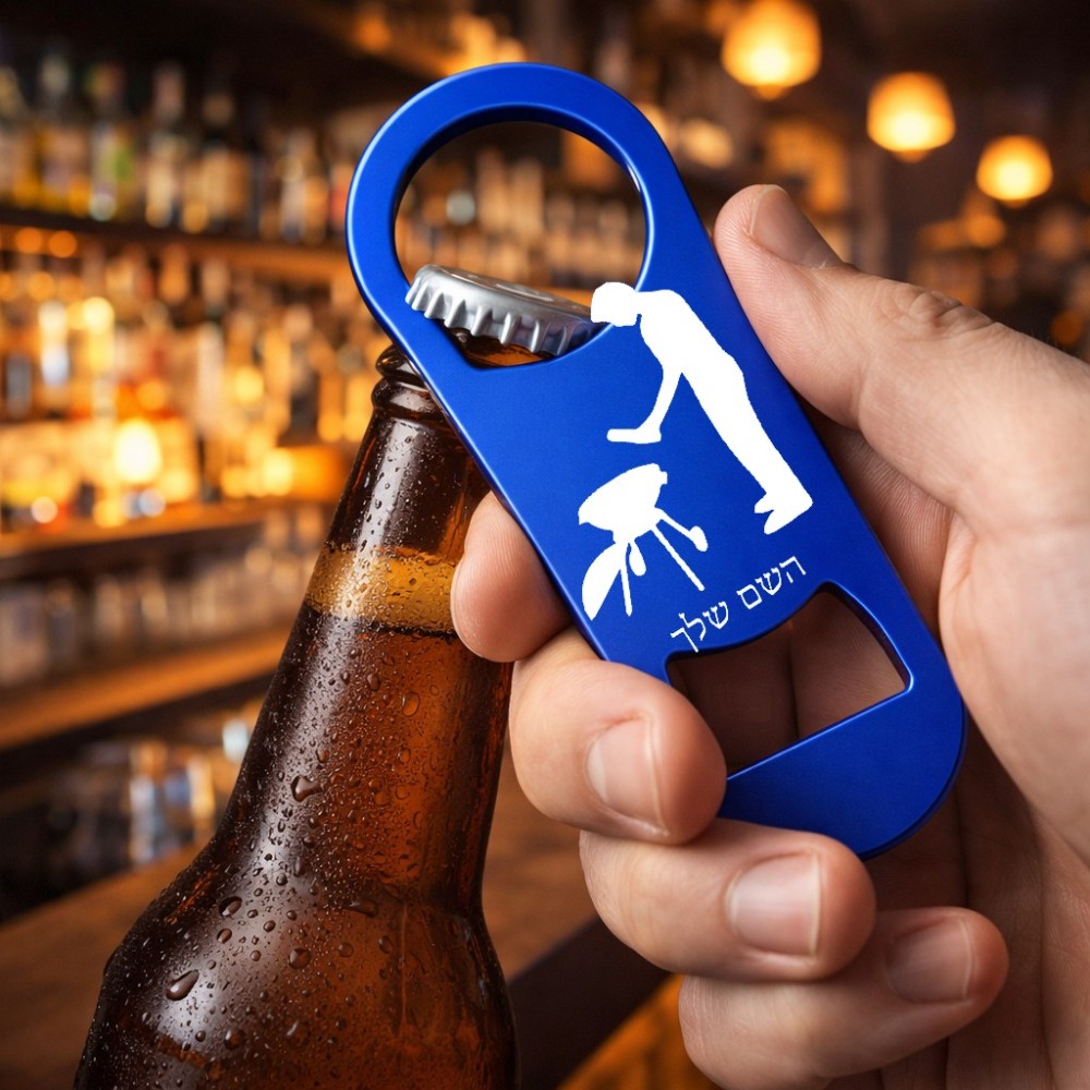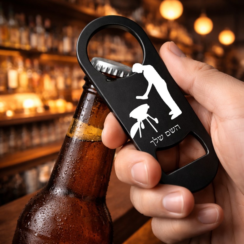 פותחן בקבוקים בעיצוב אישי עם השם שלך בעיצוב גריל ברביקיו. את השם המבוקש ניתן לציין בהזמנה, אם לא צויין אנחנו ניצור קשר לבירור.
