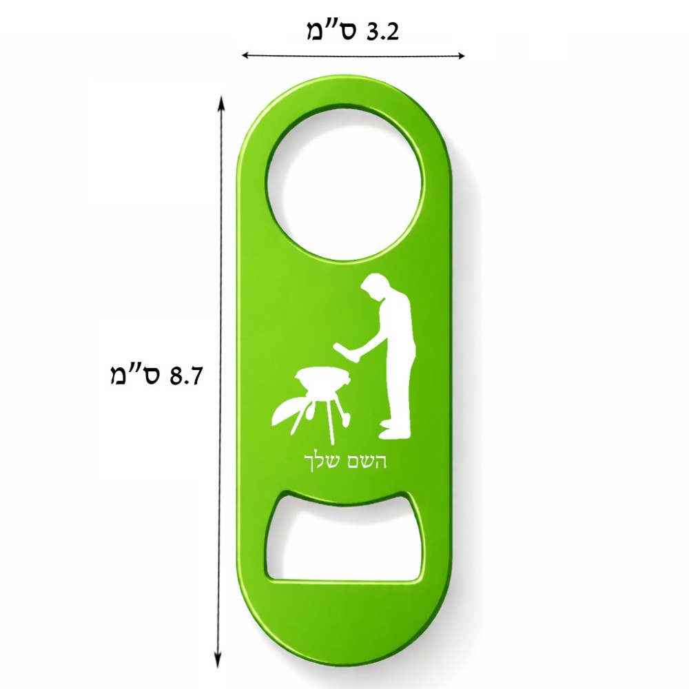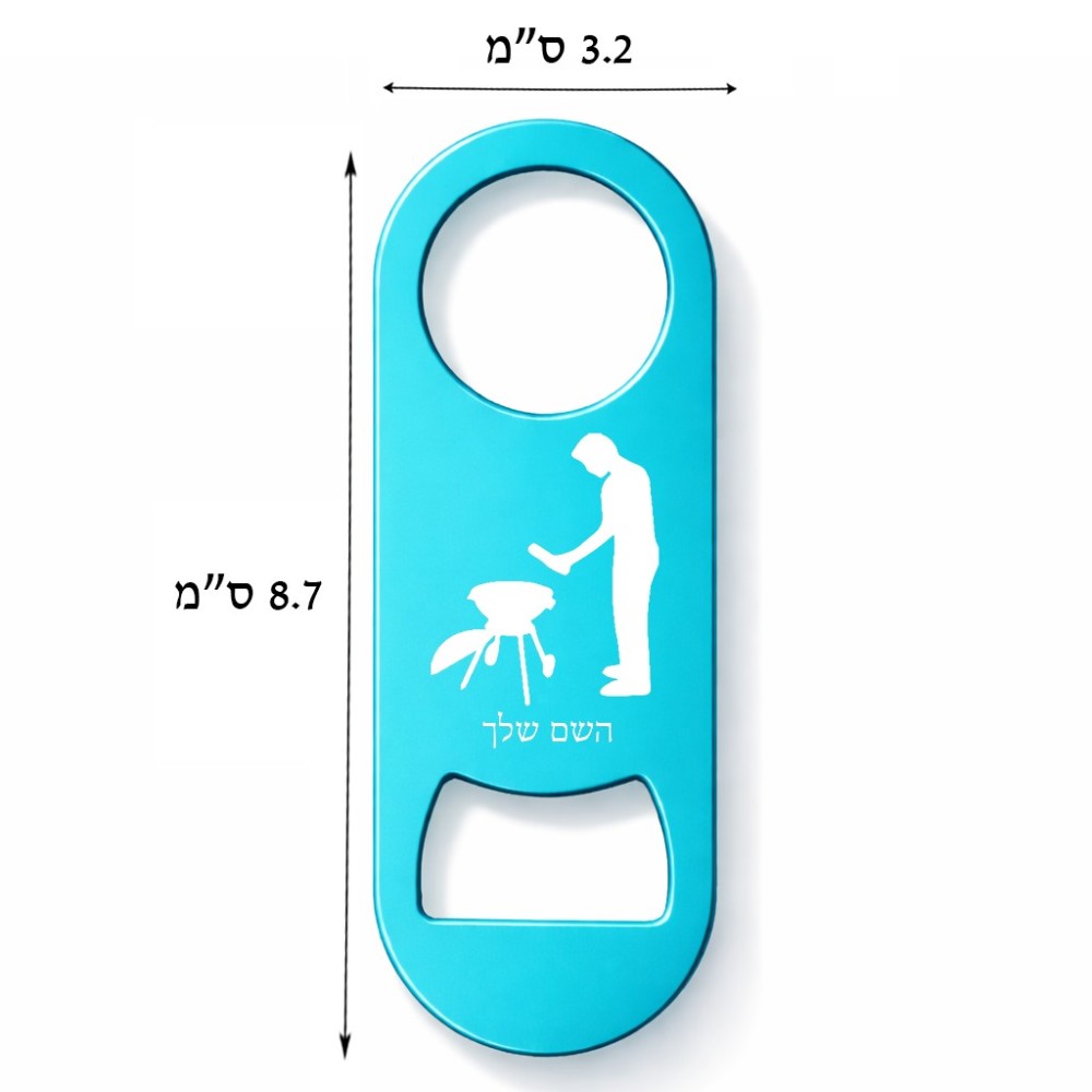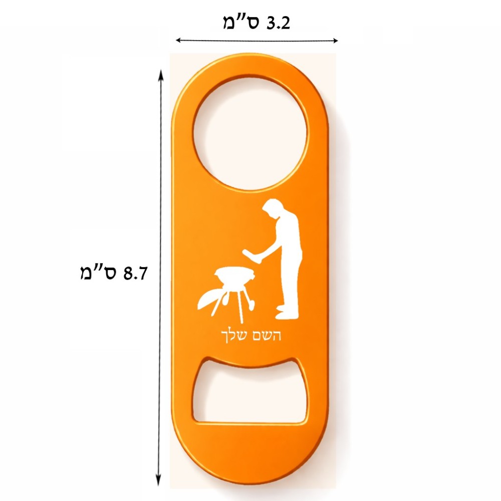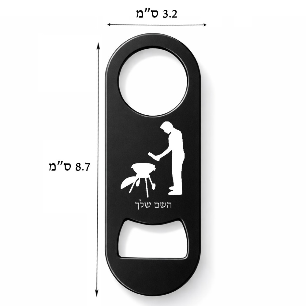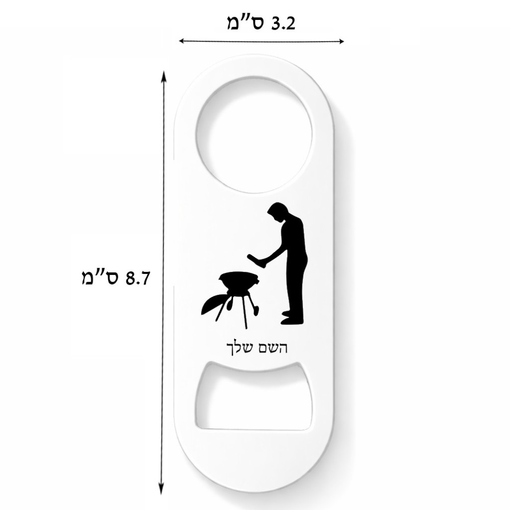 פותחן בקבוקים בעיצוב אישי עם השם שלך בעיצוב גריל ברביקיו גודל הפותחן 3.2 × 8.7 ס"מ