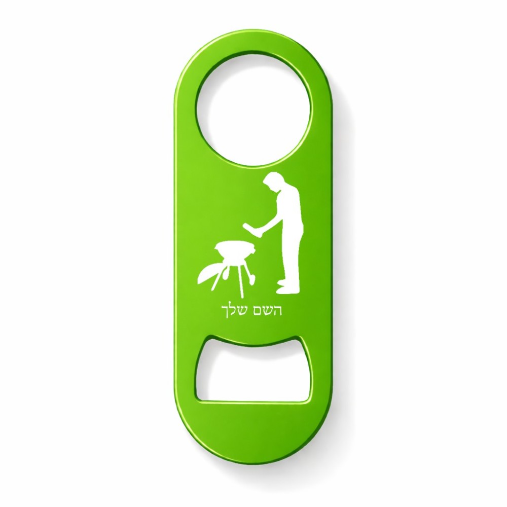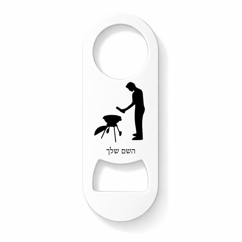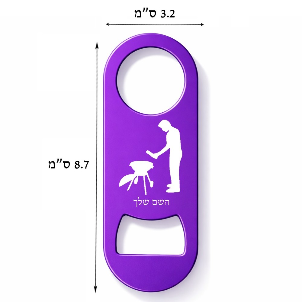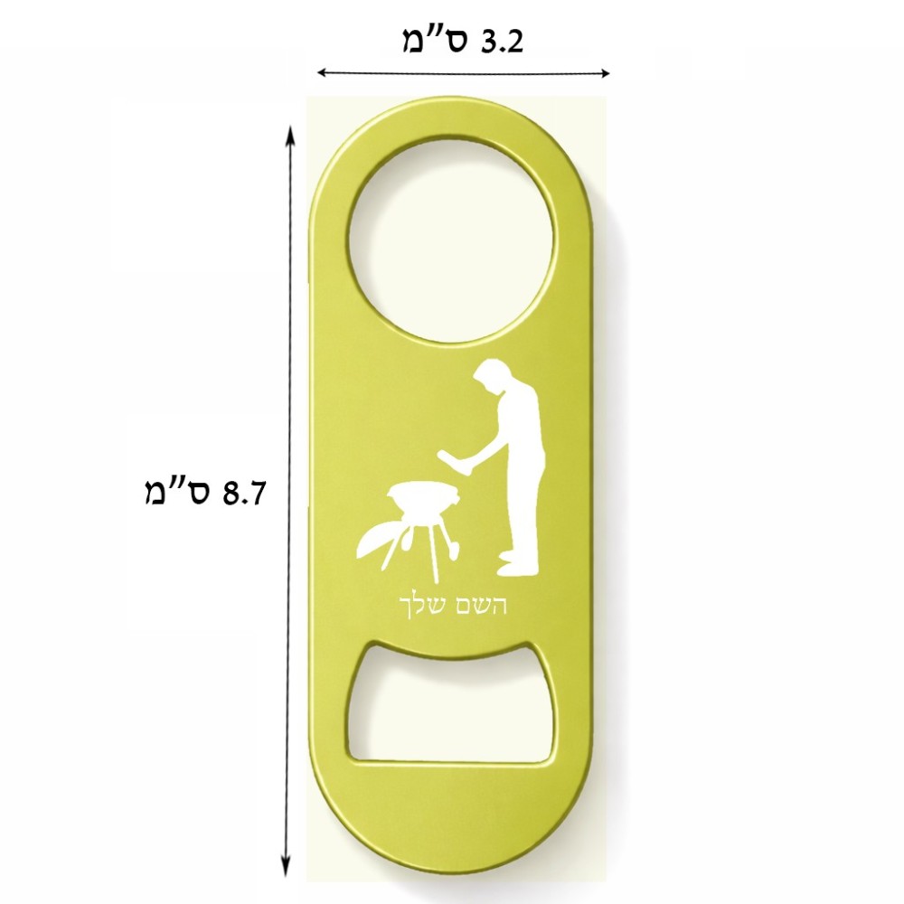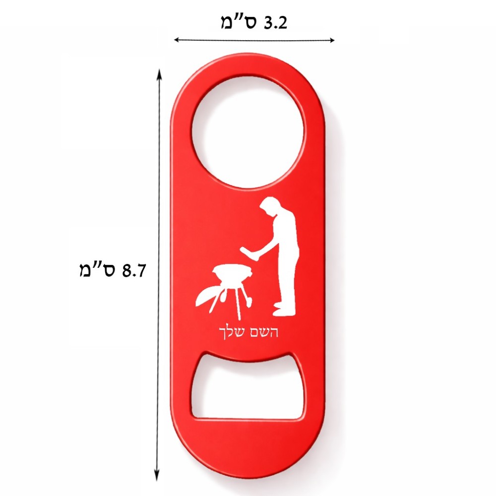 פותחן בקבוקים בעיצוב אישי עם השם שלך בעיצוב גריל ברביקיו גודל הפותחן 3.2 × 8.7 ס"מ